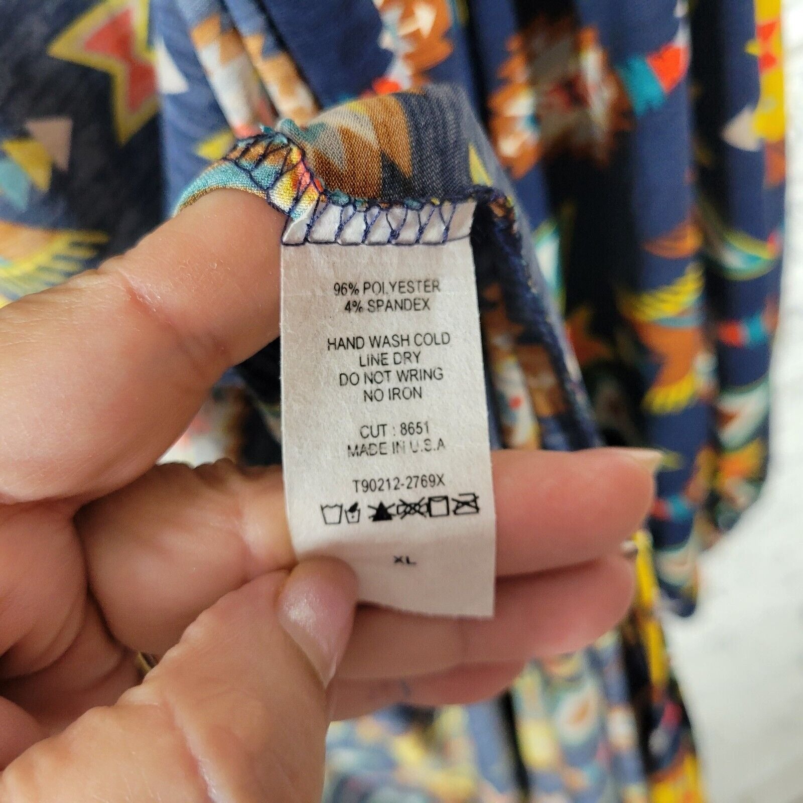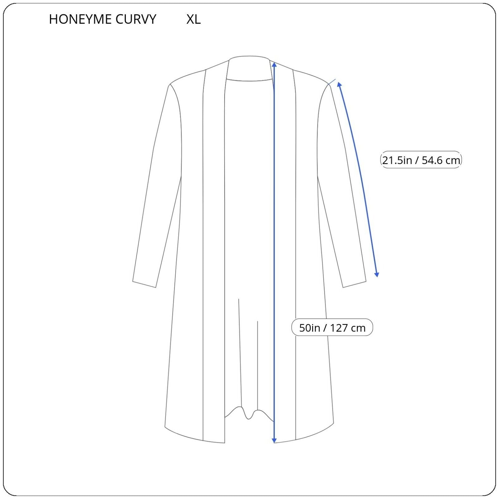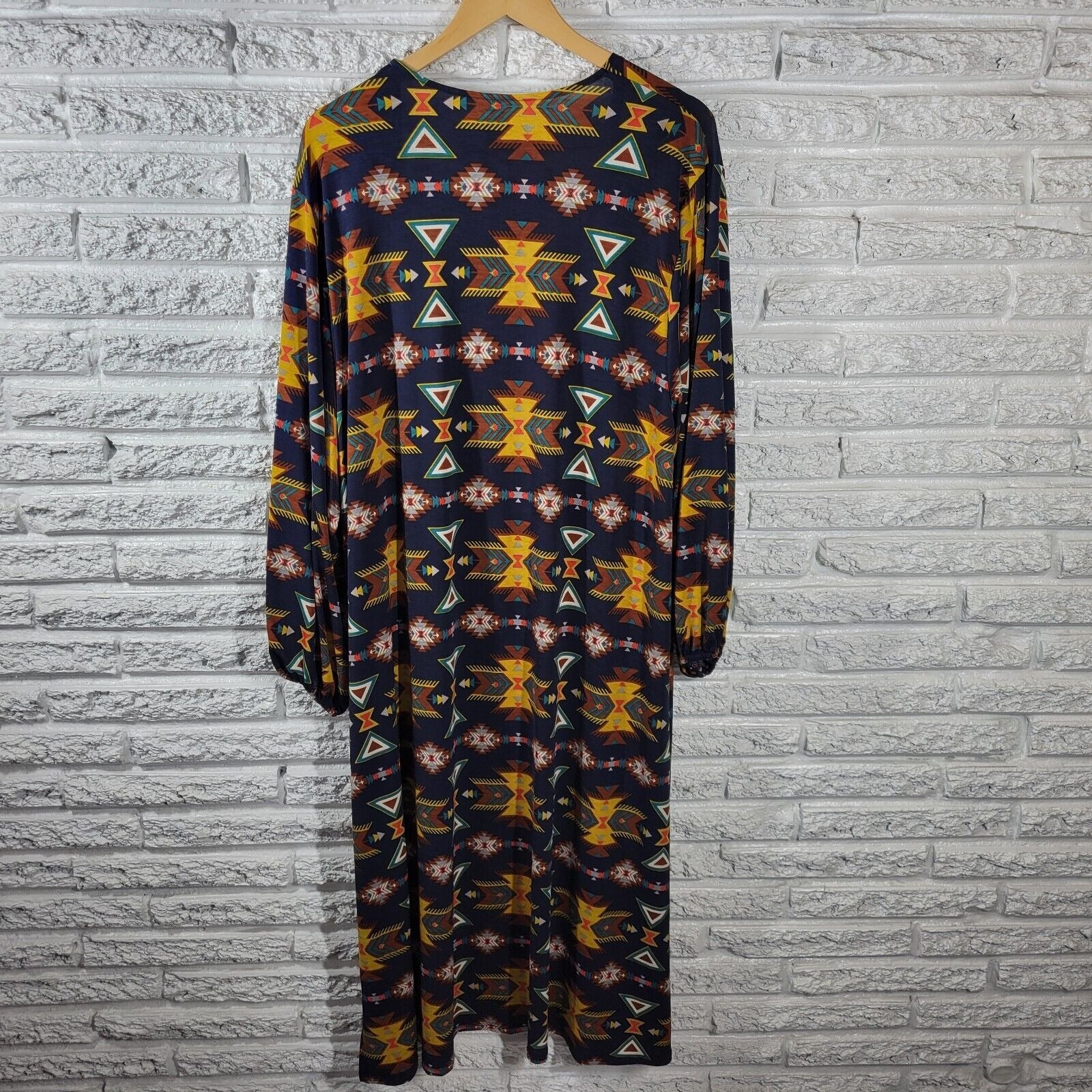 Honeyme Curvy Womens Top Extra Large XL Duster Long Blue Tribal Slit Open Career