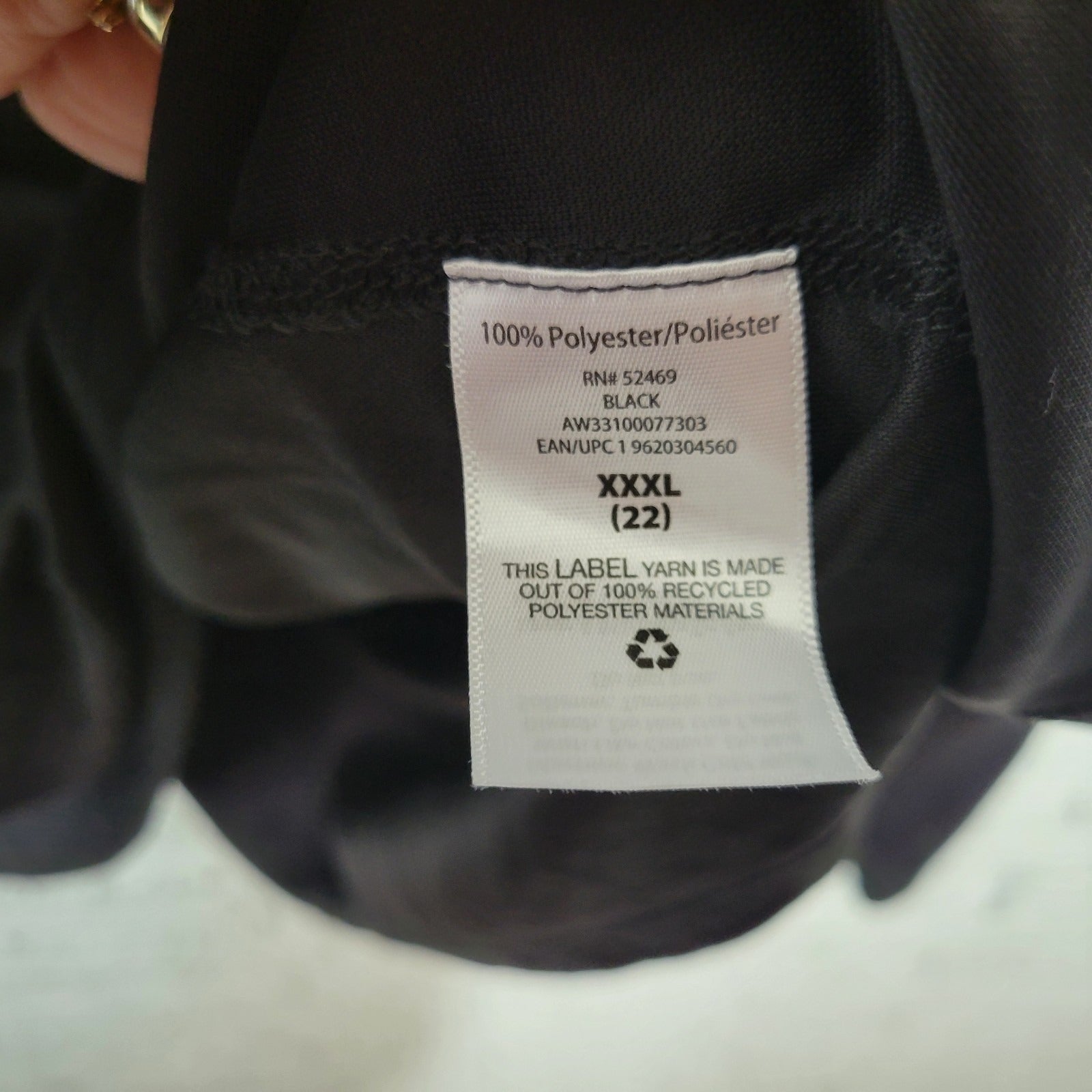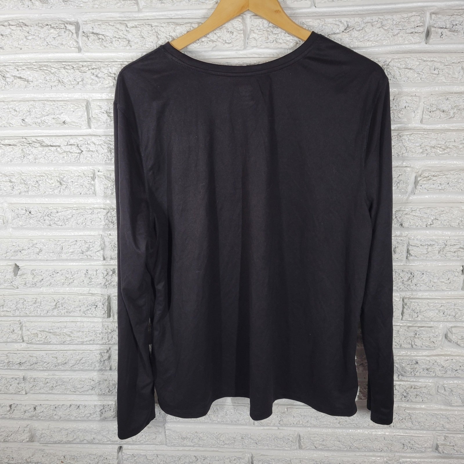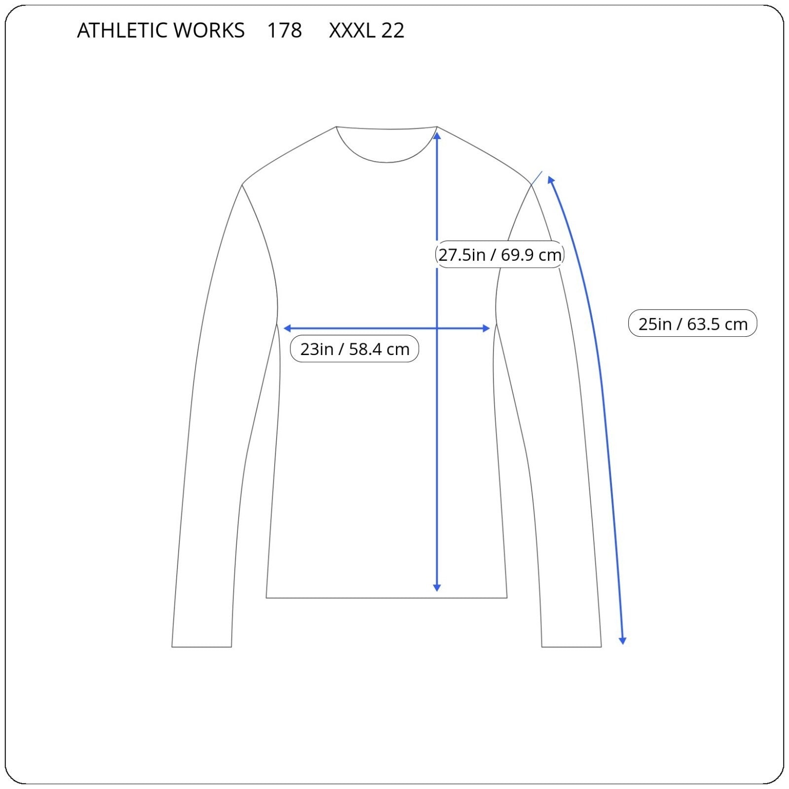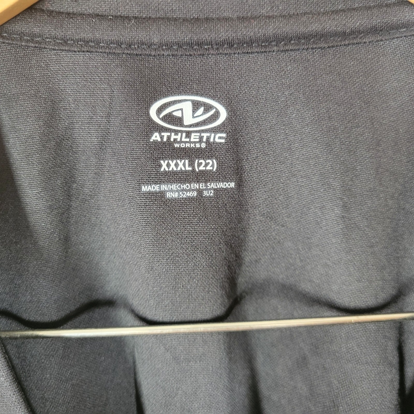 The Athletic Works Women's Top in XXXL 22 Plus size is a stylish black tee with long sleeves, a crew neck, and a pullover closure. Made of polyester jersey fabric, this comfortable regular fit t-shirt is perfect for casual or travel occasions. With a casual sleeve type and stretchy material, this basic top is suitable for all seasons, making it a versatile addition to any wardrobe. The brand's quality and the plus size option cater to the needs of a wide range of women looking for a reliable and trendy clothing choice.