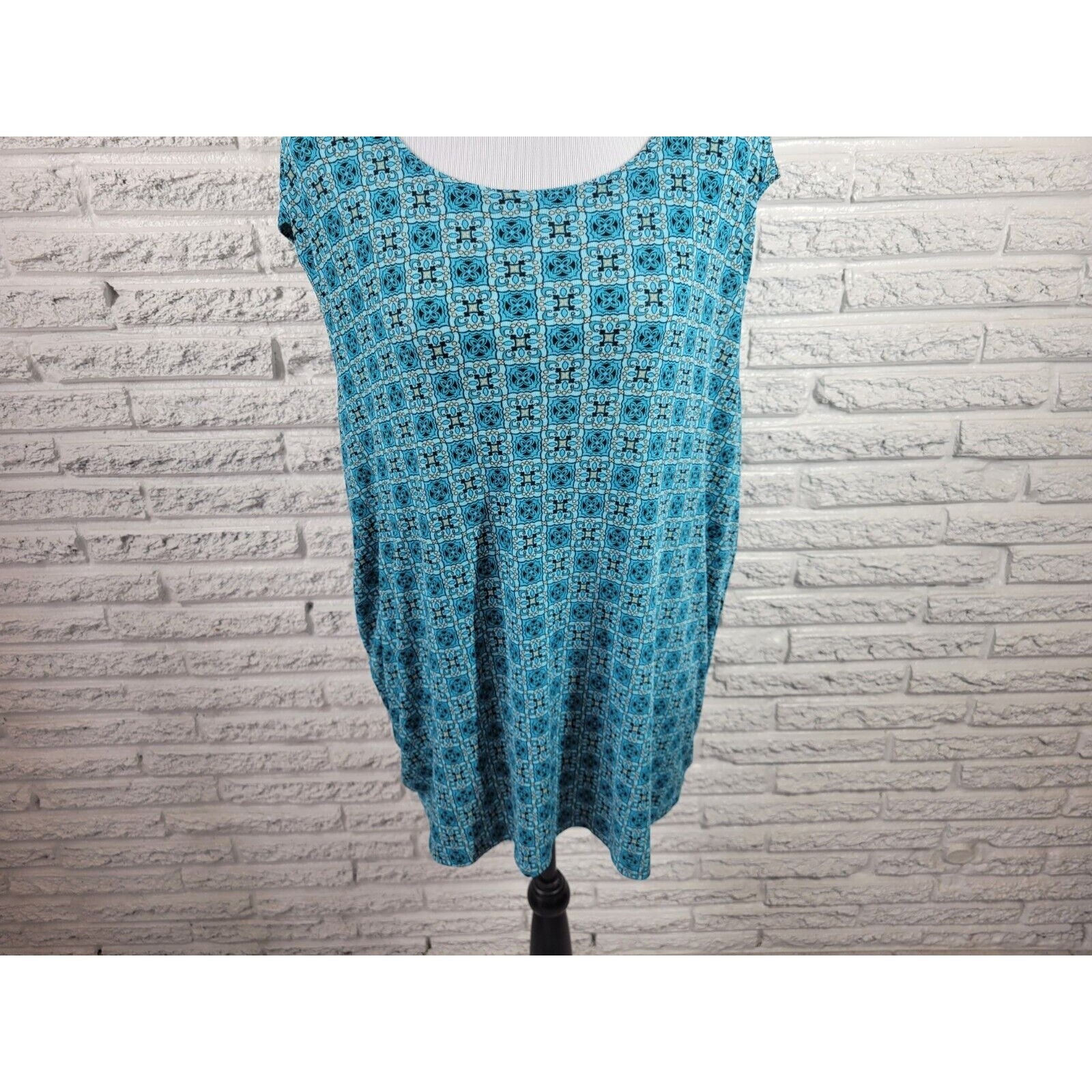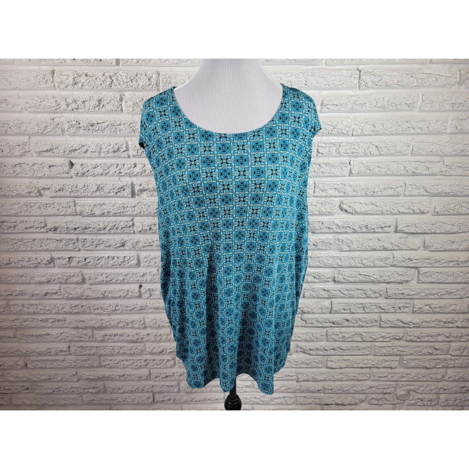 Impressions Womens Top 2X Plus Sleeveless Blue Geometric Poly Blend Casual