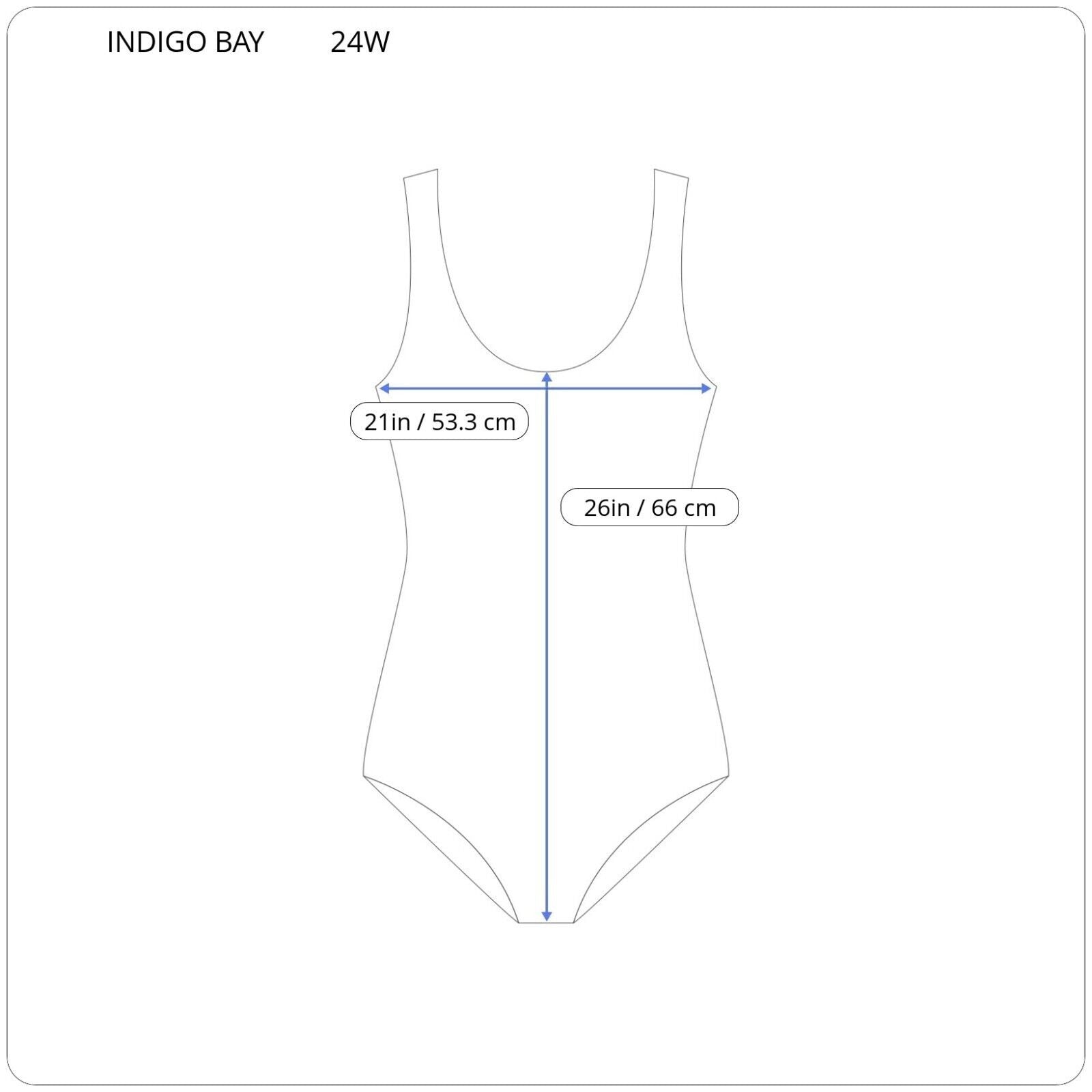 The Indigo Bay Women's Swimsuit in size 24W is a stylish one-piece suit featuring a skirted bottom and wide straps for added comfort and support. The black floral pattern adds a touch of femininity to the swimsuit, which is made of a blend of nylon and spandex for a flattering fit. This swimsuit is designed for plus-size women and is lined for added opacity and quality. Hand wash only to maintain its appearance and longevity. This swimsuit is a perfect choice for women looking to feel confident and chic at the beach or pool.
