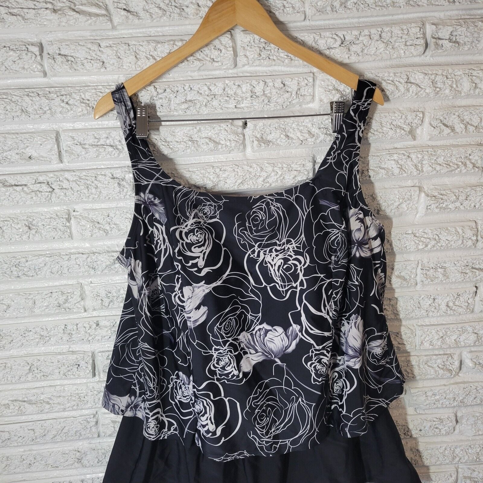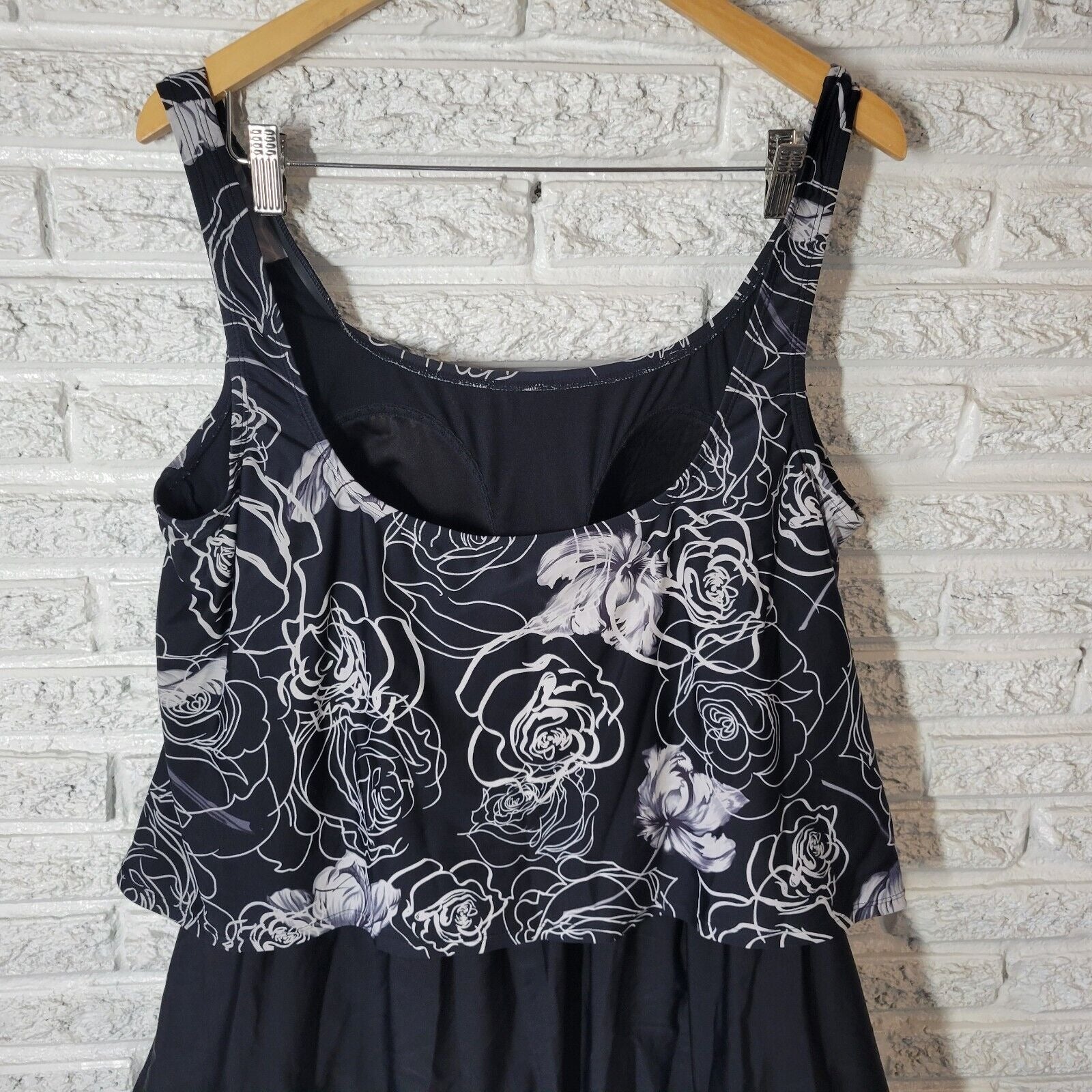 Indigo Bay Womens Swimsuit 24W One Piece Skirted Wide Strap Black Floral Lined