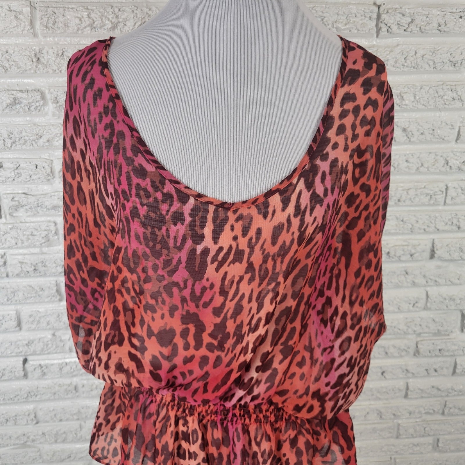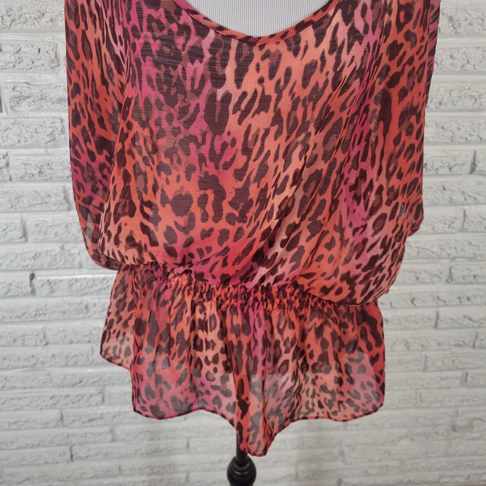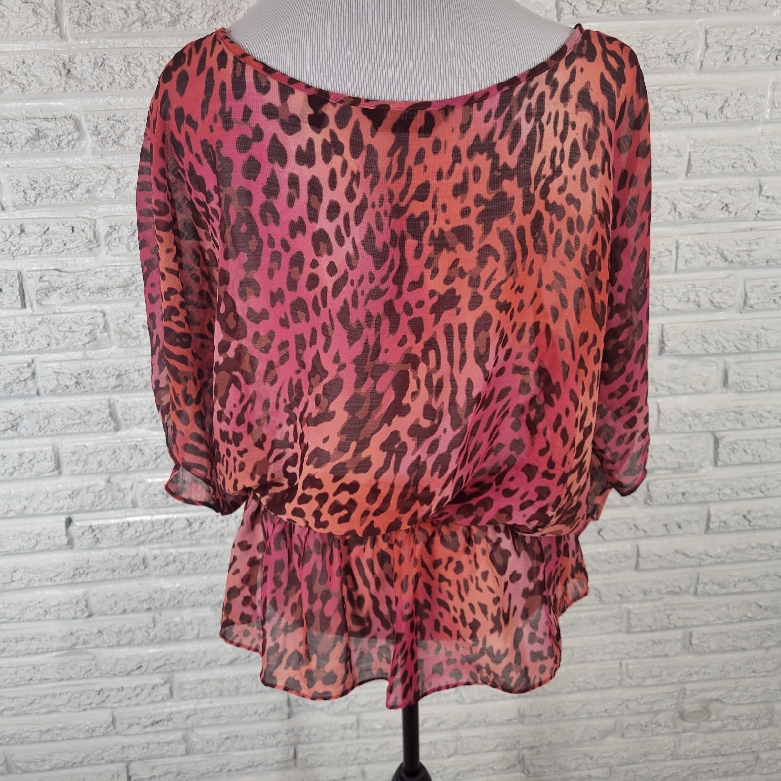 Investments Womens Top 1X Plus Peplum Pink Black Animal Print Lightweight Sheer