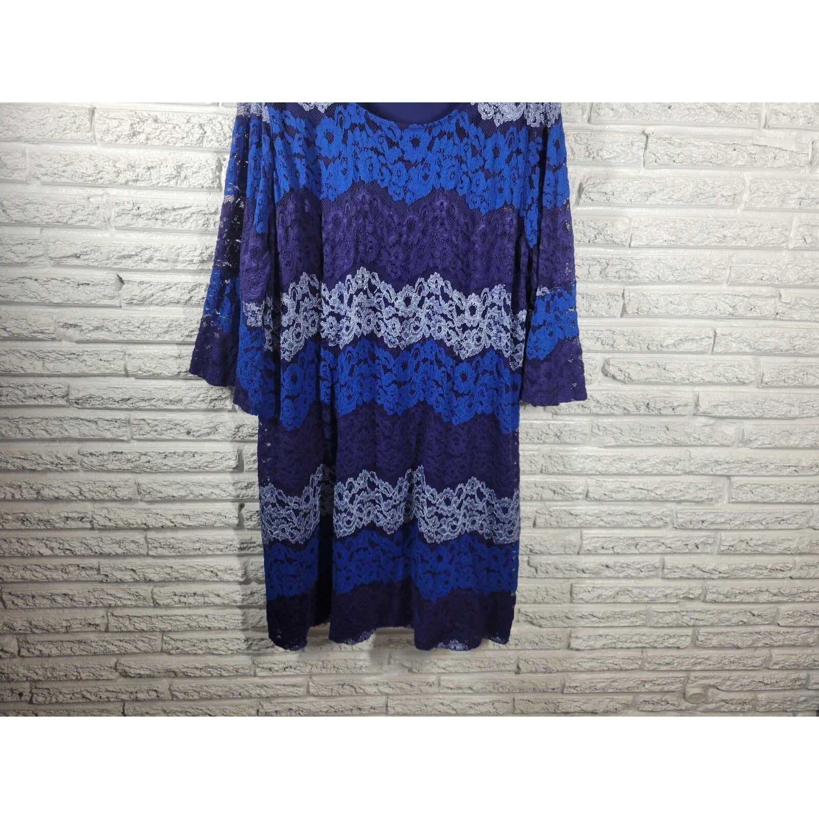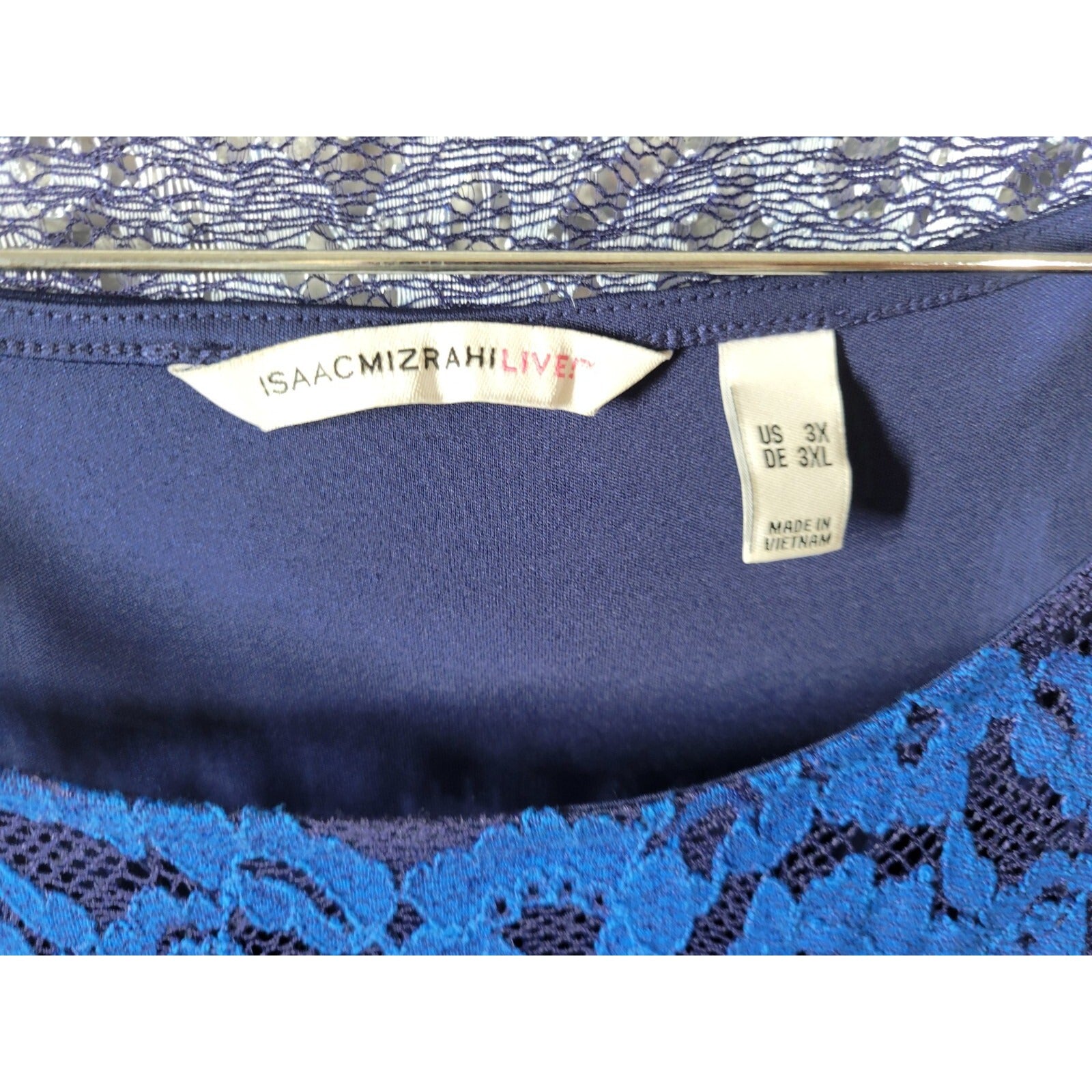 Isaac Mizrahi Live QVC Womens Dress 3X Plus 3/4 Sleeve Blue Lace Floral Lined