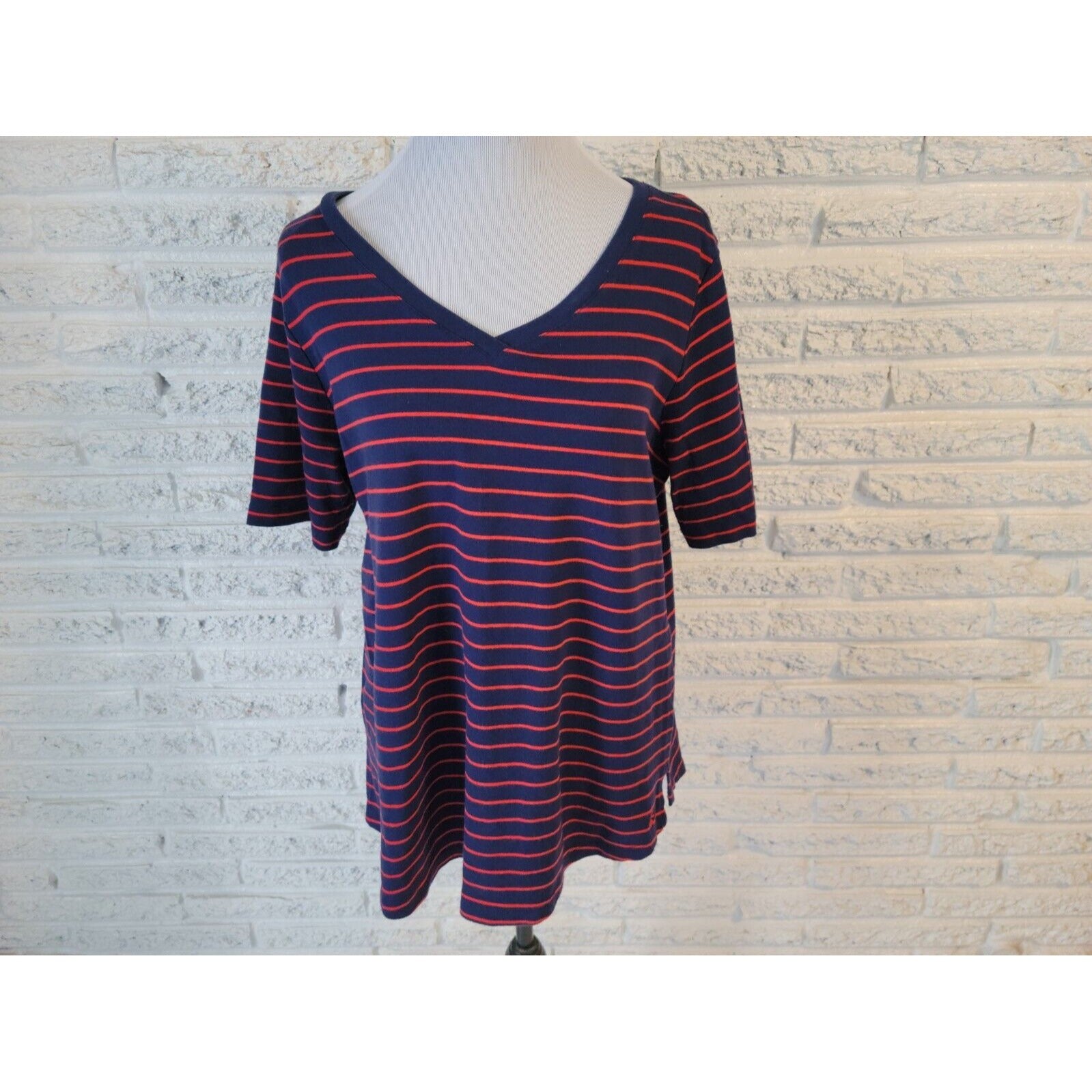 Isaac Mizrahi Live QVC Womens Top 1X Plus Tee Blue Stripe Cotton VNeck Casual