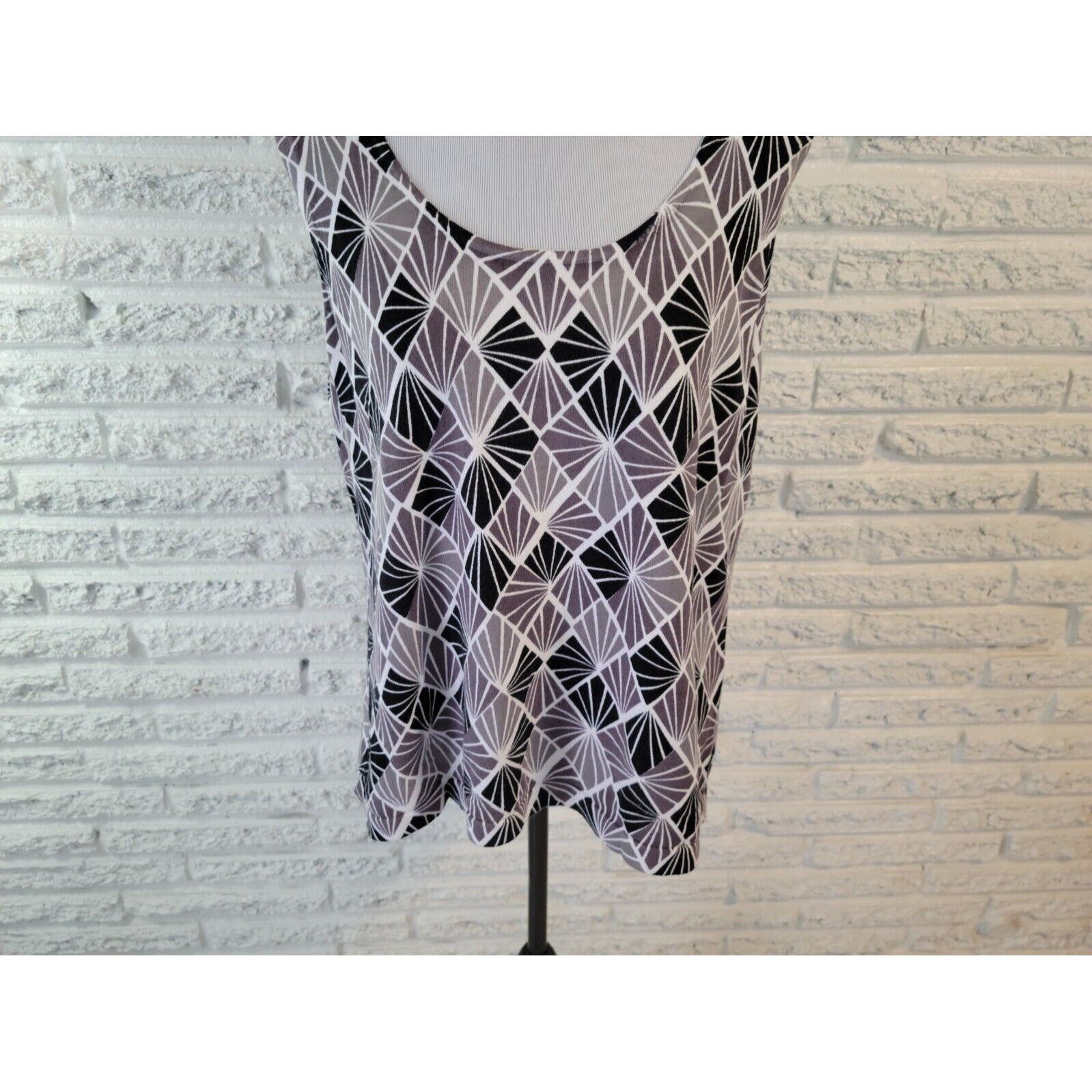 This Isaac Mizrahi Live QVC women's top is a must-have for any fashion-savvy individual. The black geometric pattern on the sleeveless tank top with a round neckline and pullover closure is perfect for any casual occasion. Made of cotton knit fabric, it is machine washable and has stretch features, making it suitable for all seasons. The top is designed for plus size women, with a regular fit and size type of 1X.