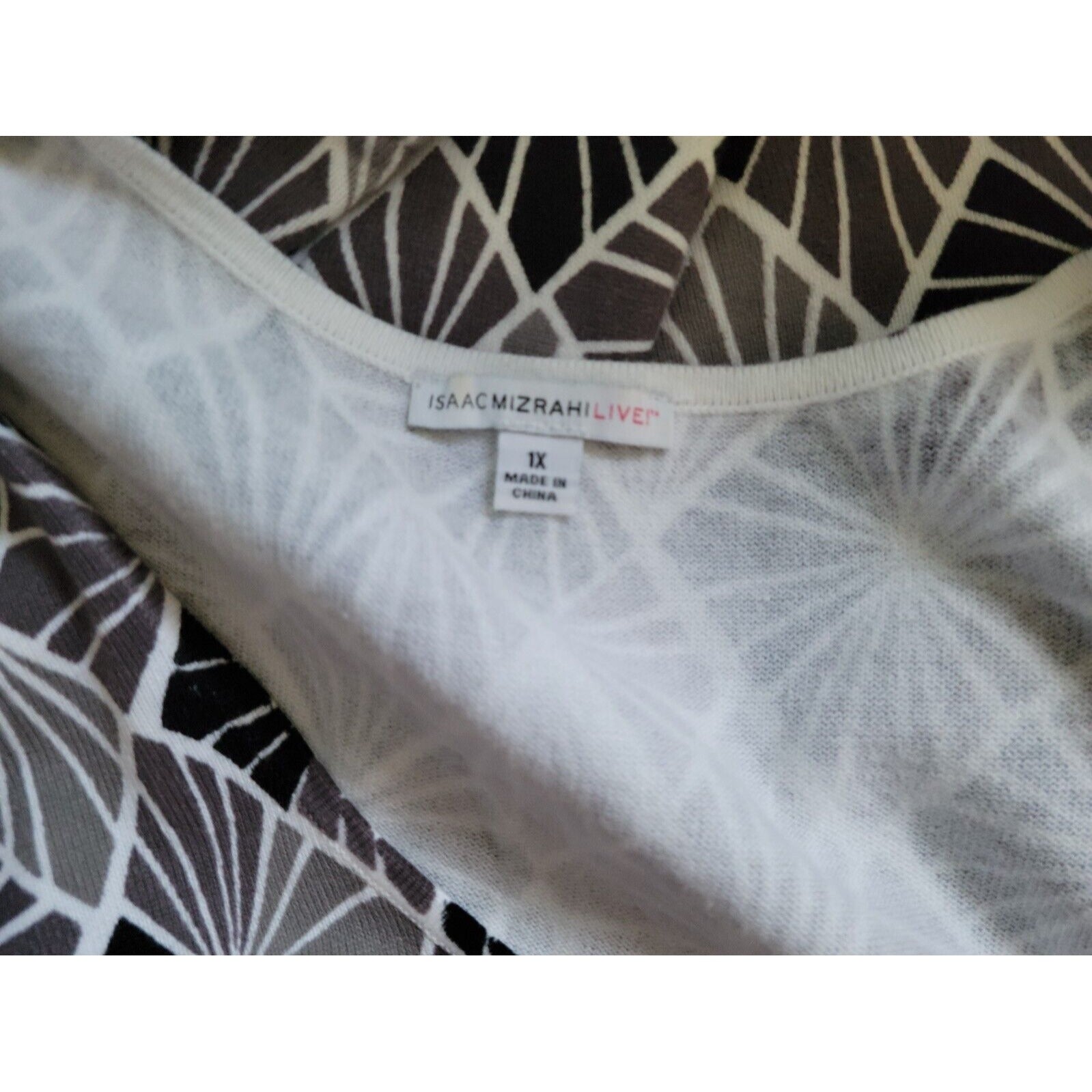 Isaac Mizrahi Live QVC Womens Top 1X Tank Black Geometric Cotton Knit Pullover