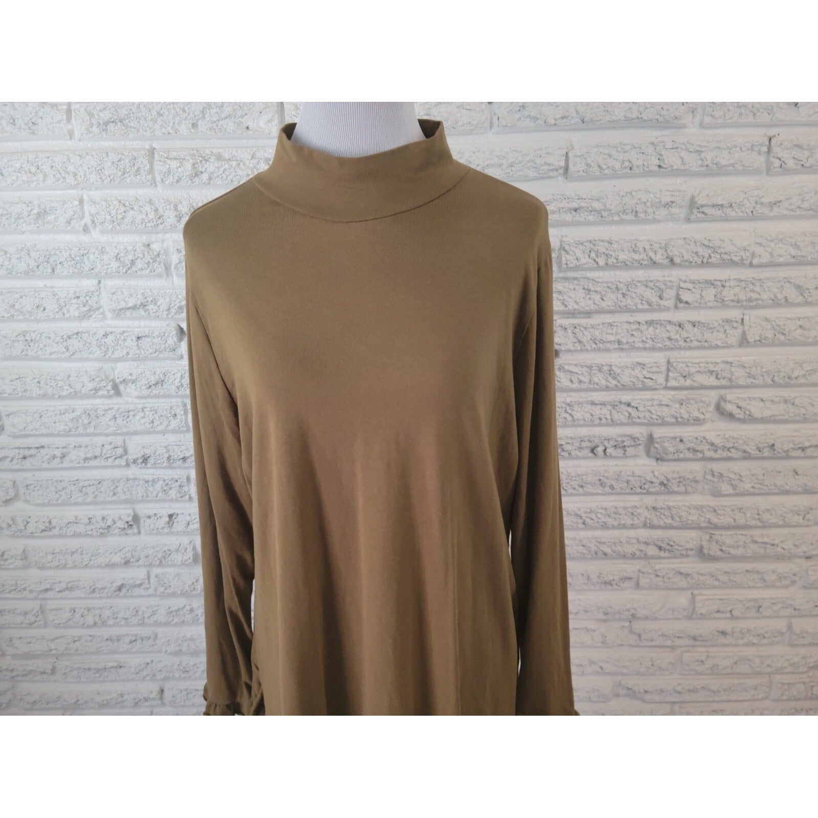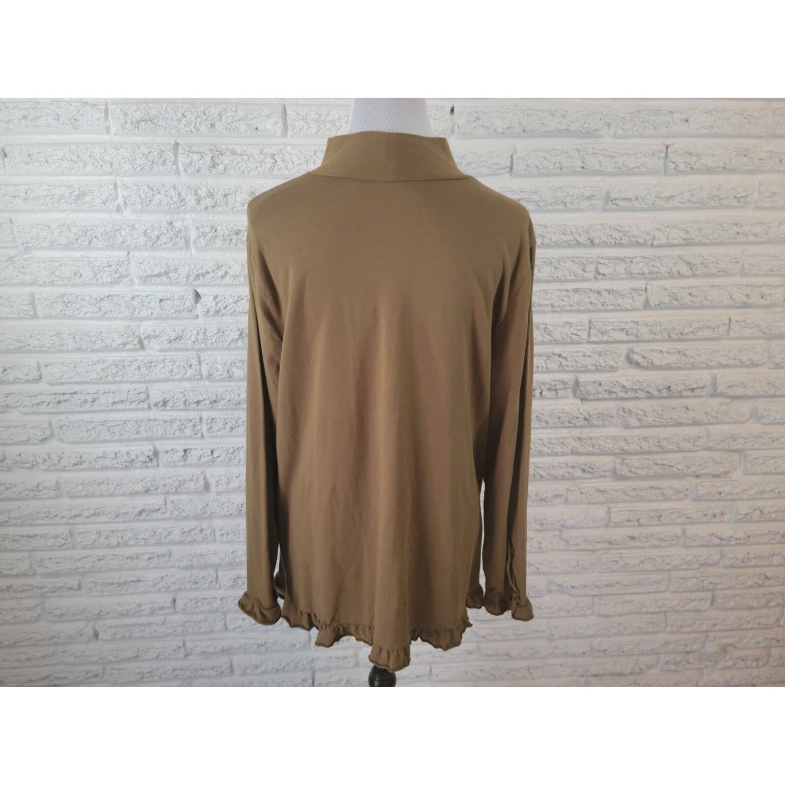 Isaac Mizrahi Live QVC Womens Top Extra Large XL Green Long Sleeve Ruffle Career