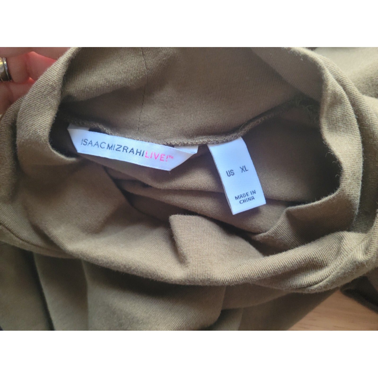 This Isaac Mizrahi Live QVC women's top is a must-have for your wardrobe. The solid green color and classic/fitted sleeve design make it suitable for both casual and business occasions. The mock neck and pullover closure add comfort and ease of wear. The blouse features a ruffle accent, adding a touch of style to your outfit. It is made of a cotton blend material and is machine washable for easy care. With its regular fit and stretch feature, this blouse is perfect for all seasons, including winter, summer, fall, and spring. The top is available in XL size and is a regular fit.