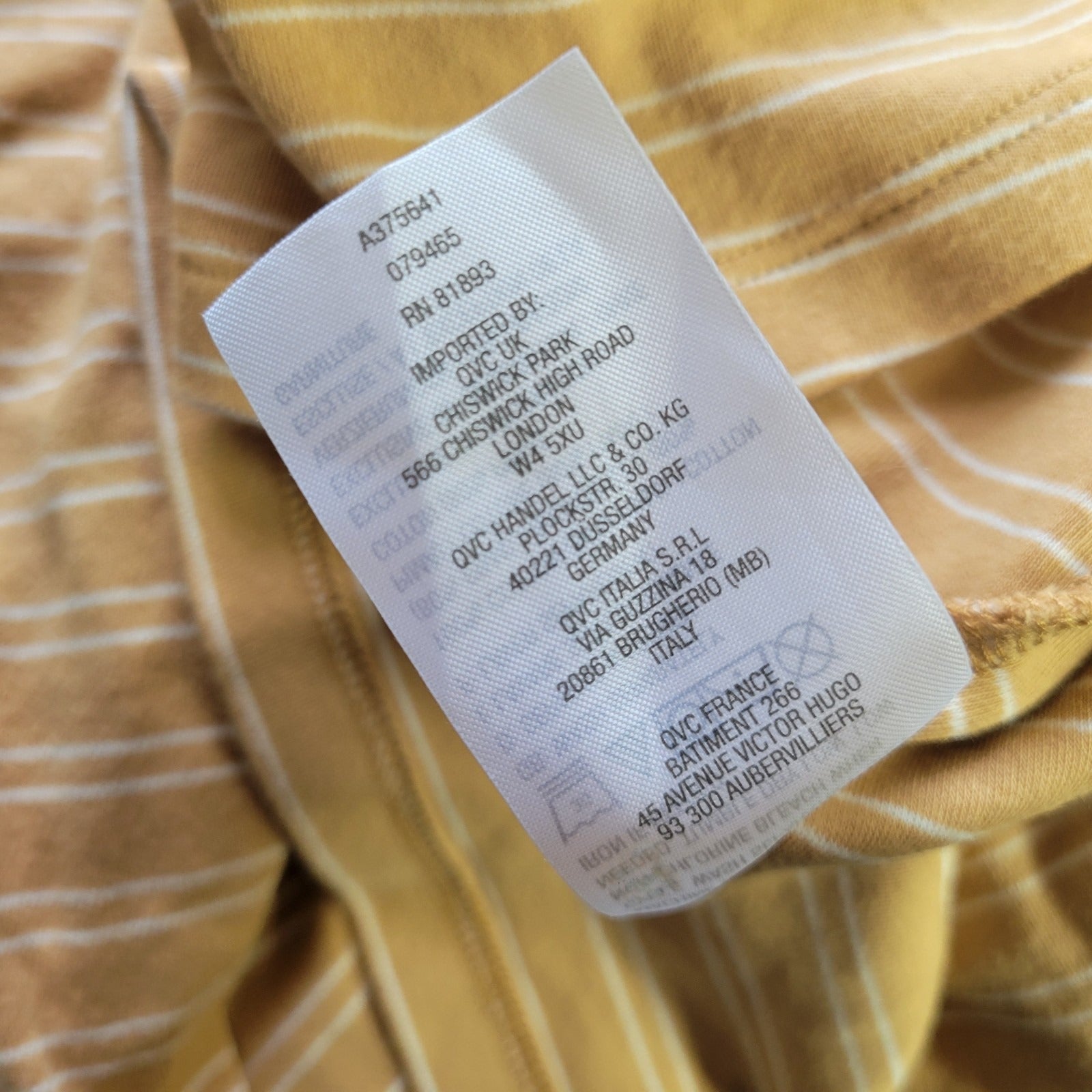 Isaac Mizrahi Live Womens Top 1X Tee 3/4 Sleeve Tan Stripe Cotton Casual Comfy