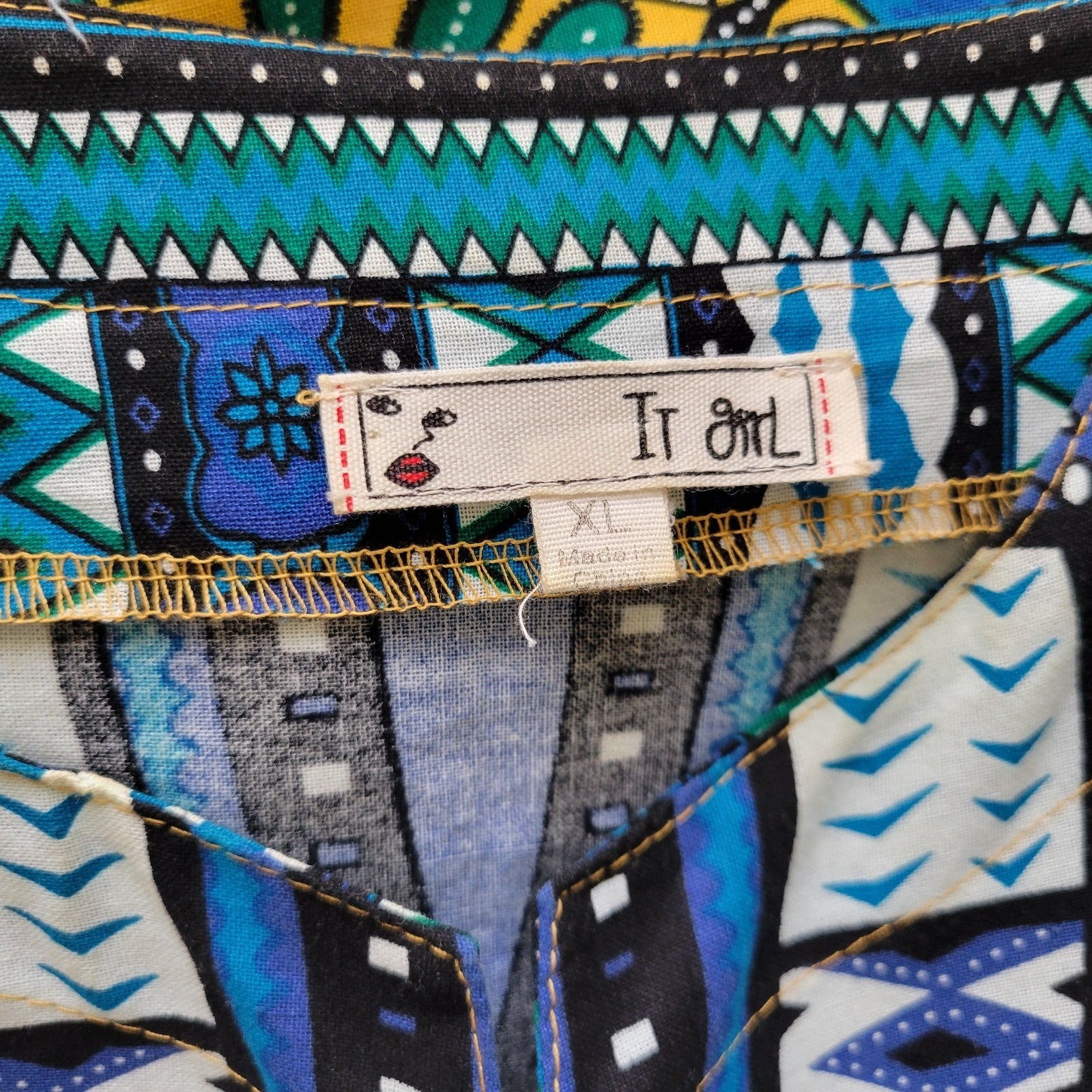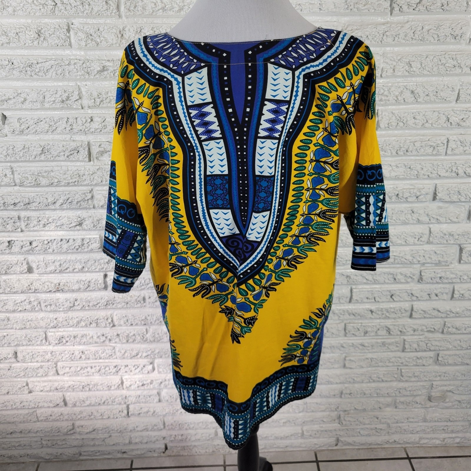 The It Girl Women's Top in XL is a vibrant yellow/BLUE tunic with a geometric boho pattern, perfect for a festival or casual outing. Made from 100% cotton, this blouse features short dolman sleeves, a V-neckline, and a pullover closure. Ideal for all seasons, this tunic offers a regular fit and is designed for travel and everyday wear. The IT GIRL brand adds a stylish touch to this versatile piece, making it a must-have addition to any woman's wardrobe.