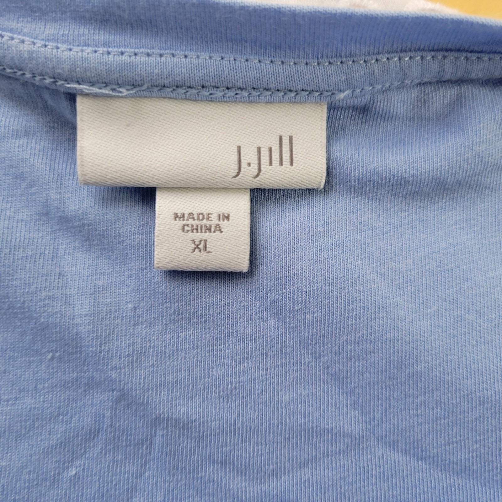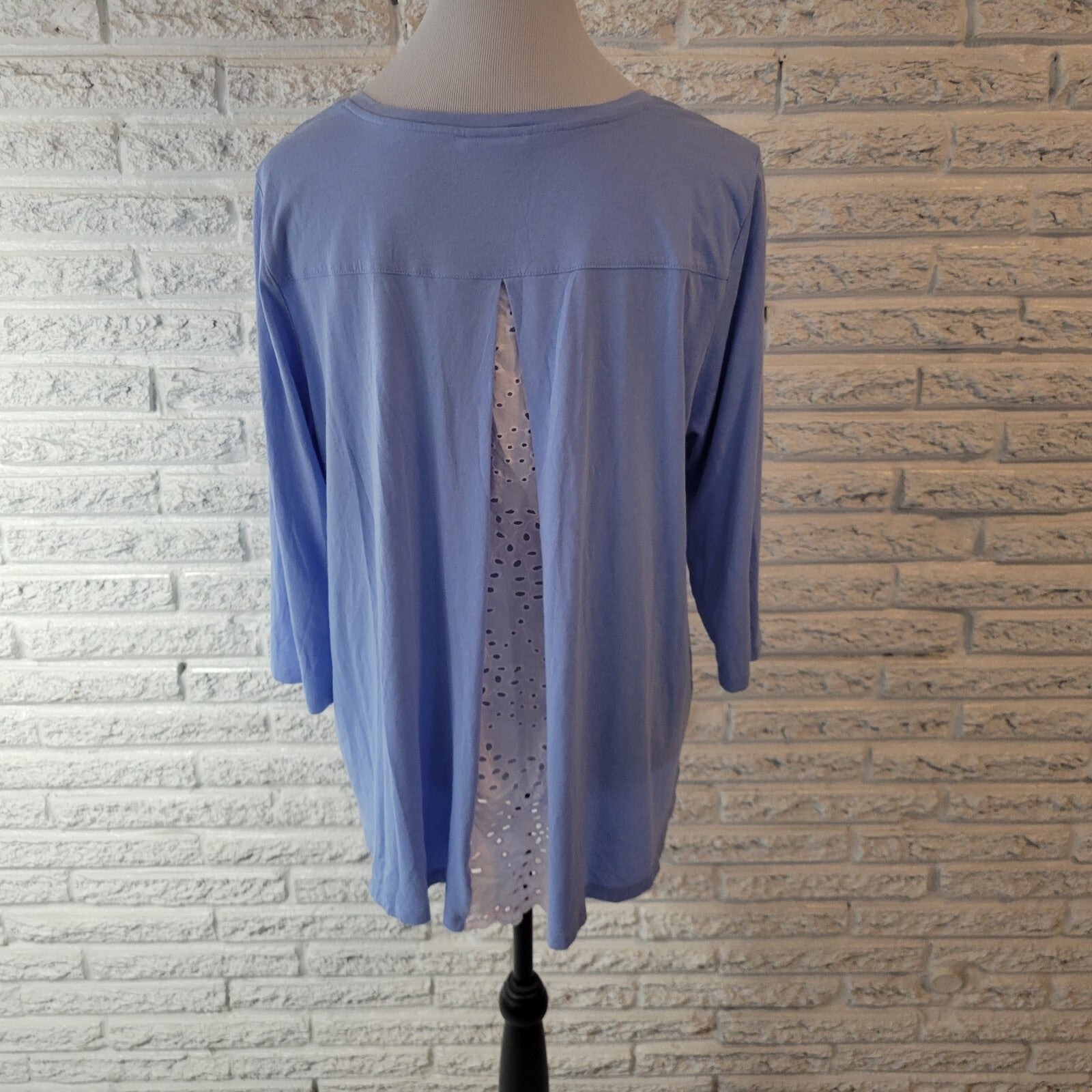 J Jill Womens Top XL 3/4 Sleeve Split Back Eyelets Asymmetric Lightweight Blue