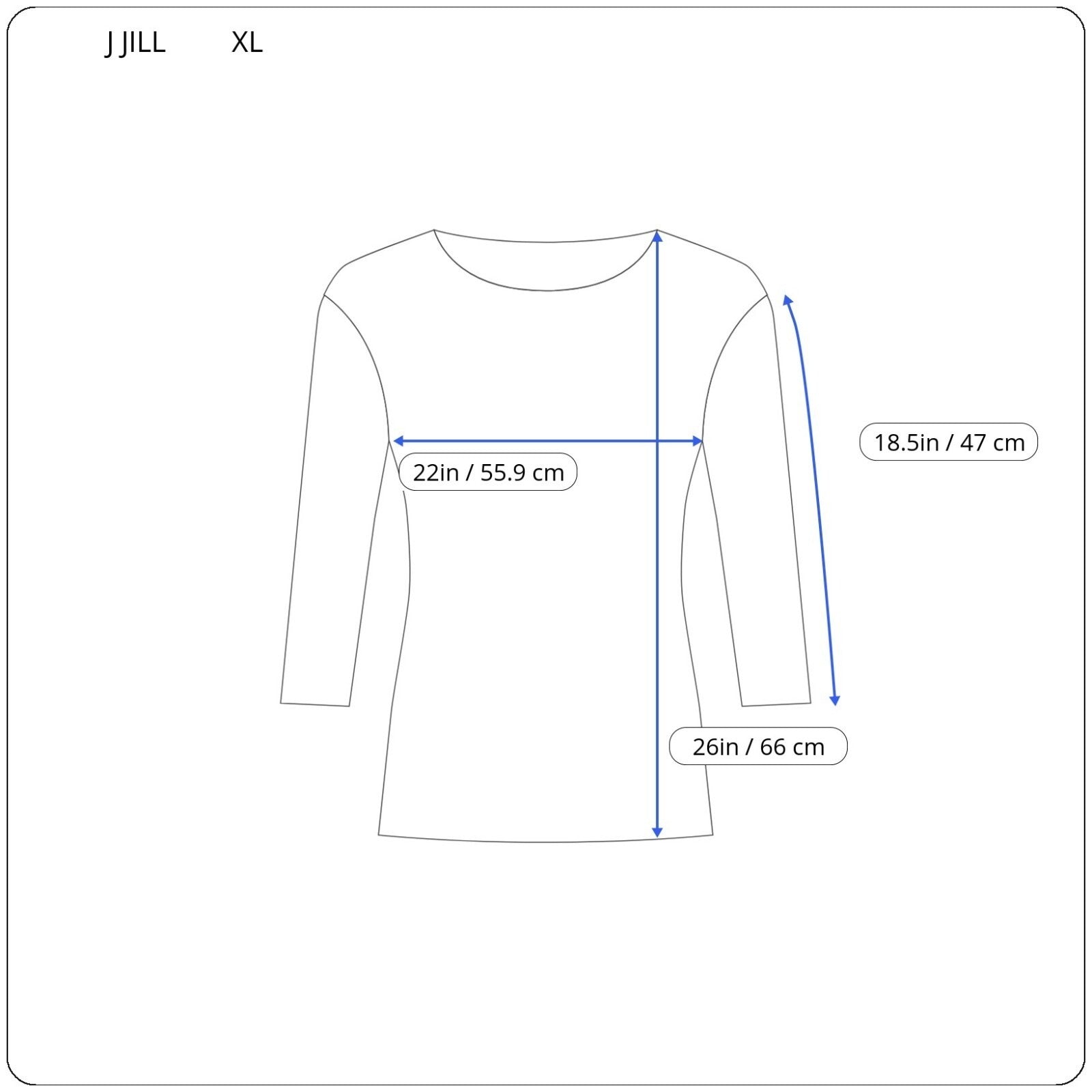 This J. Jill Women's Top in XL features a 3/4 sleeve and split back design with eyelets, creating an asymmetric and stylish look. The lightweight cotton blend material in a solid blue color is perfect for travel or casual occasions, as it offers both stretch and comfort for all seasons. The pullover closure and V-neckline add to the overall easy and casual style of this basic blouse, making it a versatile addition to any woman's wardrobe.