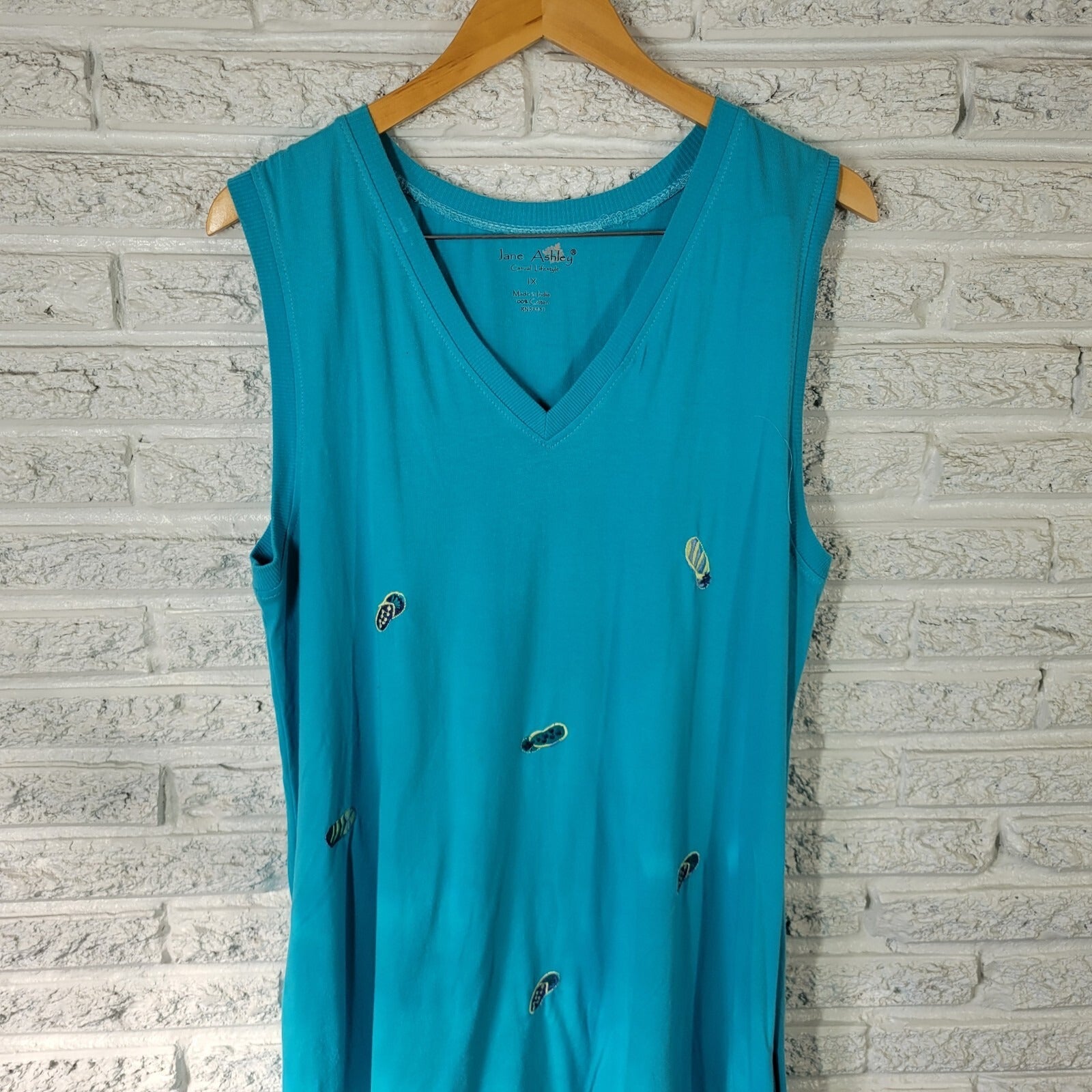 Jane Ashley Women Dress 1X Plus Sleeveless Blue Flip Flops Summer Cotton Pockets