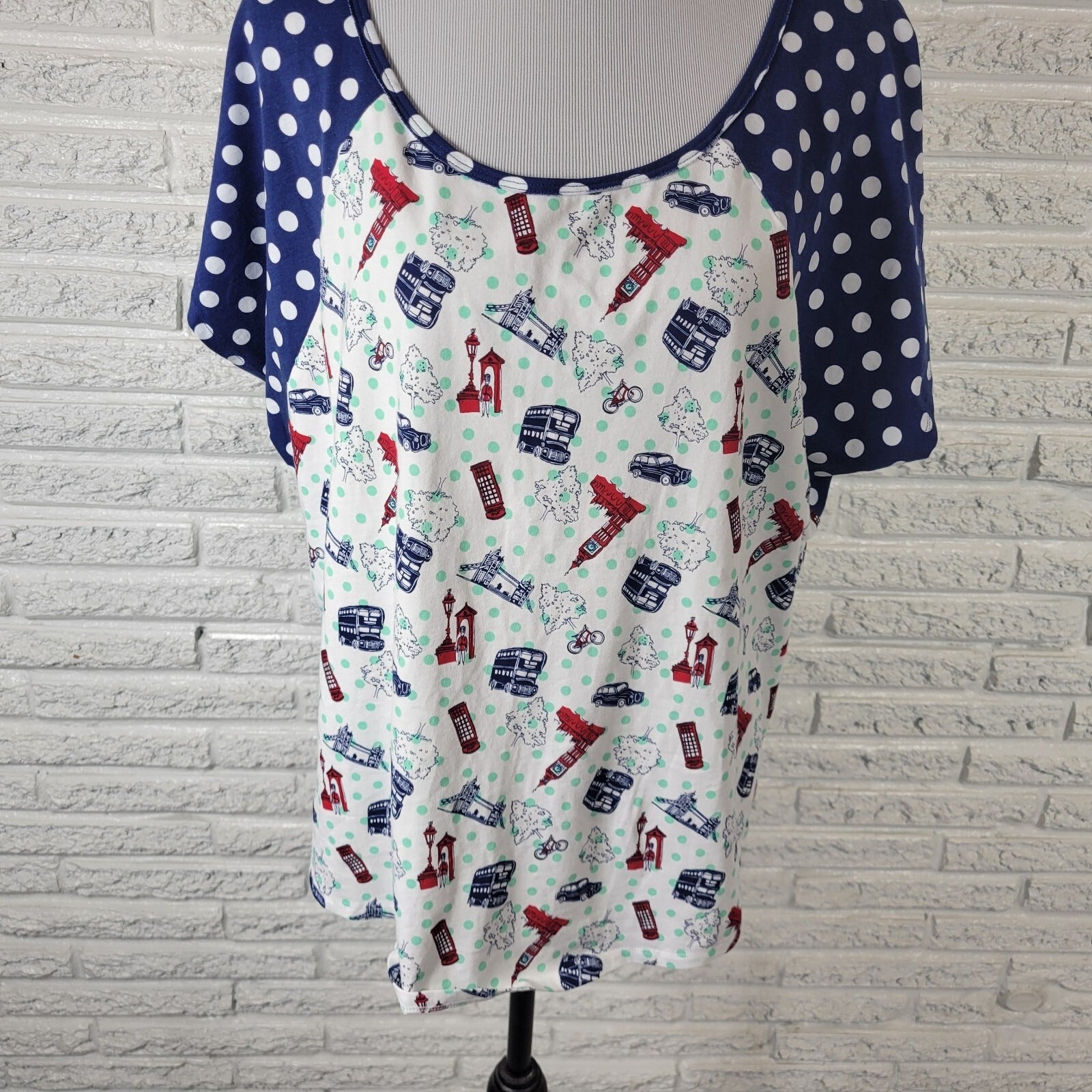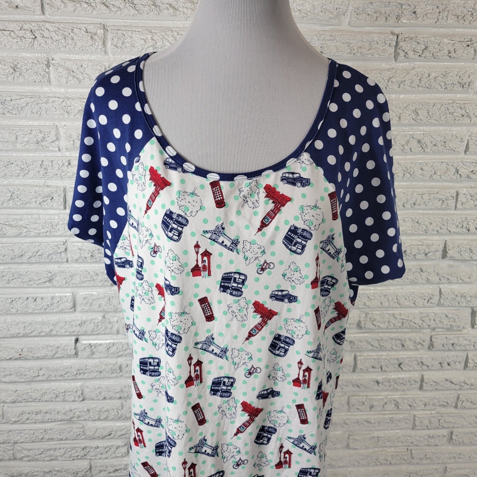 Jasmine Ginger Womens Pajama Top 1X Plus Tee London England Lightweight Blue Red