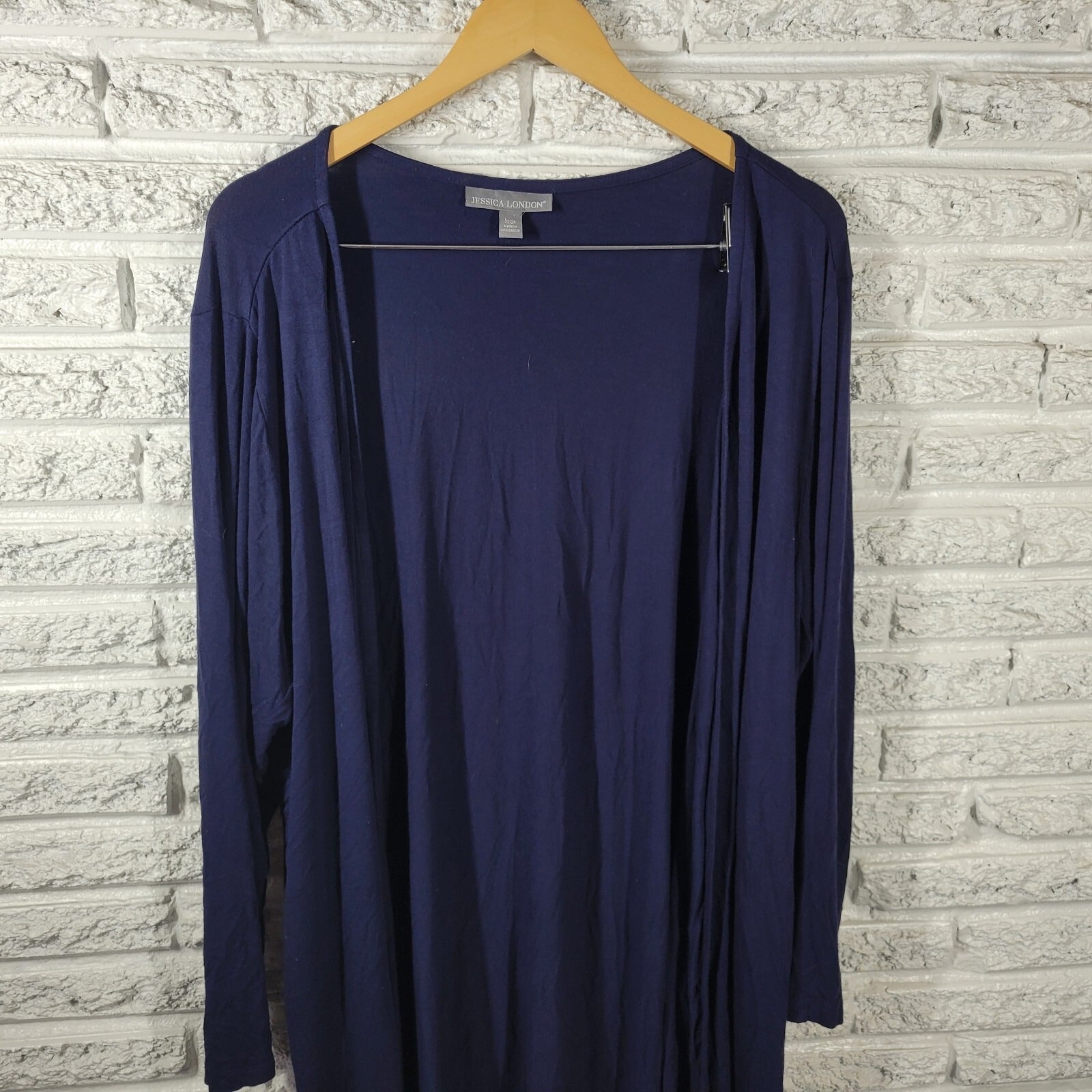 Jessica London Women Top 22 24 Plus Cardigan Open Duster Blue Lightweight Office