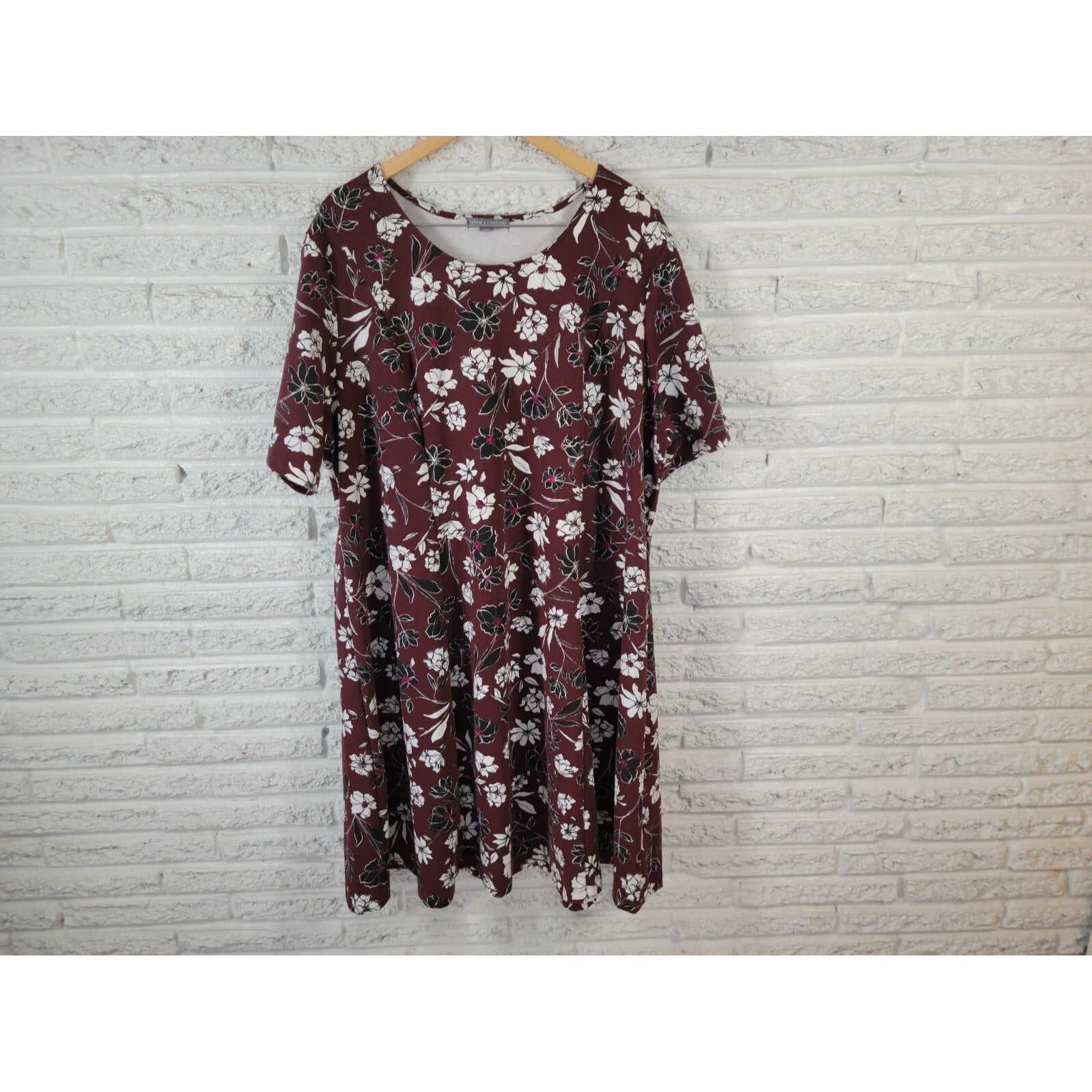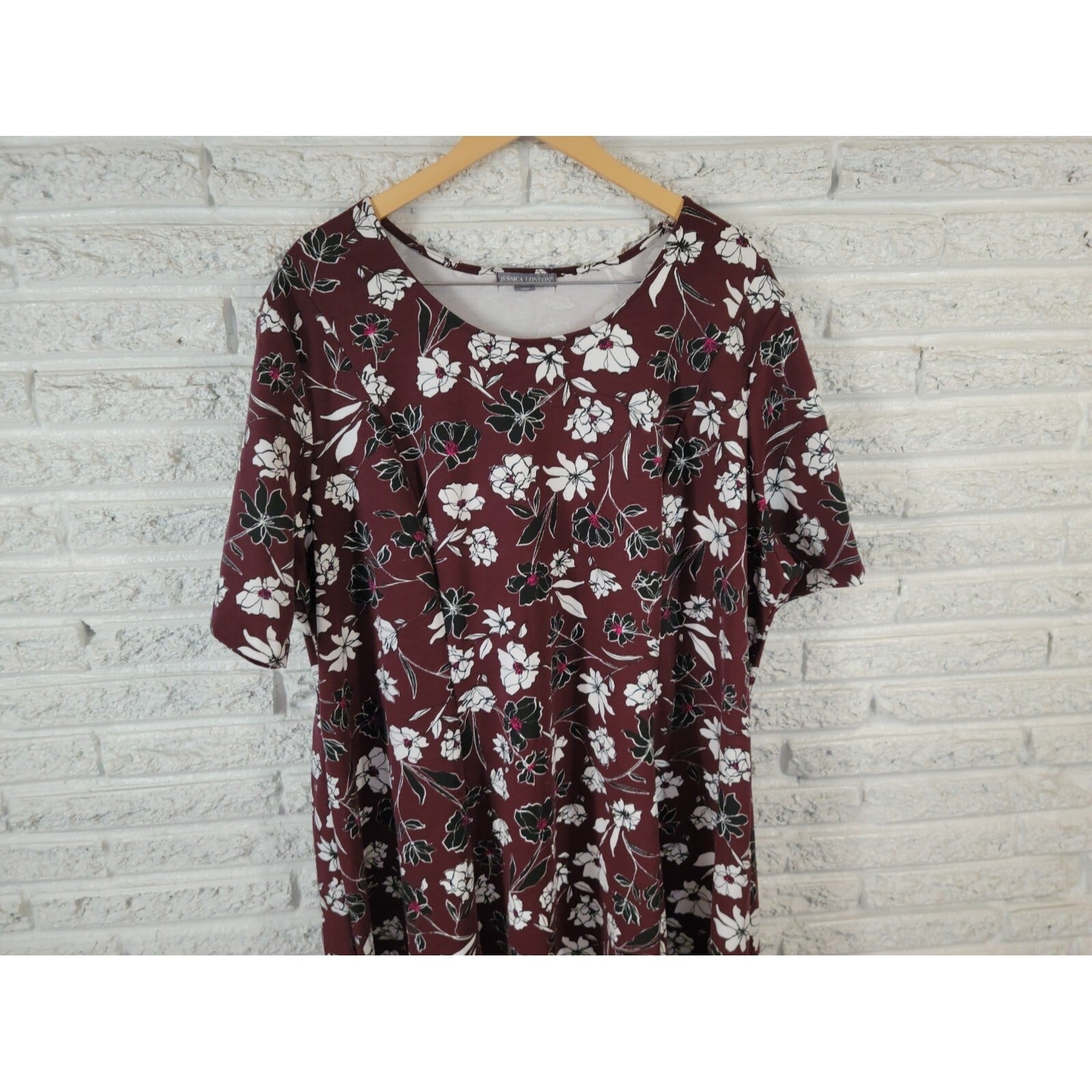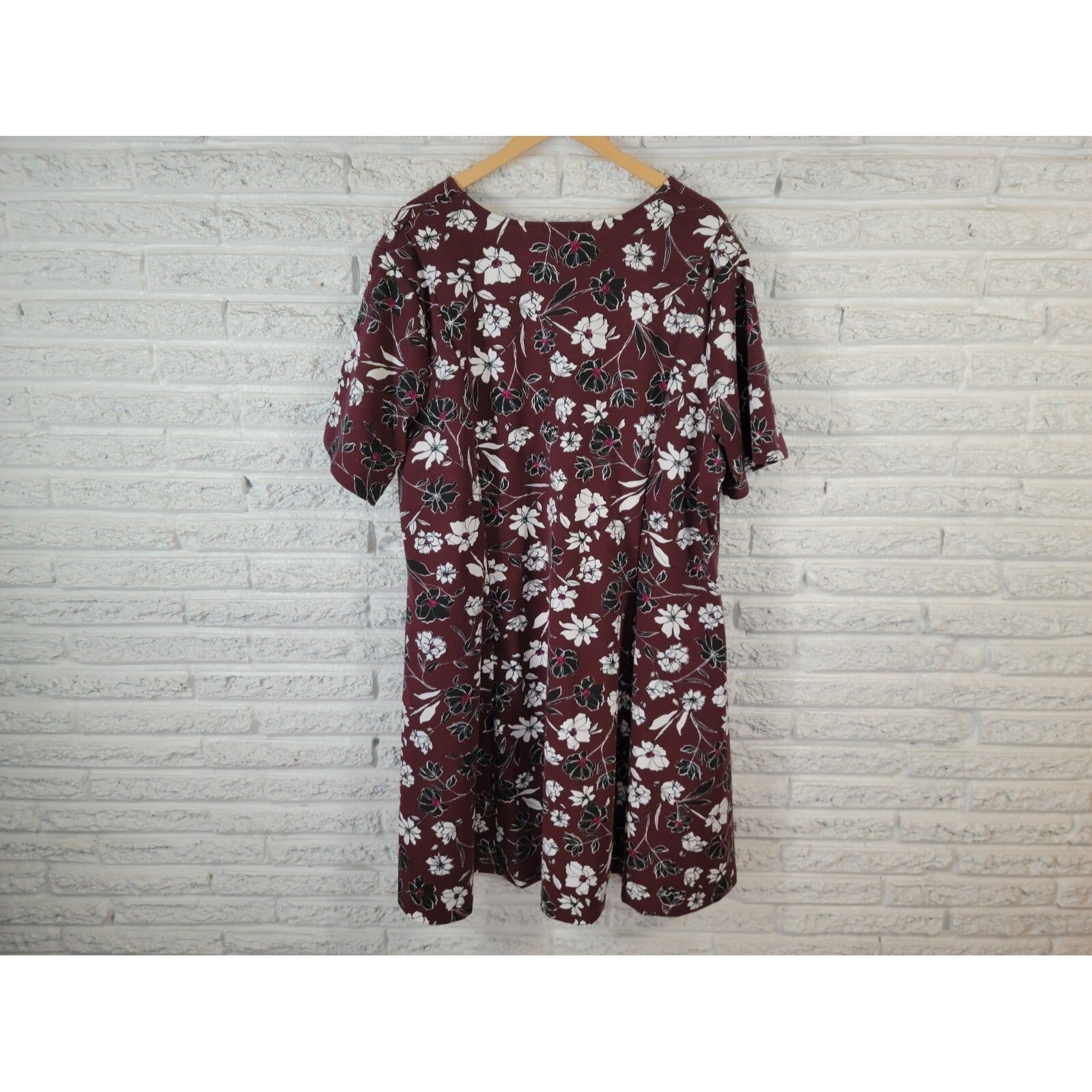 Jessica London Womens Dress 28W Plus Short Sleeve Casual Burgundy Floral Casual