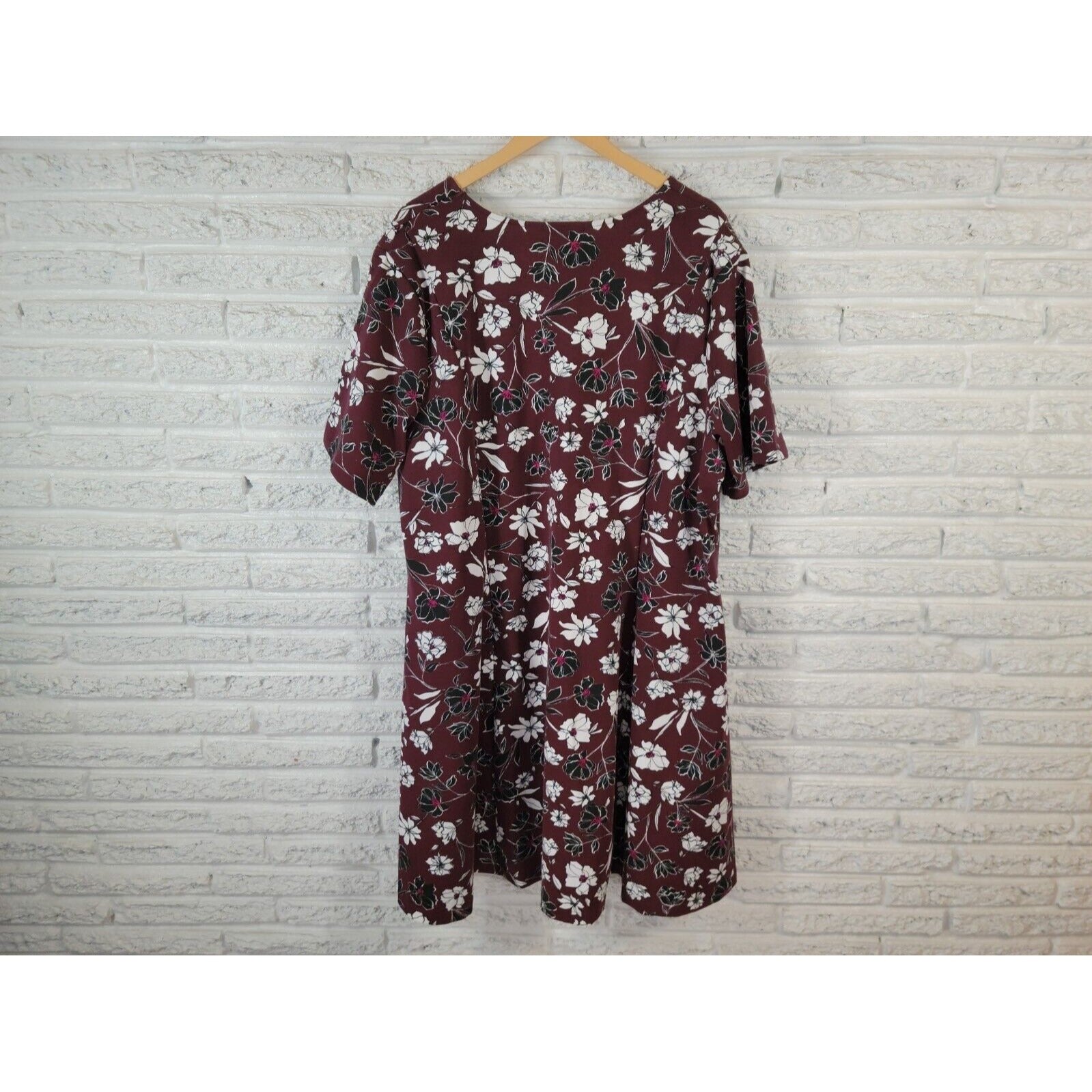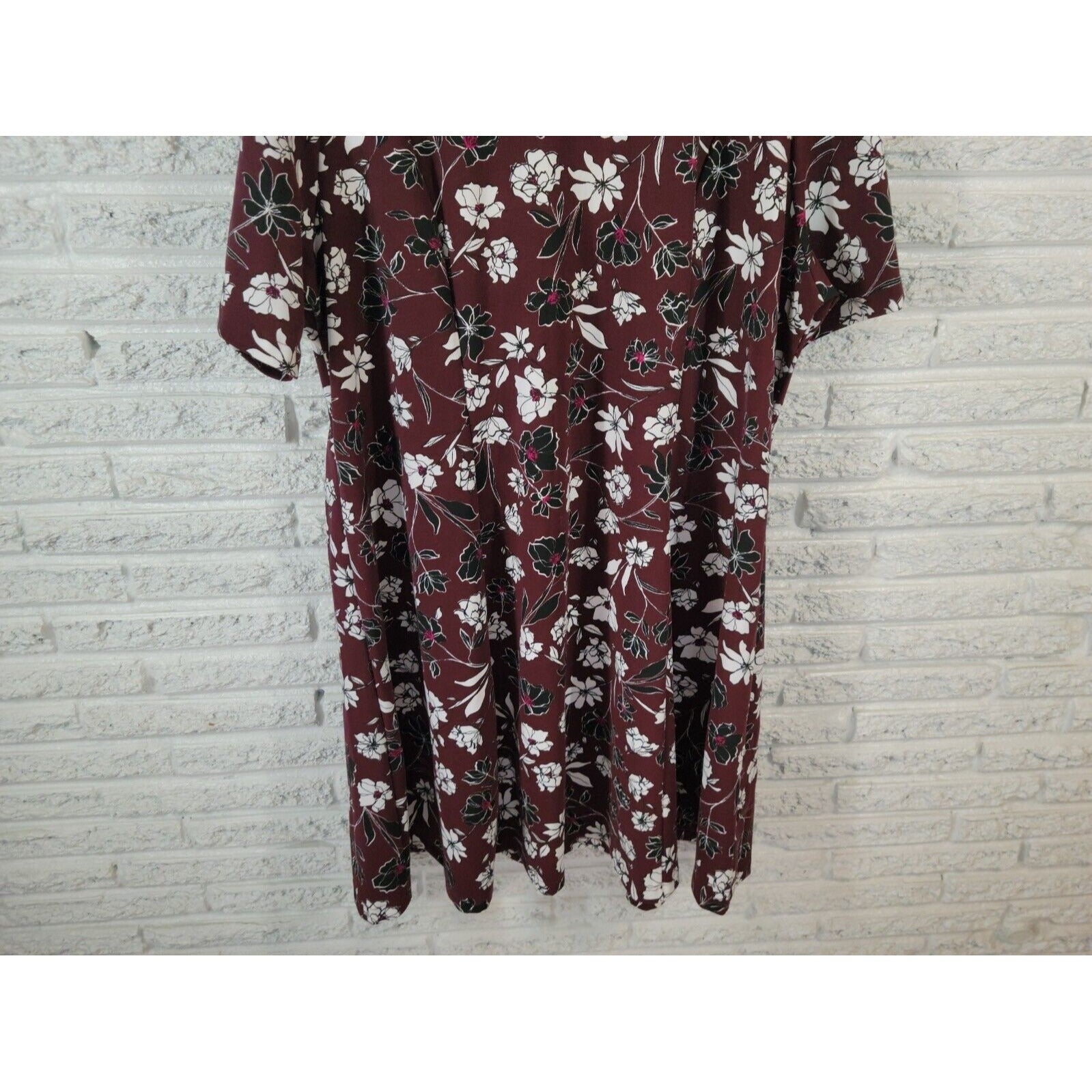 Jessica London Womens Dress 28W Plus Short Sleeve Shirt Burgundy Floral Casual