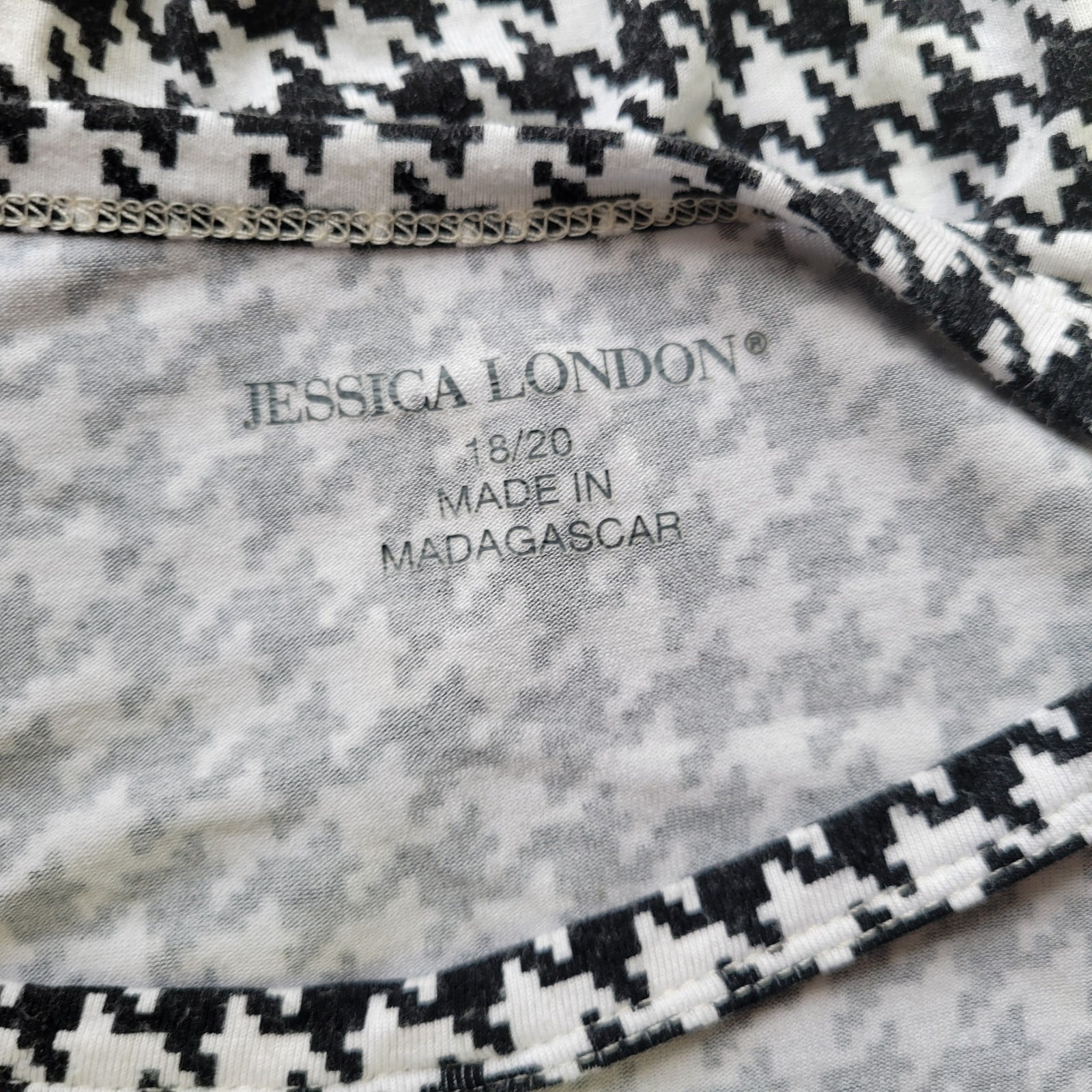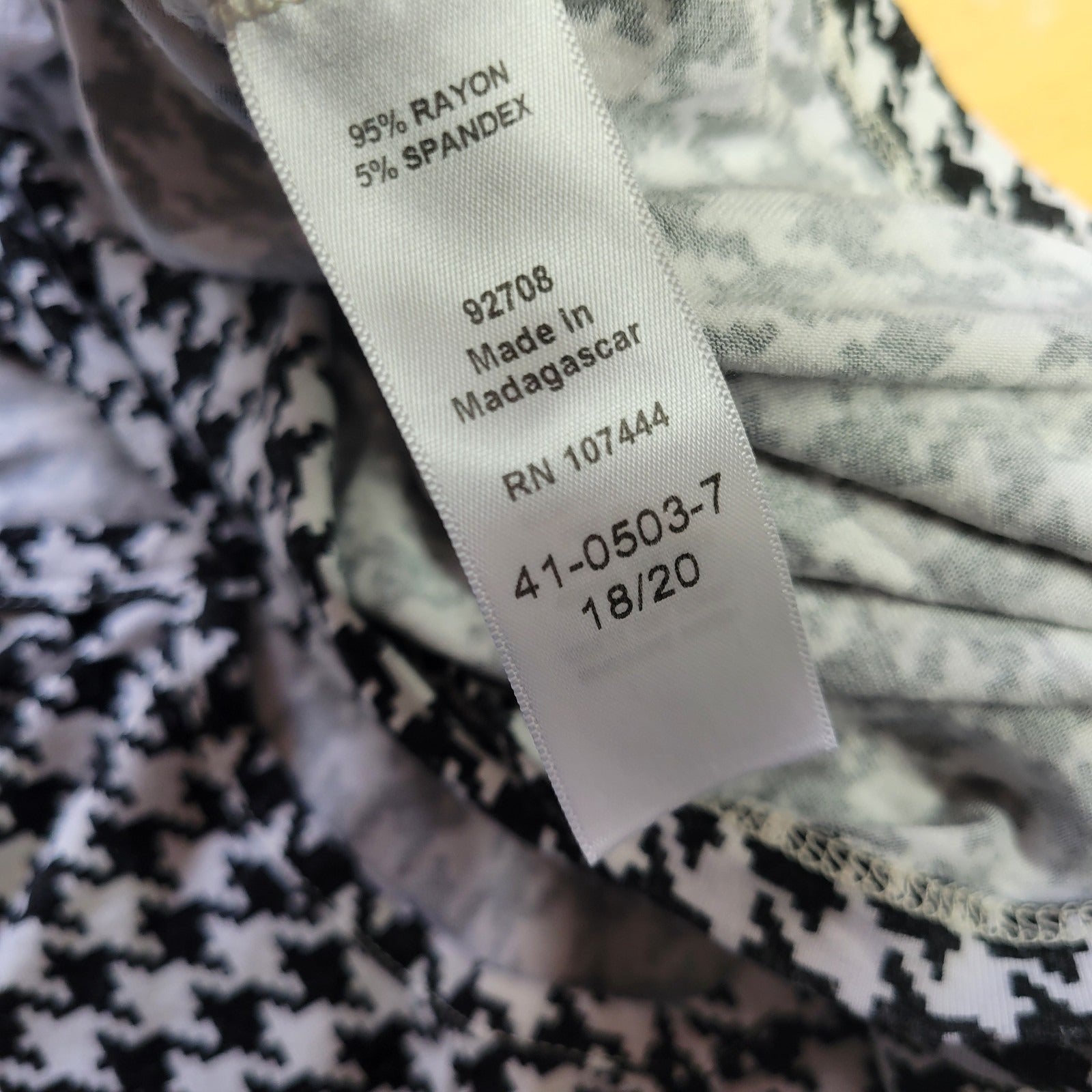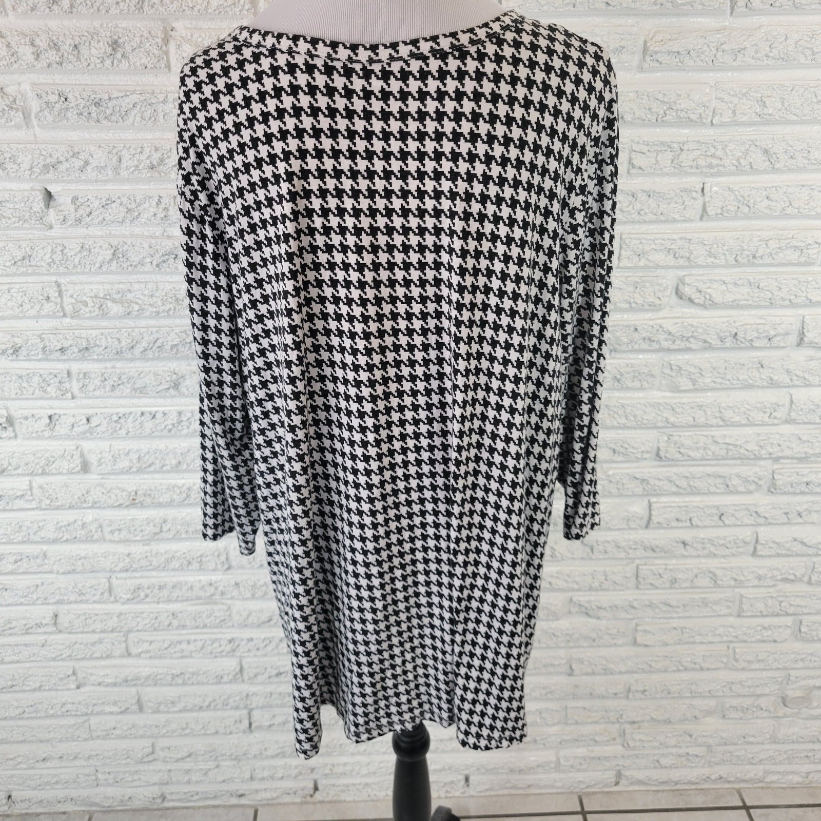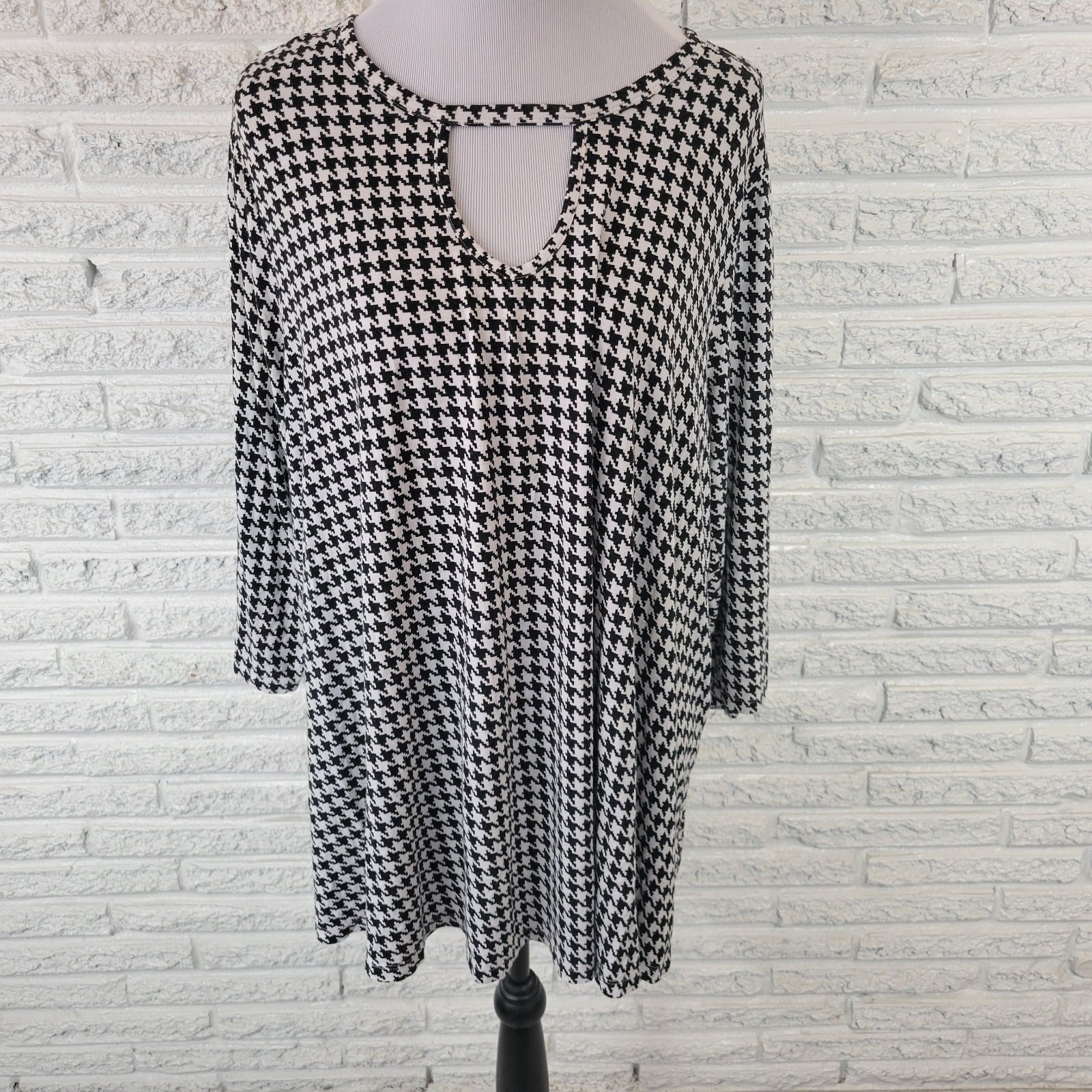 Jessica London Womens Top 18 20 Plus Tunic 3/4 Sleeve Black Houndstooth Keyhole