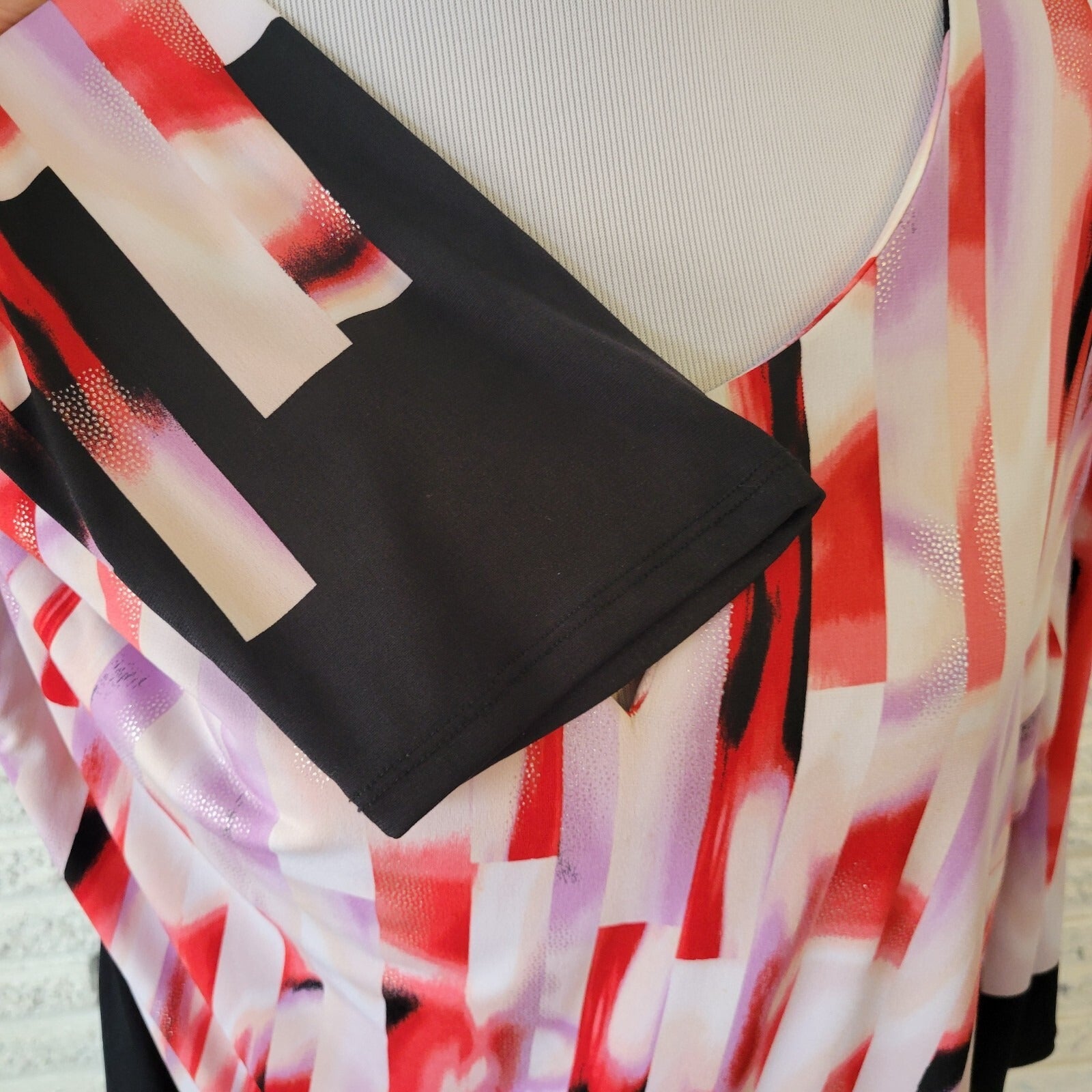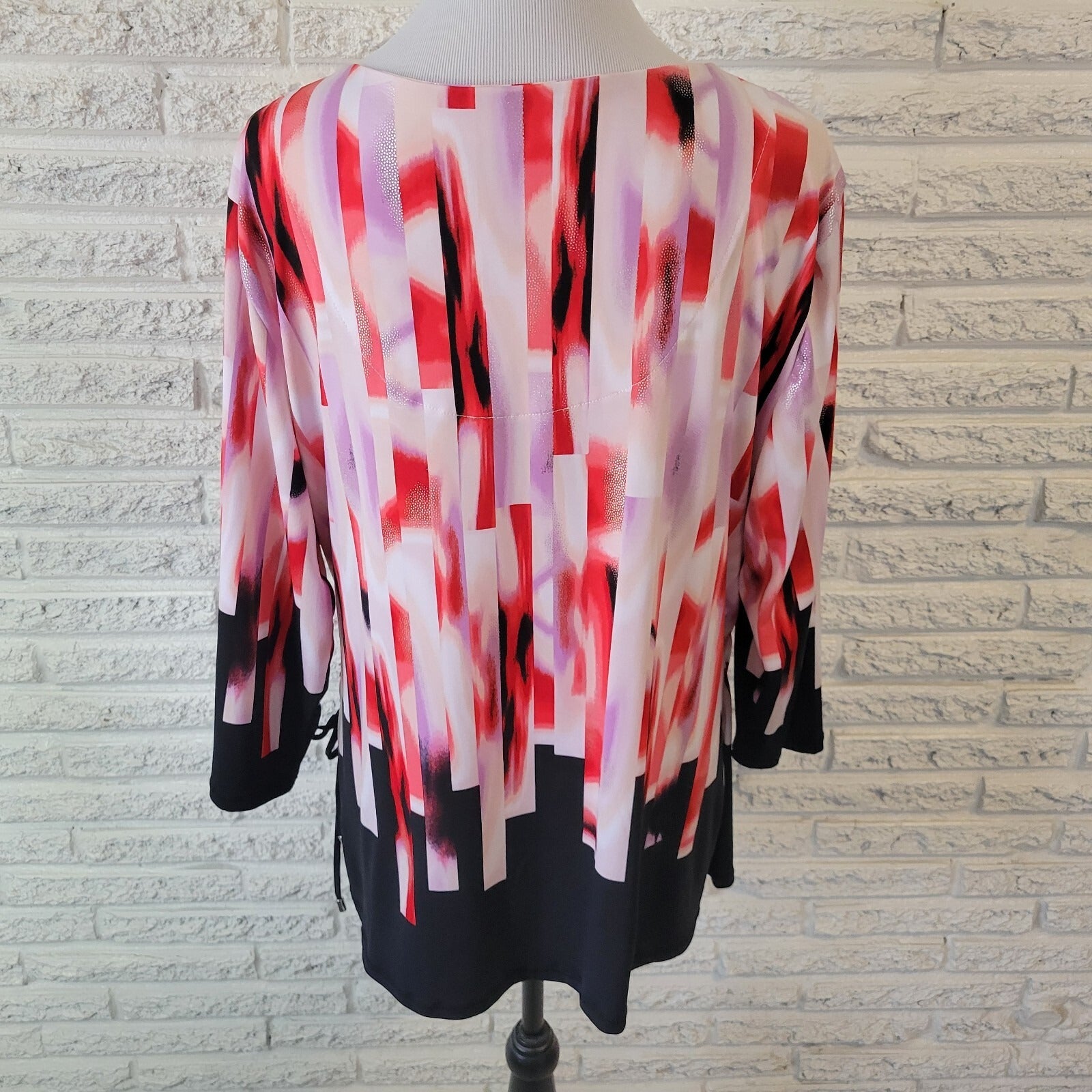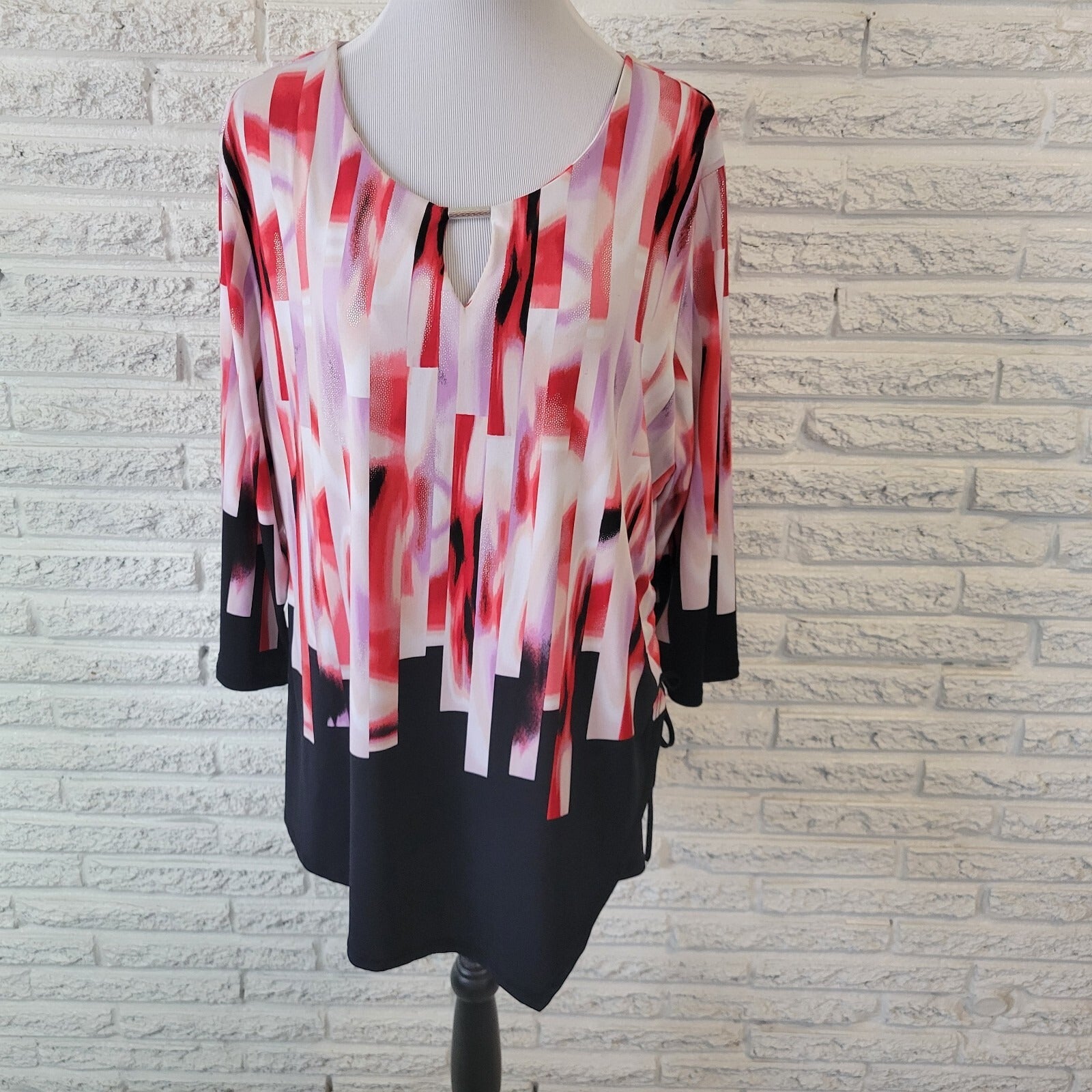 JM Collection Women Top XXL Plus Tunic Red Lavender Watercolor Keyhole Side Ties