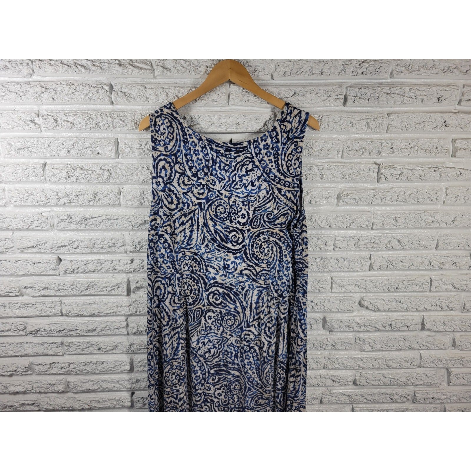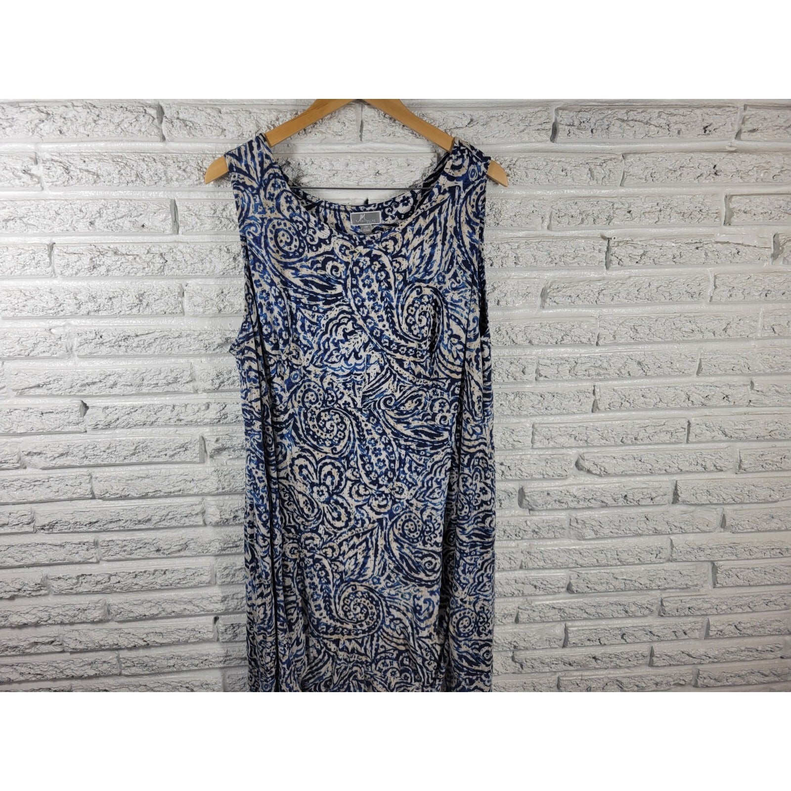 JM Collection Womens Dress 2X Plus Shift Sleeveless Blue Paisley Rayon Blend