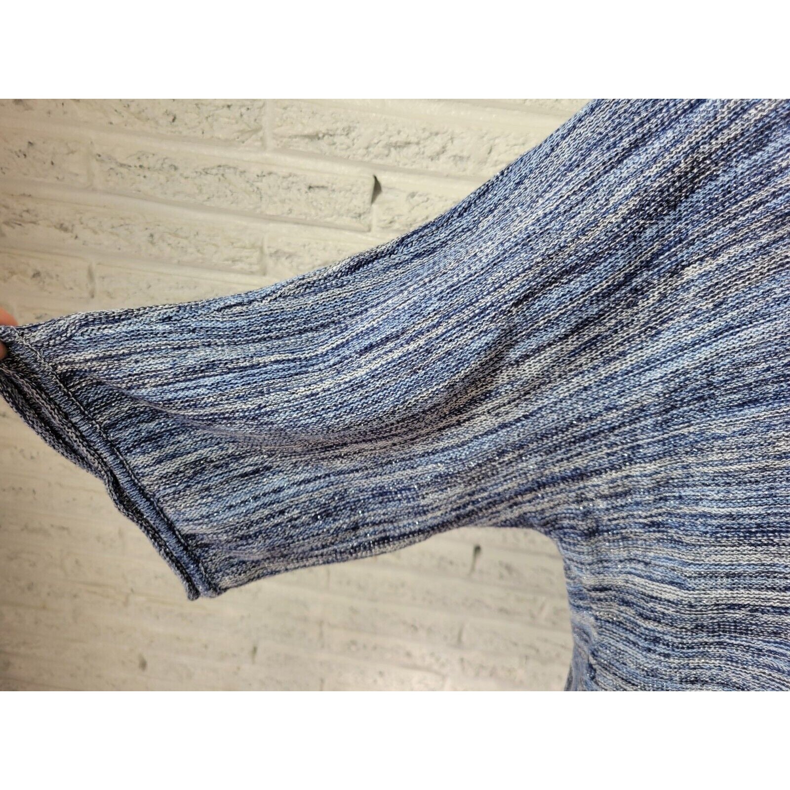 Elevate your wardrobe with this stunning JM Collection cardigan sweater. Crafted from a cotton blend knit fabric, this sweater features a tight-knit style with short sleeves and a round neckline that make it perfect for casual occasions. The garment is machine washable and has large buttons for easy wear. The blue marled metallic color adds a touch of elegance to the piece, which is perfect for all seasons.  The sweater is perfect for winter, summer, fall, and spring. It  is ideal for those who prioritize comfort and style. With its unique features and top-notch quality, this JM Collection sweater is bound to become a favorite in any wardrobe.