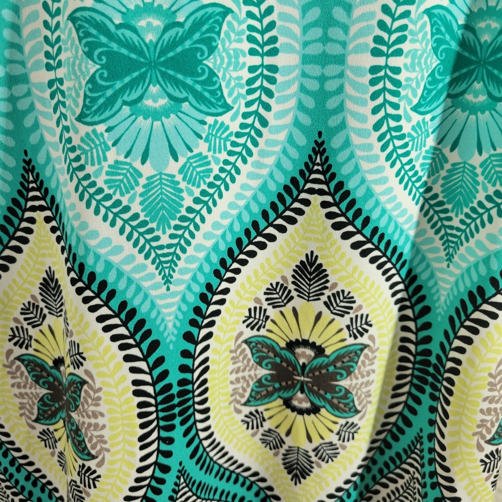 The JM Collection Women's Top in XL size features a stylish blue and black geometric pattern with rhinestone accents, making it perfect for casual occasions and travel. This pullover blouse has a flattering V-neckline, 3/4 sleeves, and a slit detail for added flair. Made from a comfortable polyester blend, this tunic-style top is machine washable and offers stretch for a comfortable fit. Wear it in all seasons, from winter to summer, to showcase this trendy piece in your wardrobe.