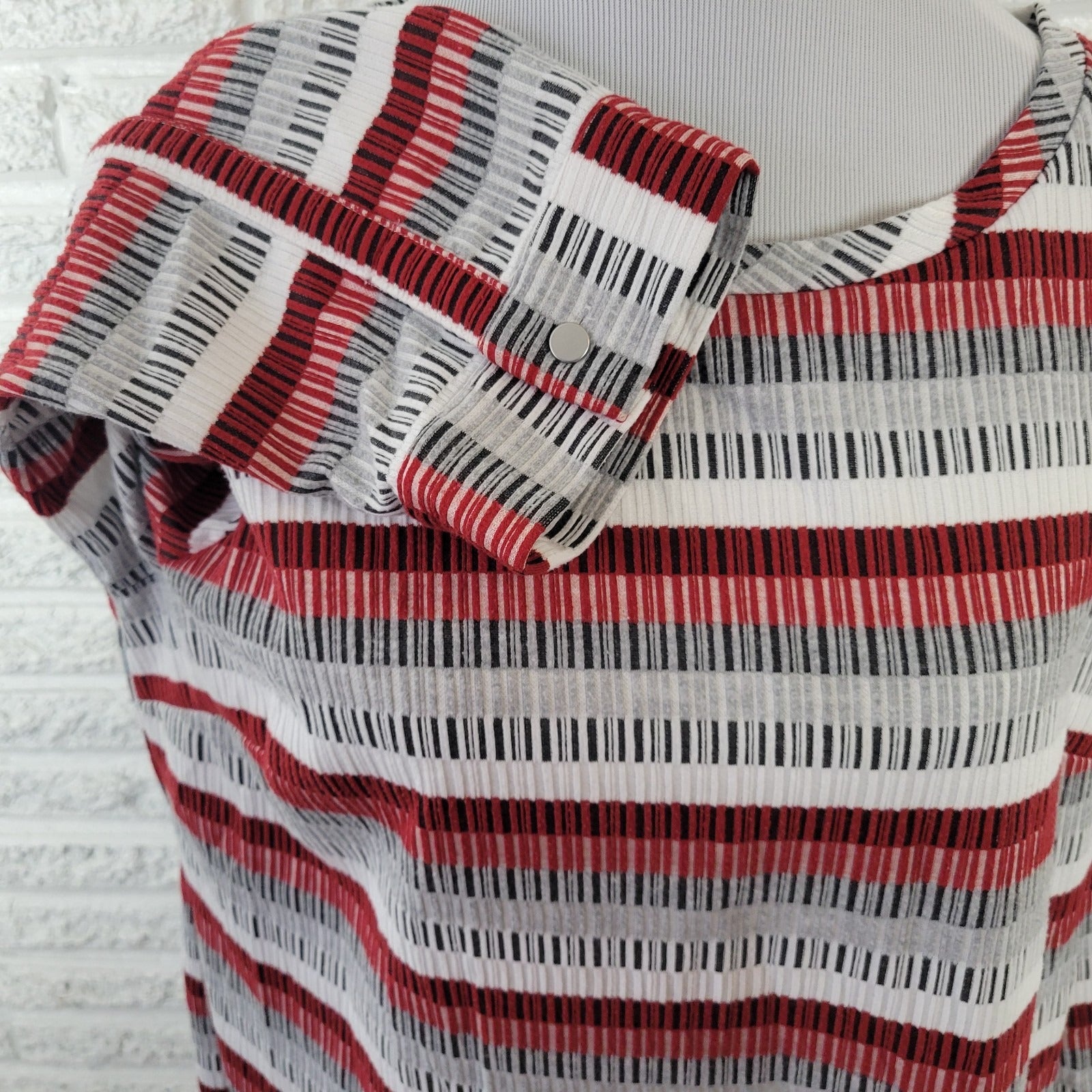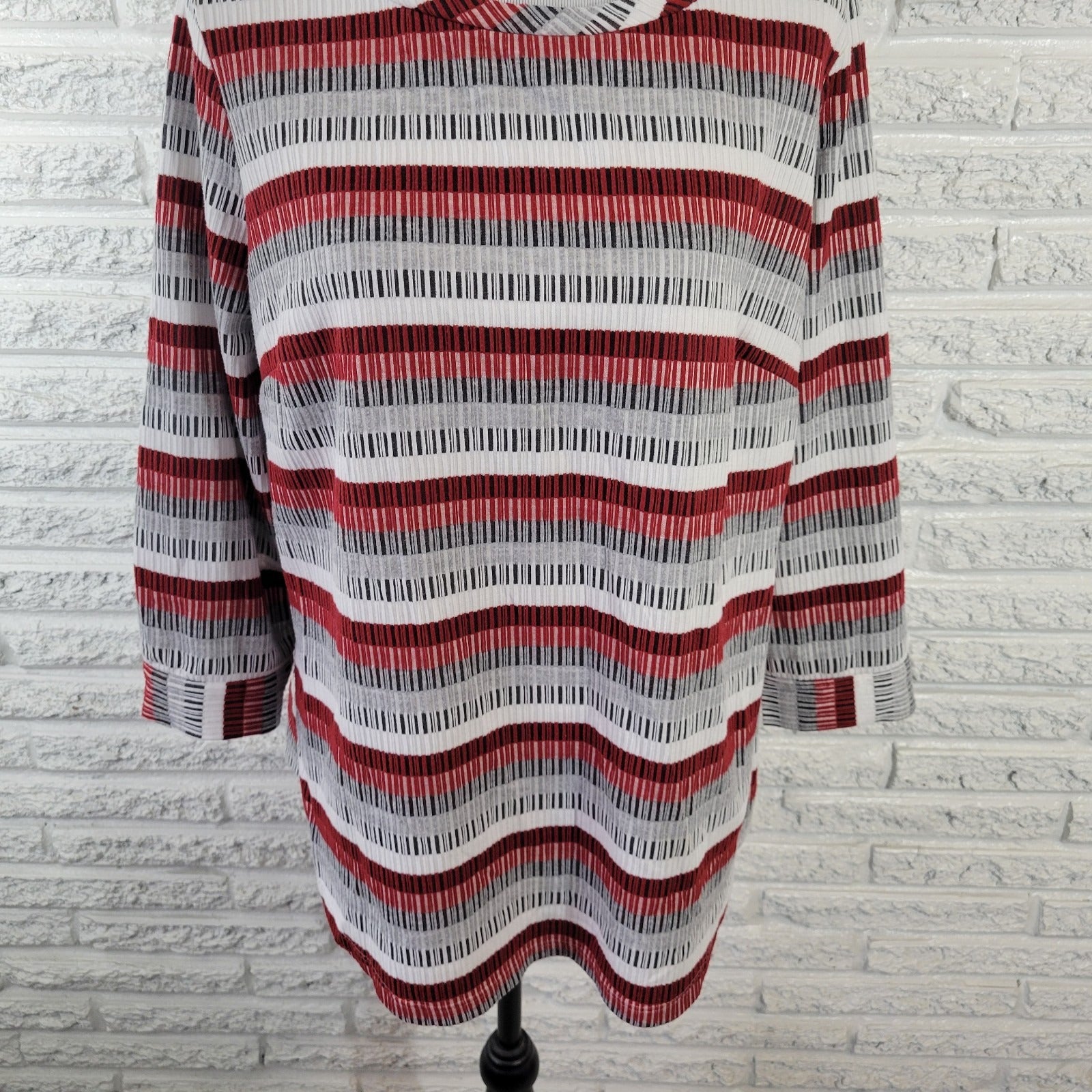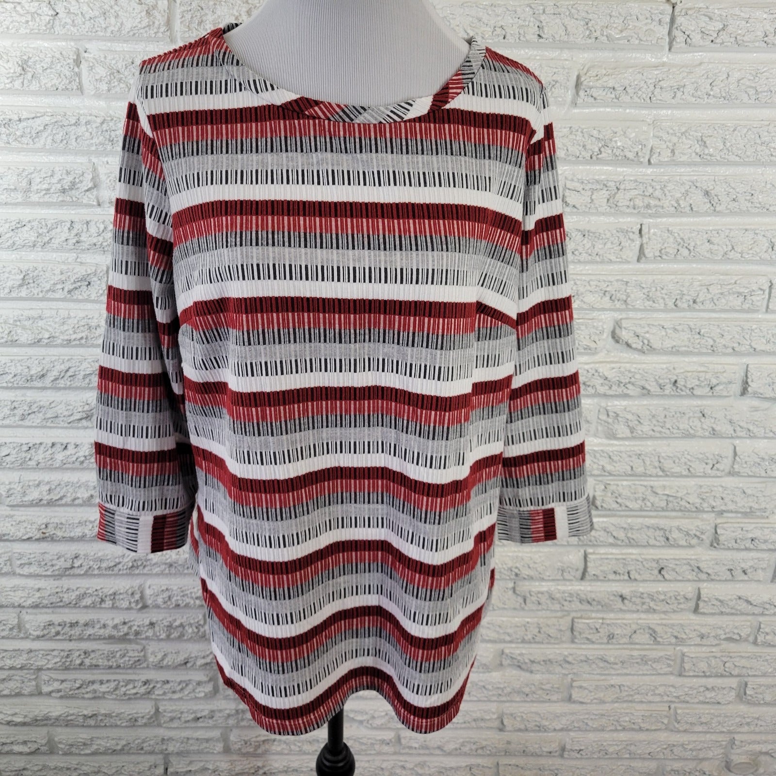 Jones New York 1X Blouse Top Red Gray Striped 3/4 Sleeve Stretch STR104E