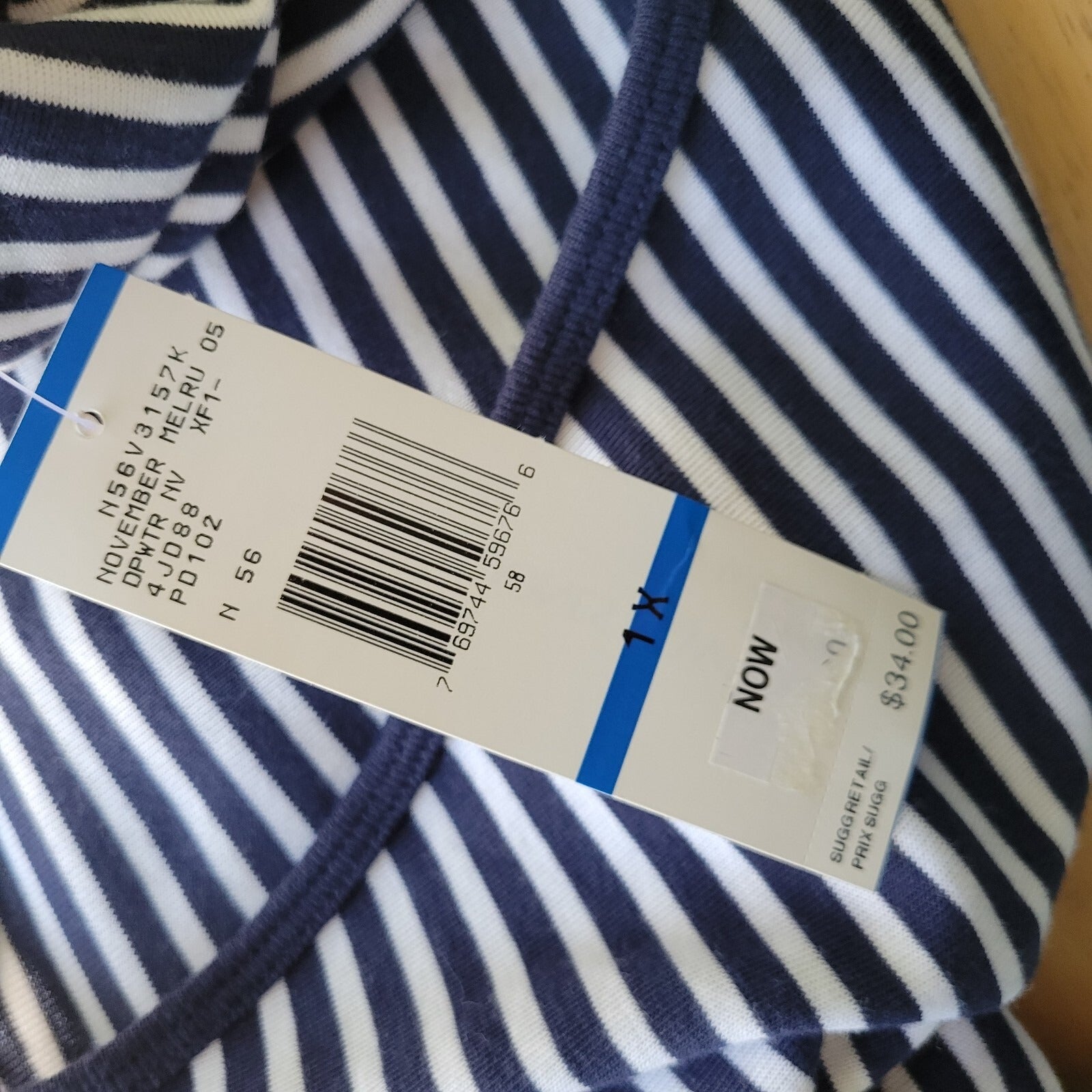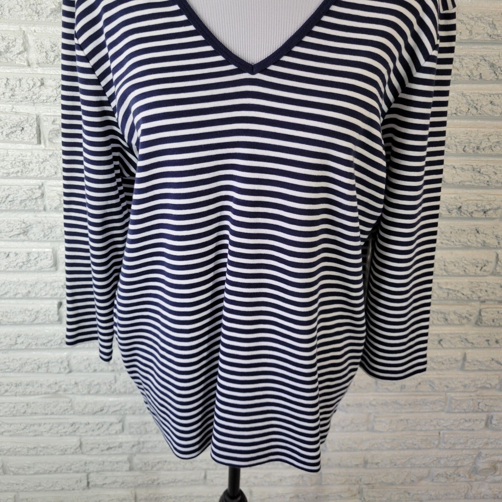 Jones New York Sport Women Top 1X Plus 3/4 Sleeve Blue White Stripe Comfy Cotton