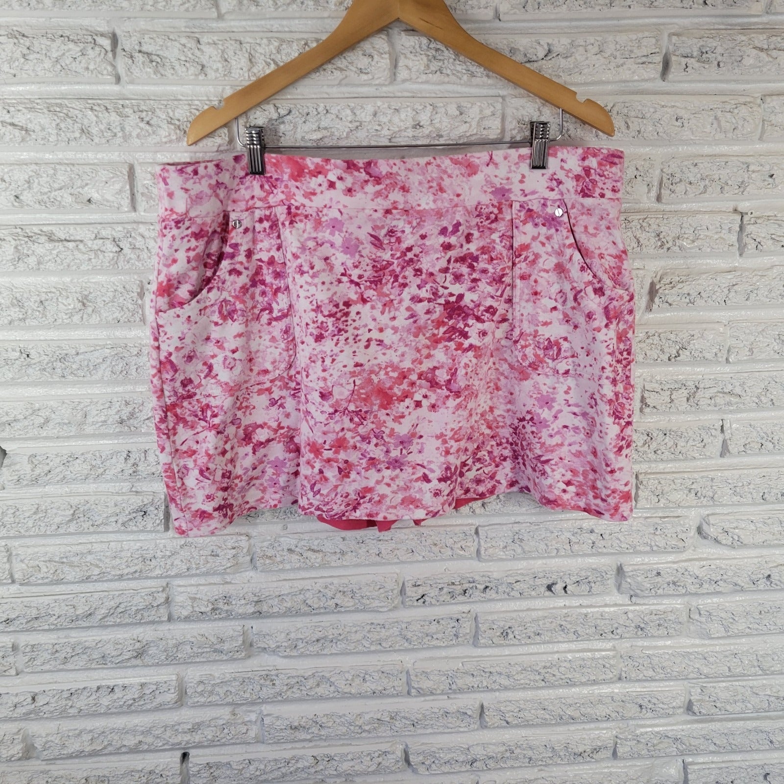 Jones New York XL Pink Floral Skort Cotton Pull On Elastic Waist Pockets