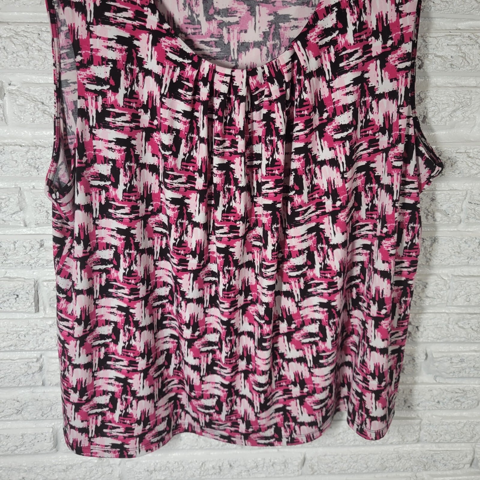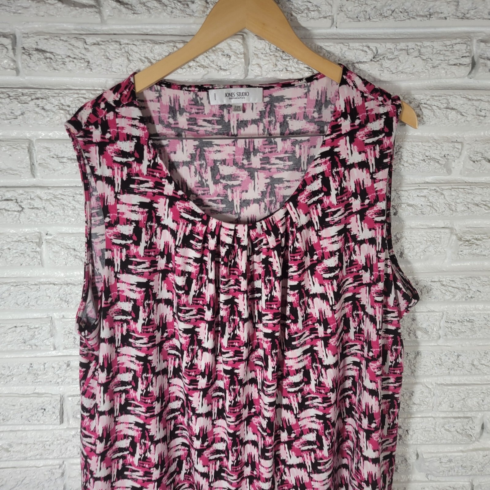 Jones Studio Womens Top 24W Plus Sleeveless Pink Black Watercolor Pleated Lined