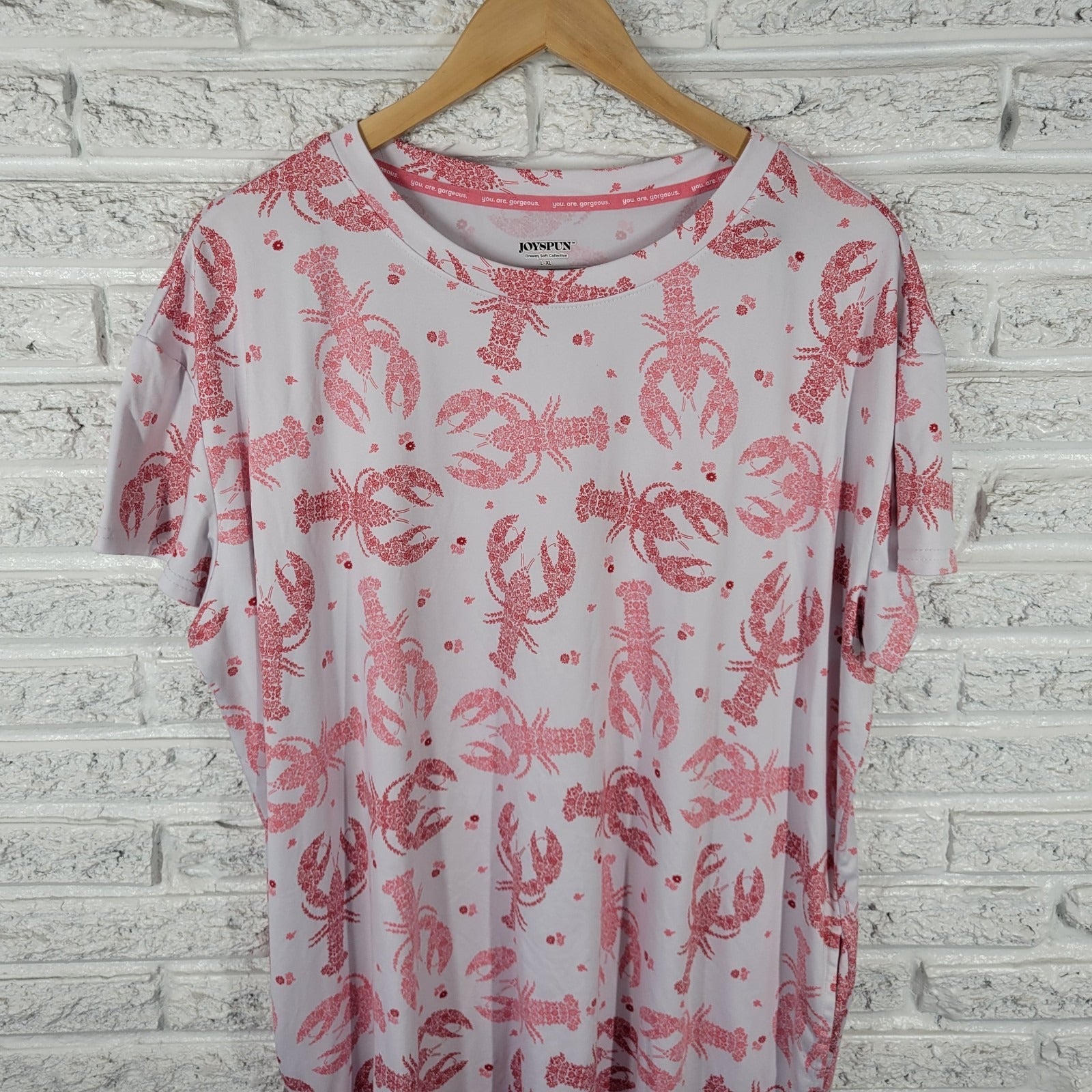 Joyspun Womens Nightgown Womens L XL Pajama Top Lobsters All Over Pink Lounge