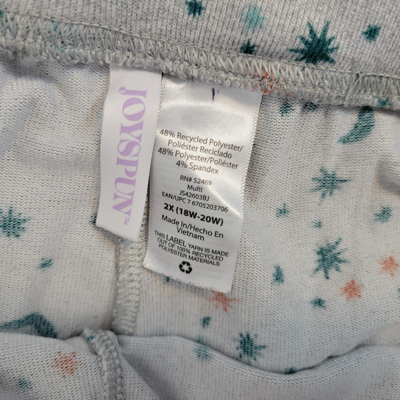 Joyspun Womens Pajama Pants 2X Plus Comfy Gray Moons Stars Loungewear Drawstring