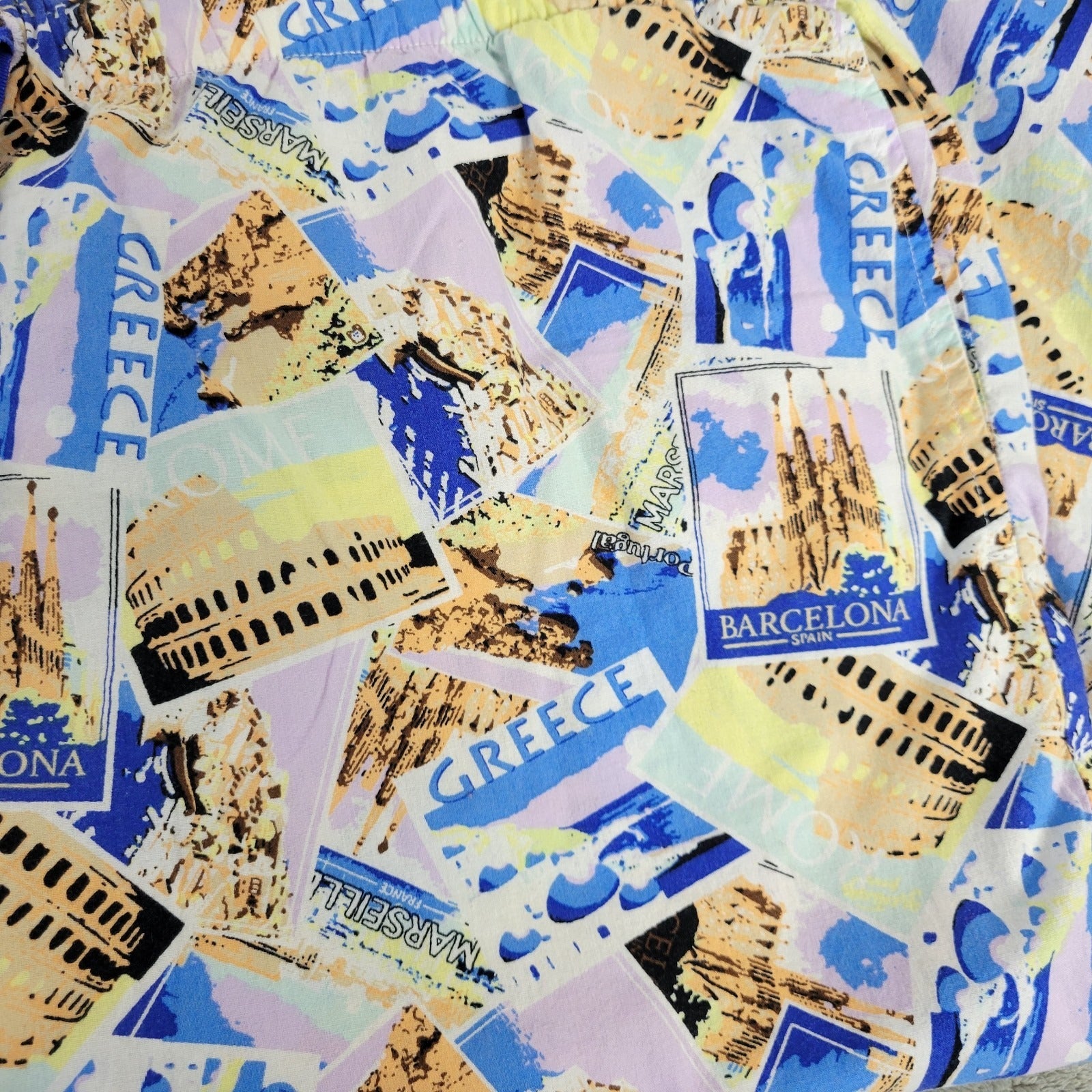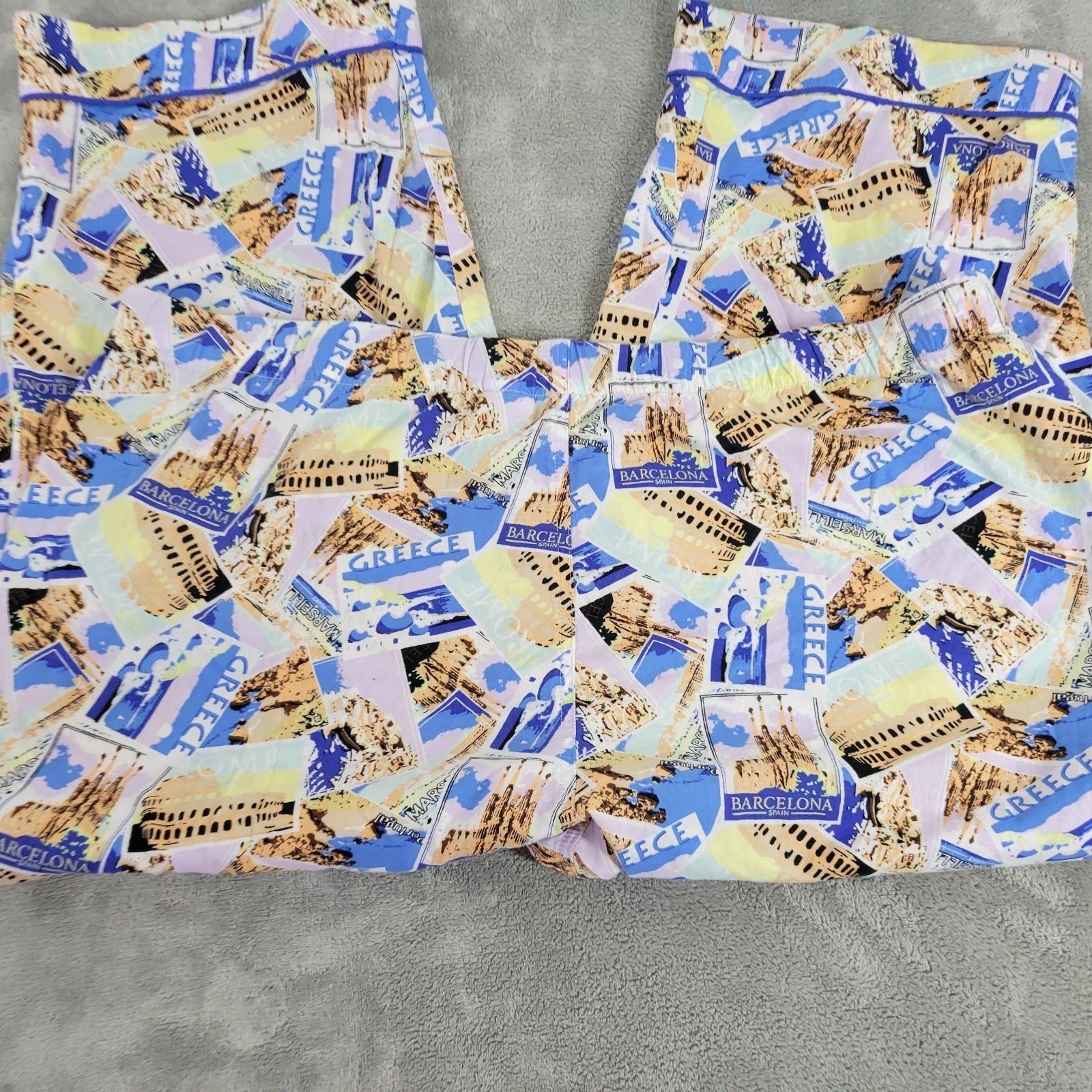 Joyspun Womens Pajama Pants XL Capri Drawstring Greece Barcelona Blue Comfy