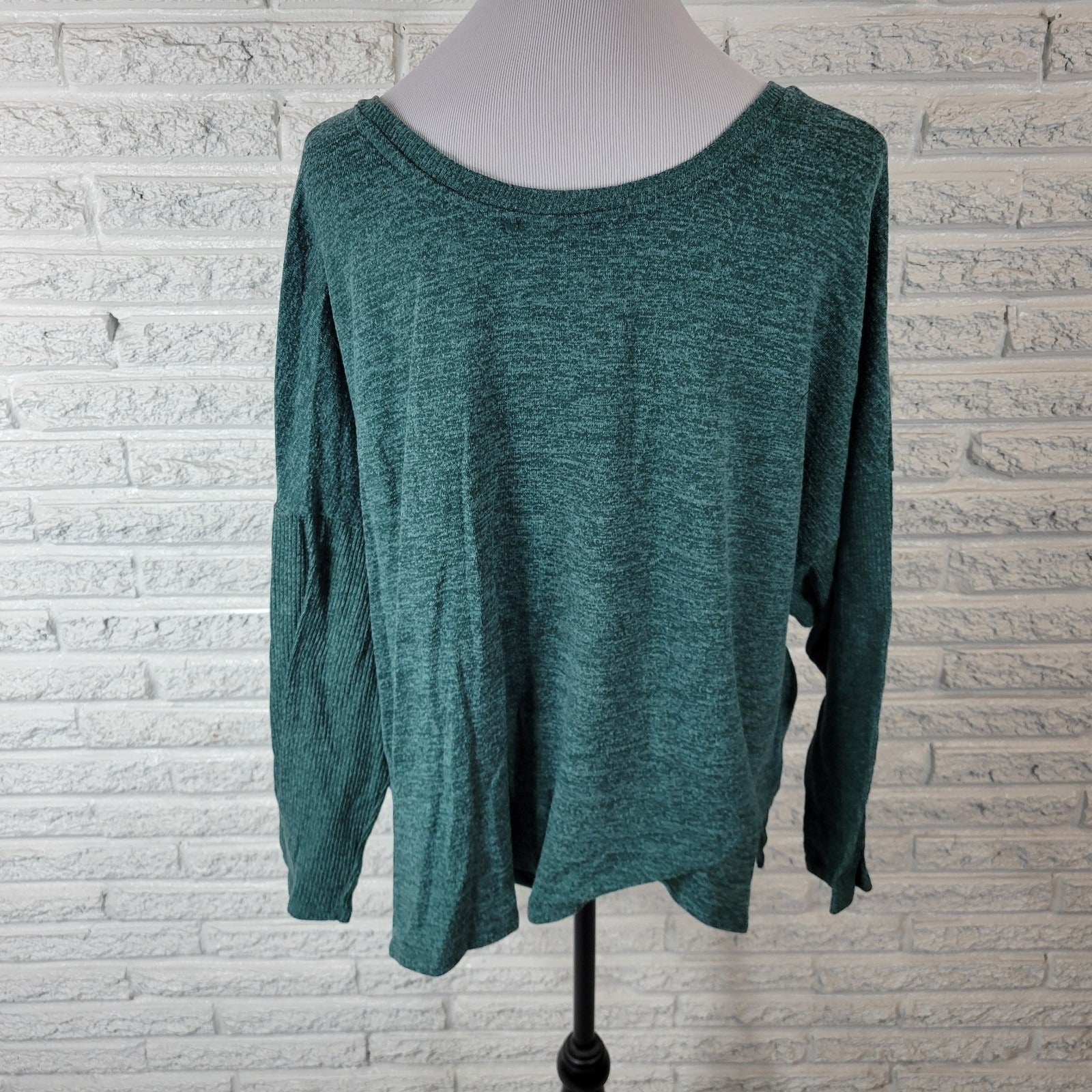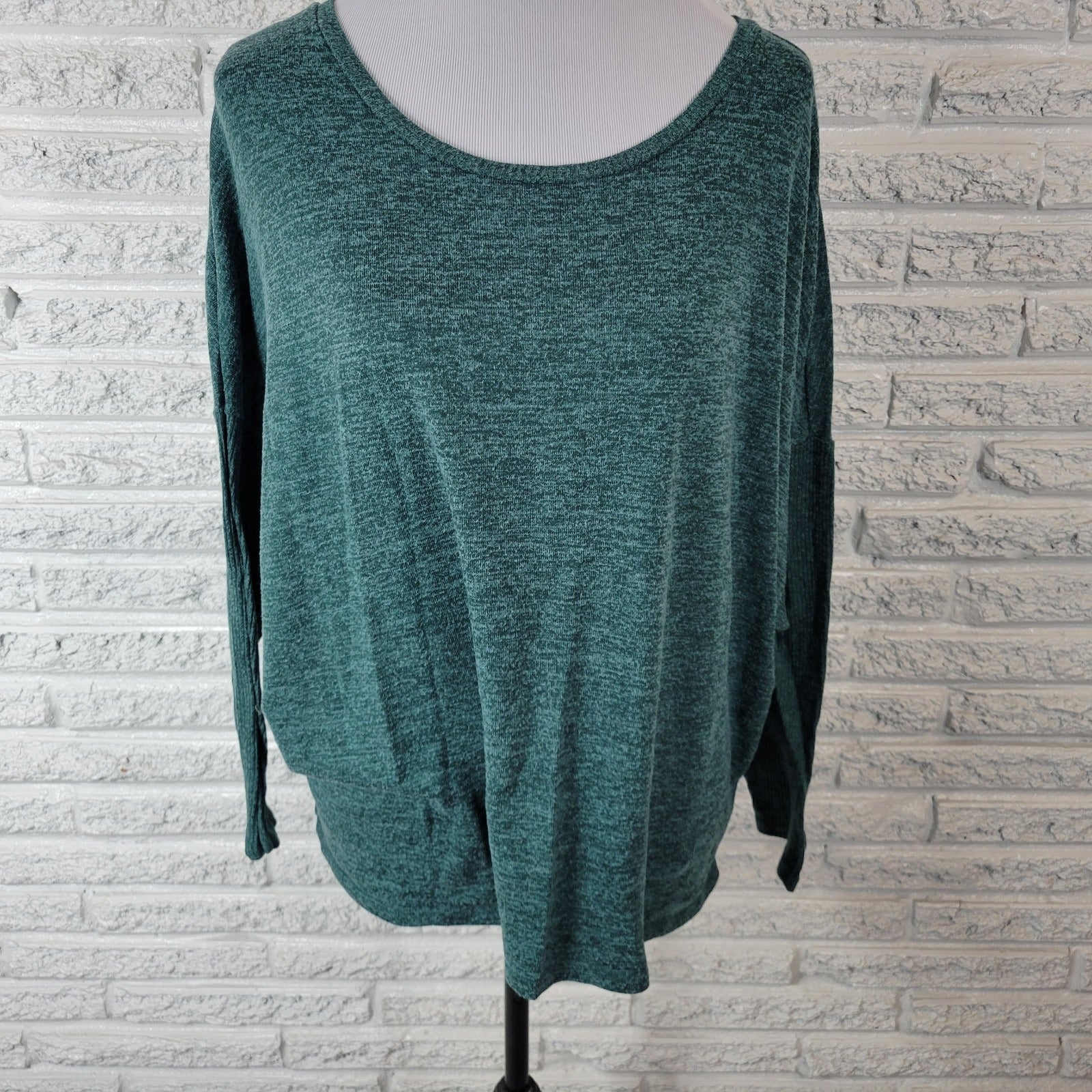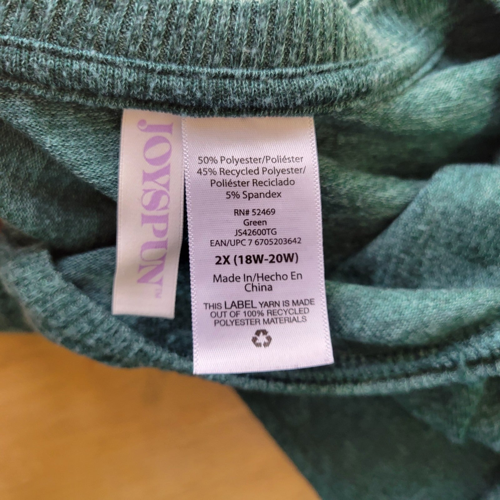 Joyspun Womens Pajama Top 2X 18W 20W Plus Green Poly Blend Loungewear Comfy