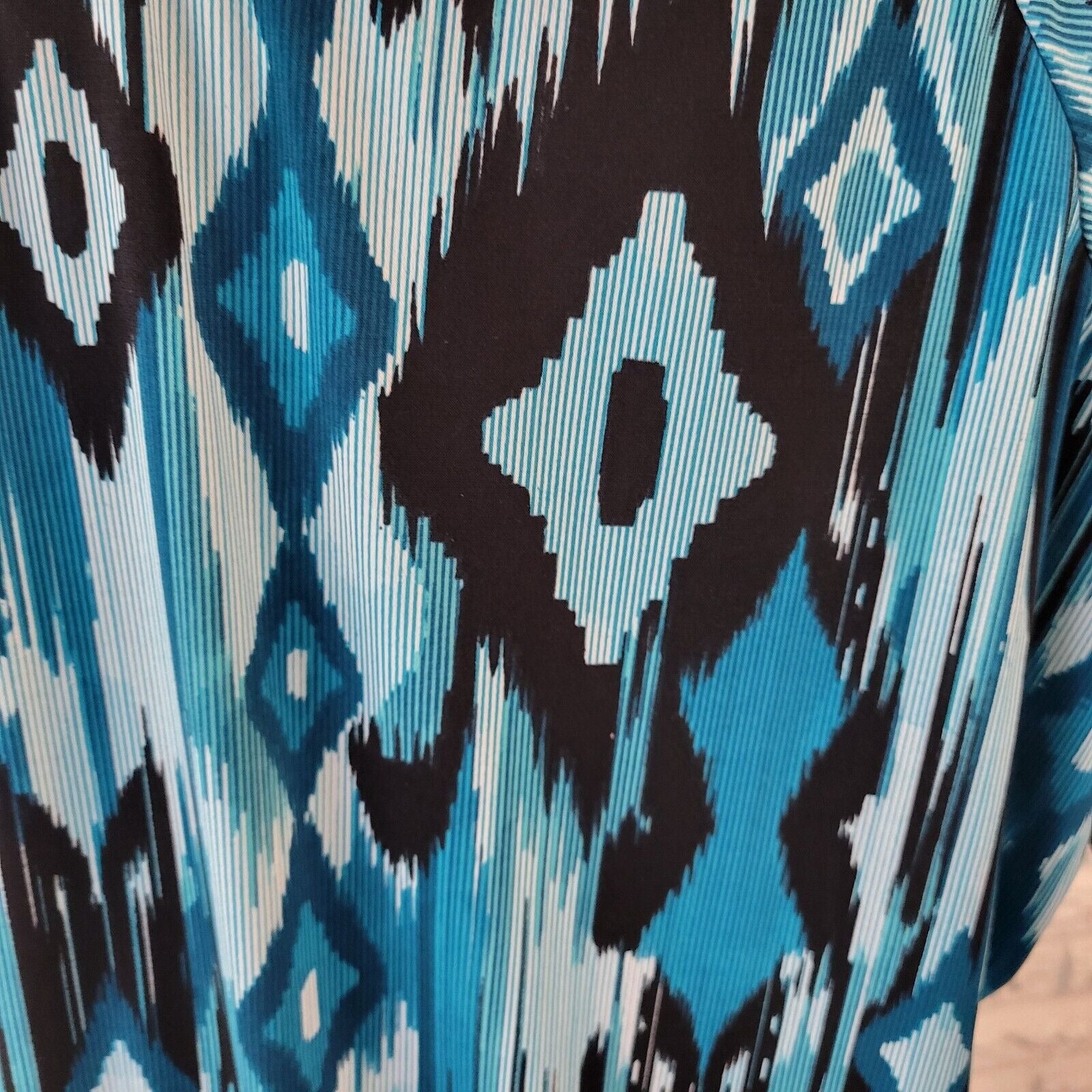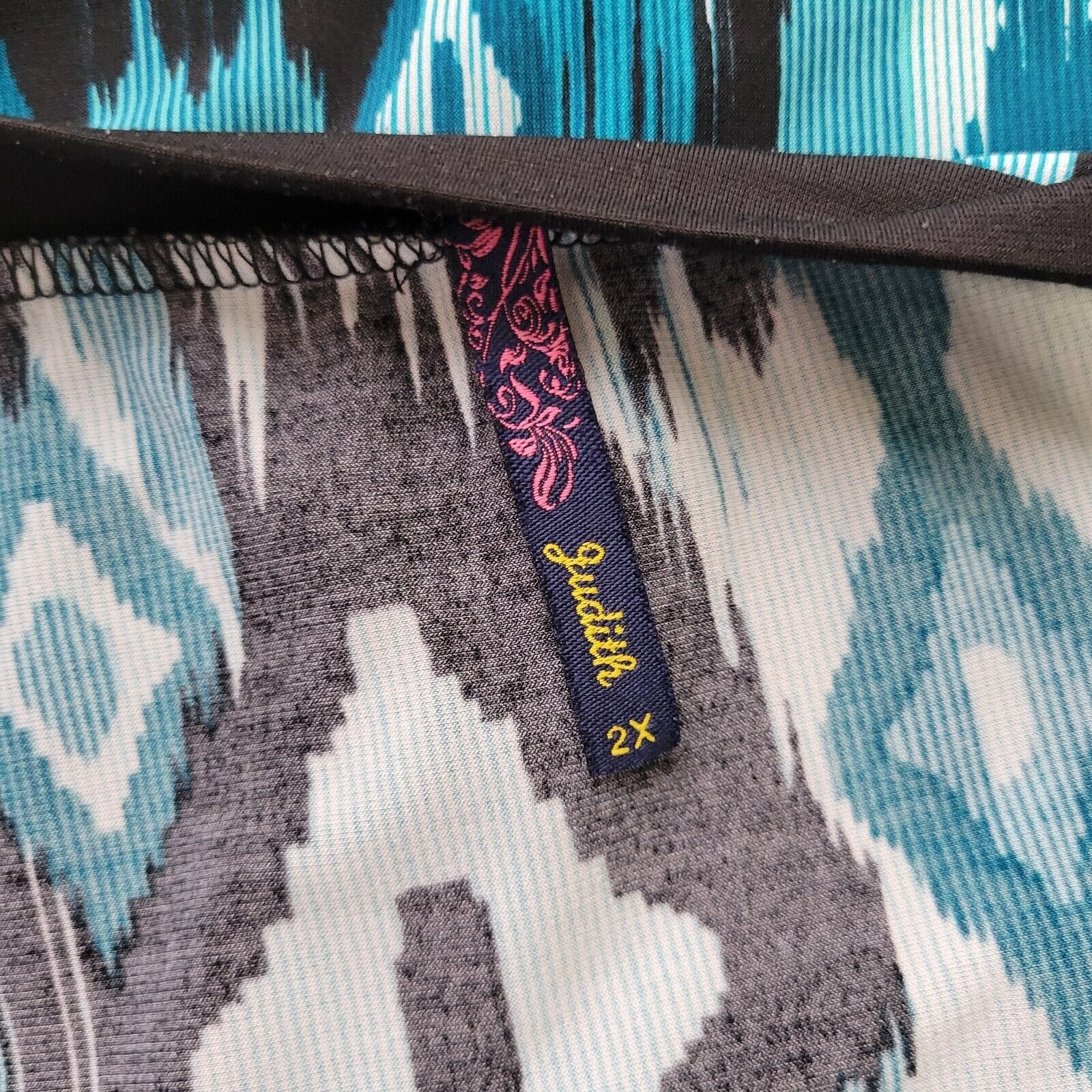 Judith Womens Top 2X Plus Short Sleeve Blue Black Diamonds Poly Blend Office