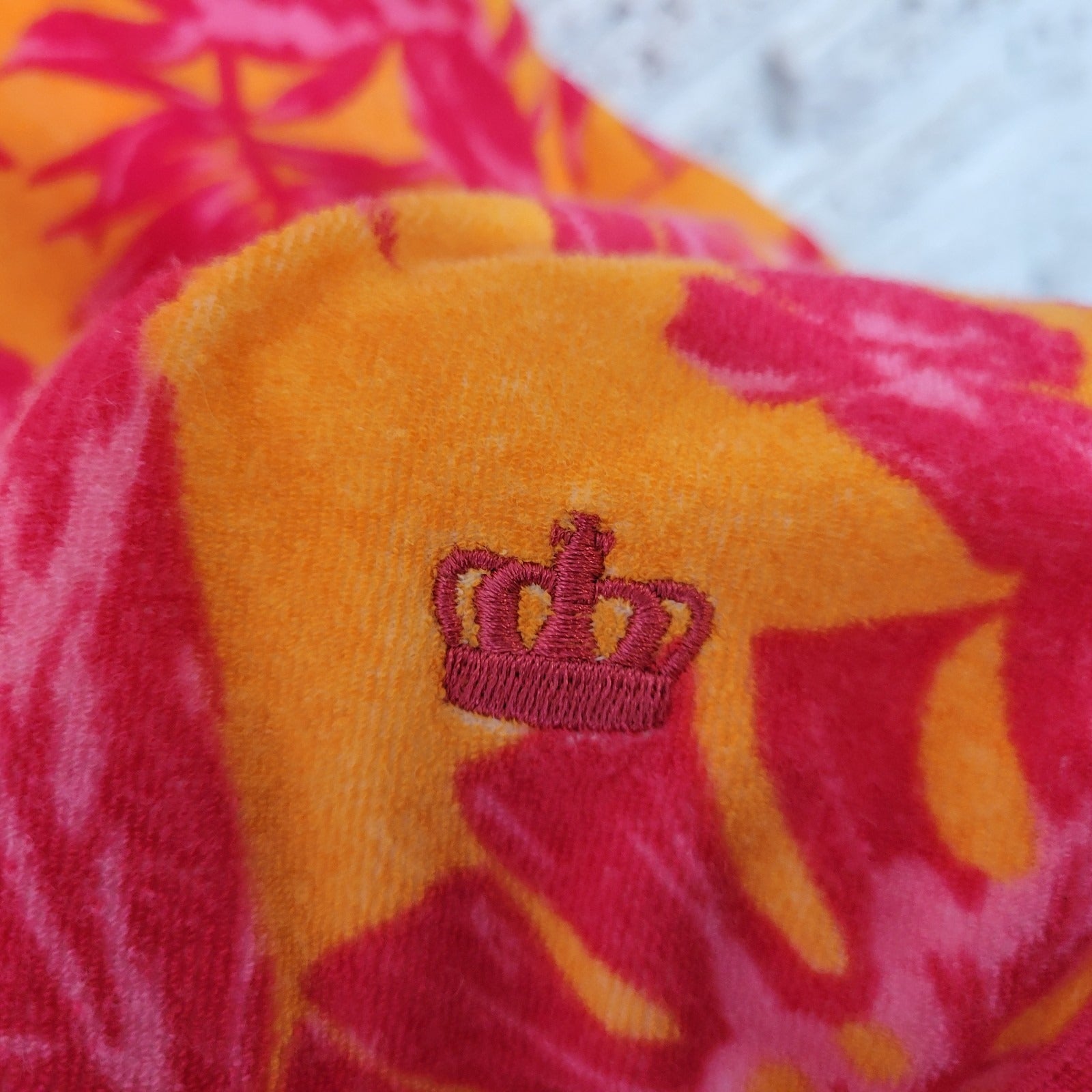 The Juicy Couture Women's Cover Up Dress in XL is a stylish and comfortable option for women looking for a cute and trendy swimwear cover up. This pink floral sleeveless terry cloth dress is machine washable and made from a soft cotton blend material, ensuring both easy care and a cozy feel. Perfect for lounging by the pool or heading to the beach, this cover up dress features a stretchy design and an XL size that is flattering for women of all shapes and sizes. This Juicy Couture cover up dress is a must-have addition to any woman's summer wardrobe.