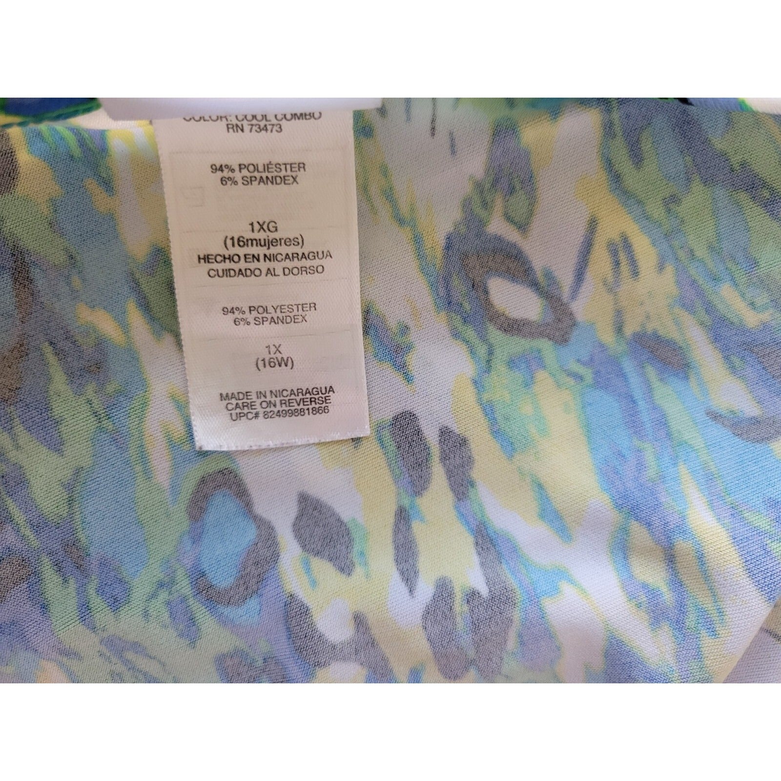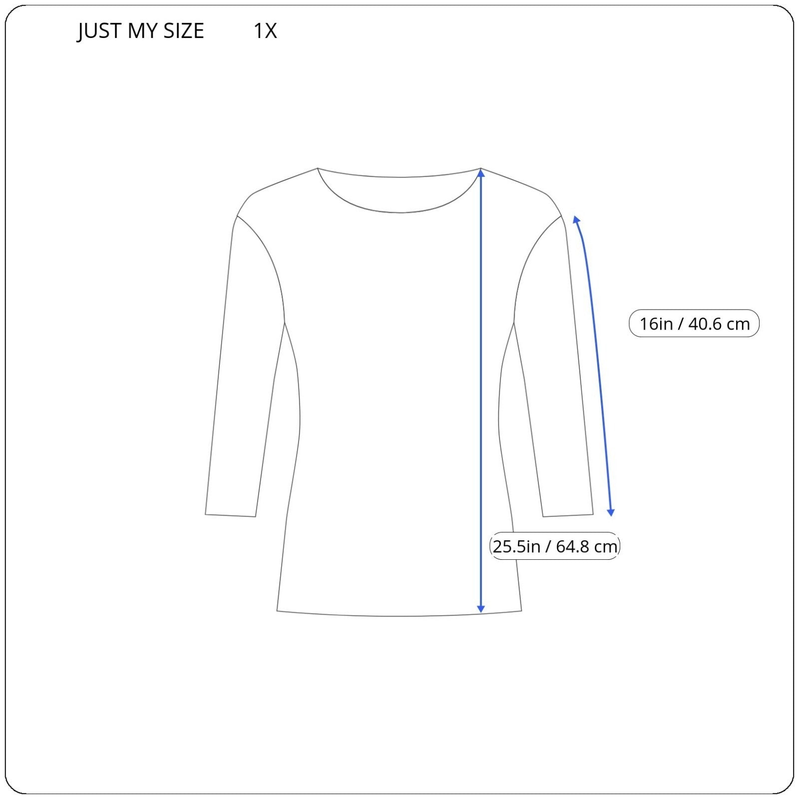 Just My Size Womens Top 1X 18W Plus 3/4 Sleeve Blue Watercolor Draped Career