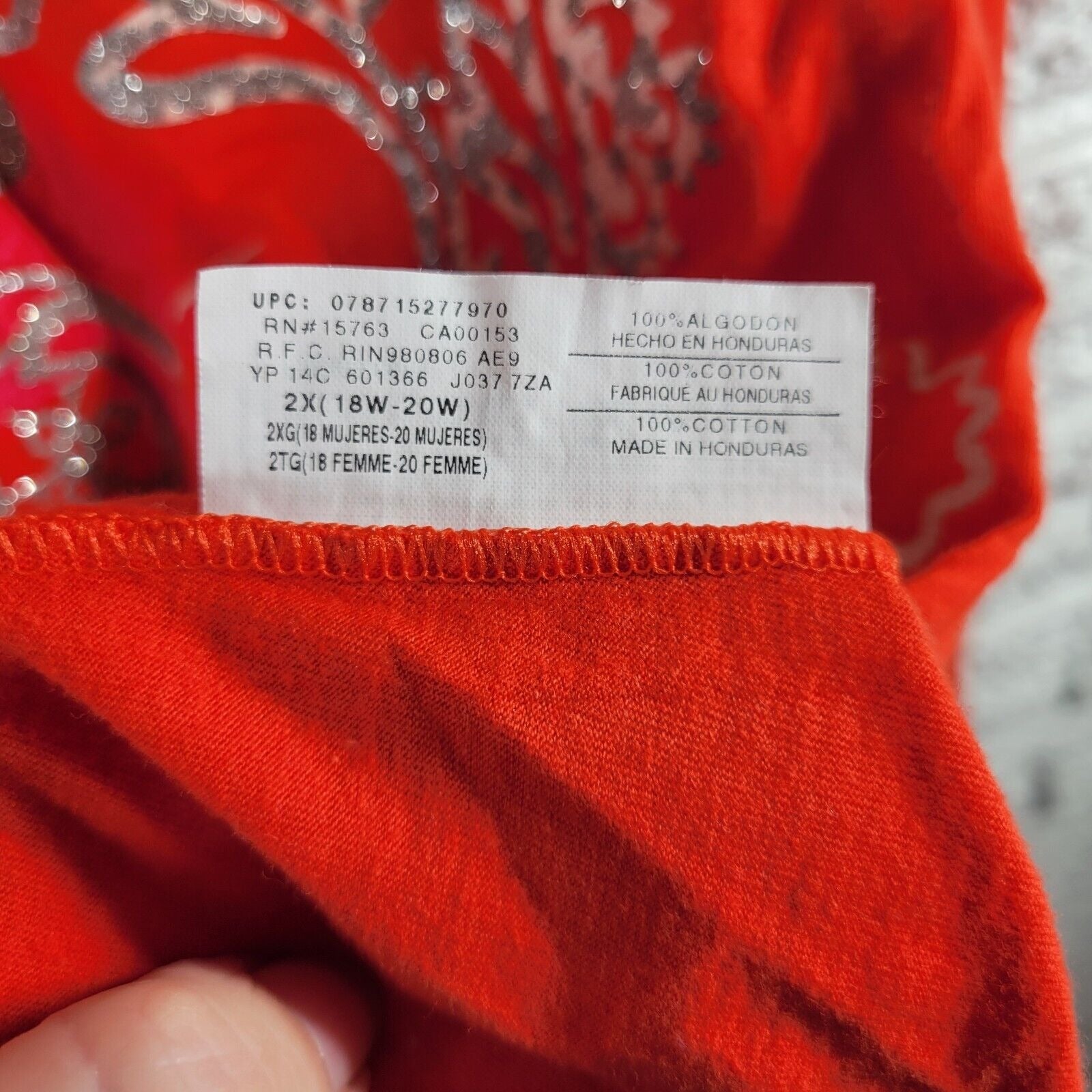 Just My Size Womens Top 2X 18W 20W Tee Long Sleeve Red Floral Paisley Glitter