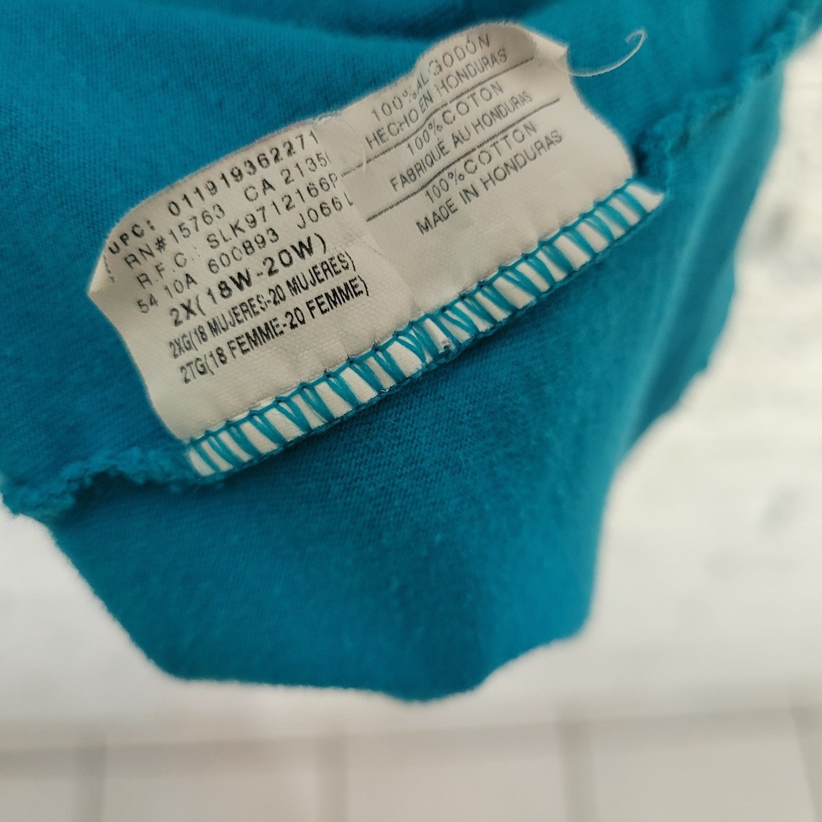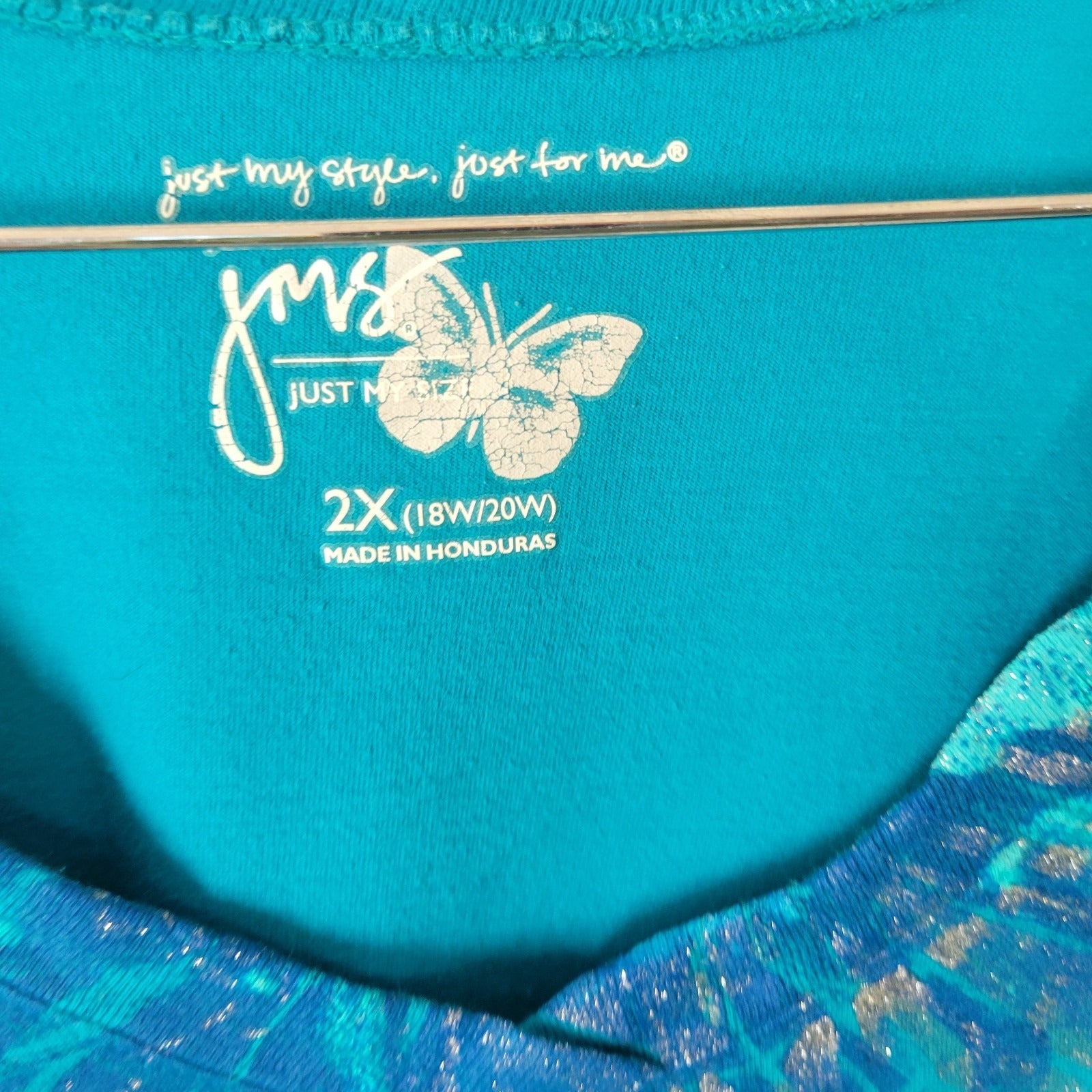 Just My Size Womens Top 2X Plus Tee Short Sleeve Blue Floral Glitter Cotton