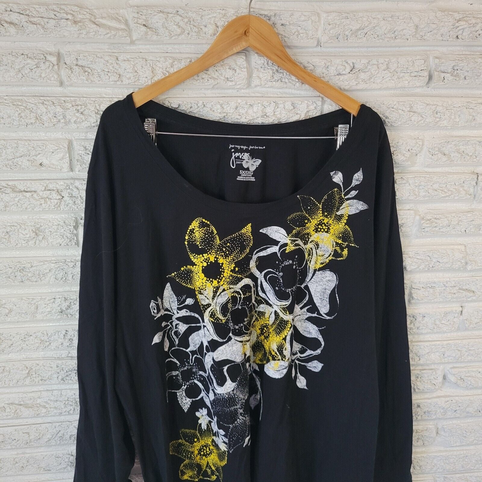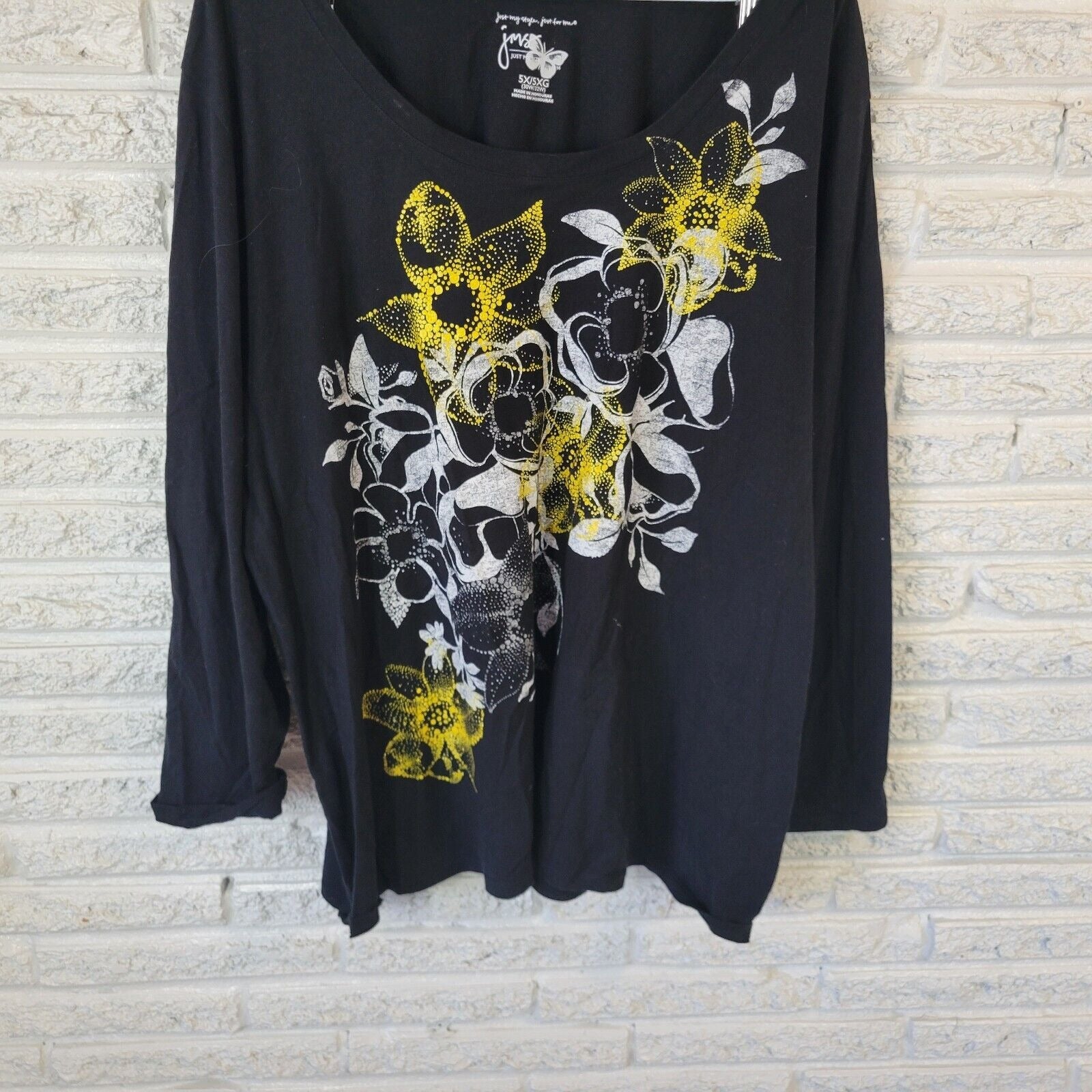 Just My Size Womens Top 5X Plus Tee Long Sleeve Black Gold Glitter Floral Cotton