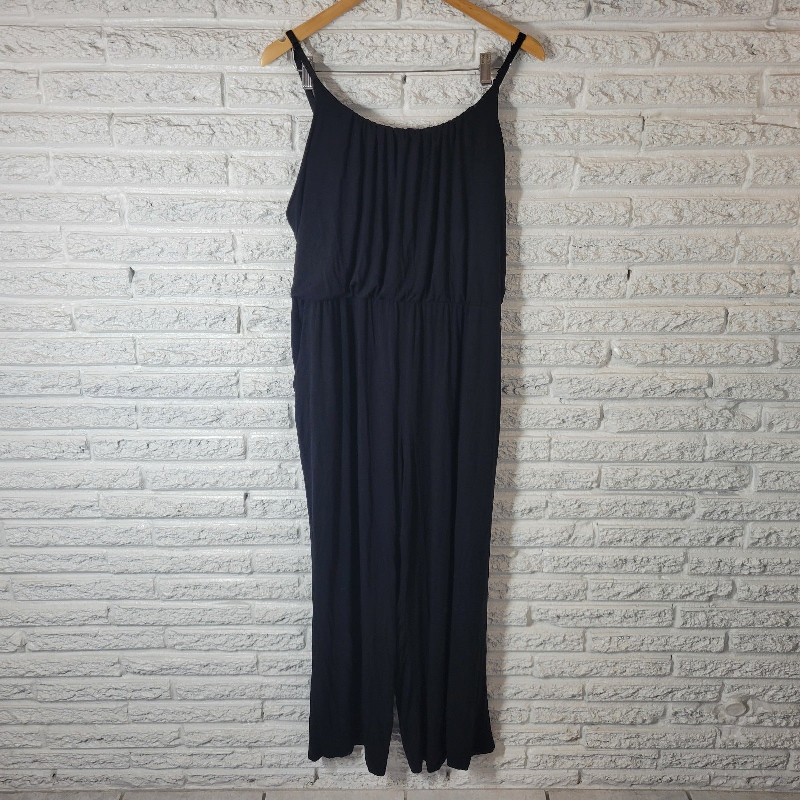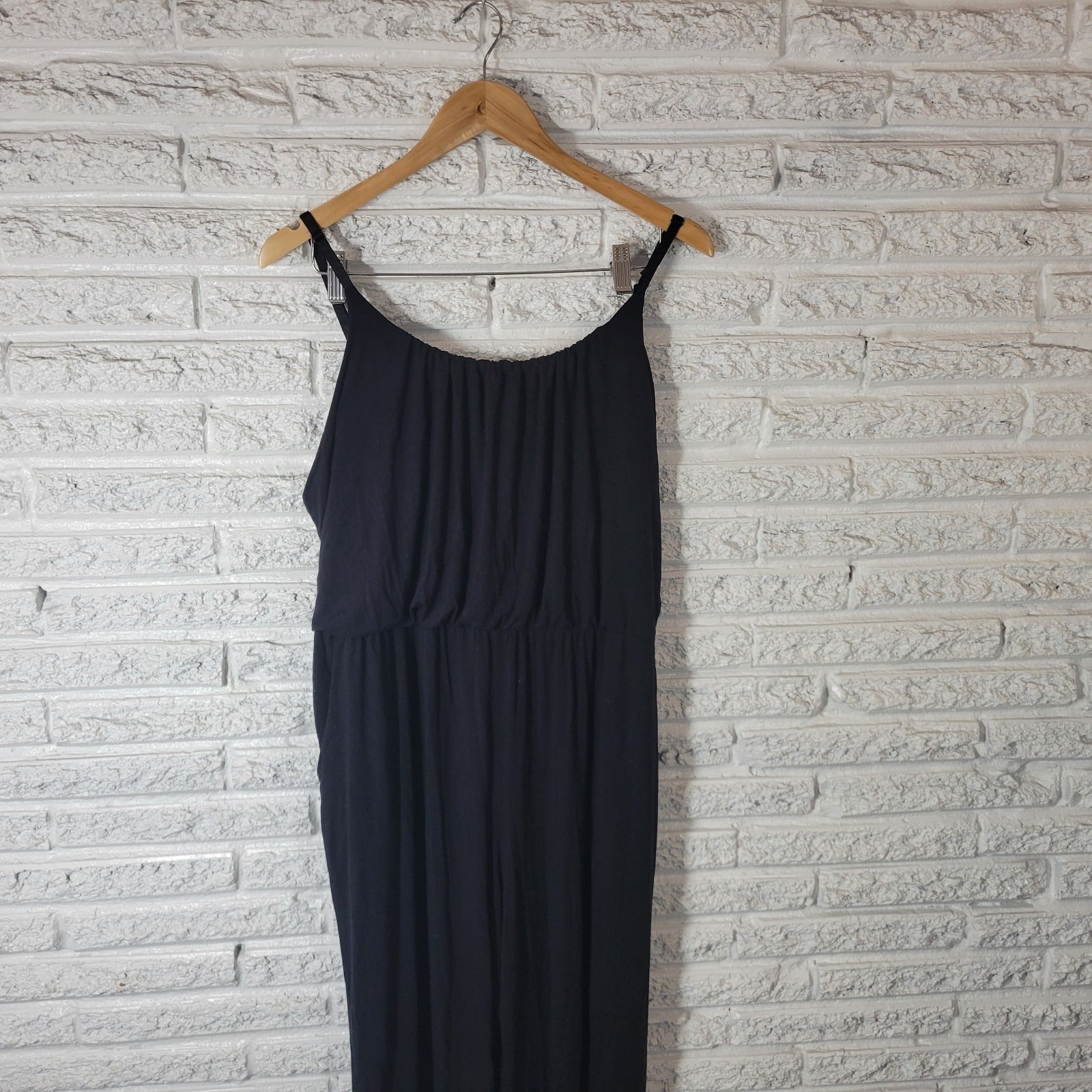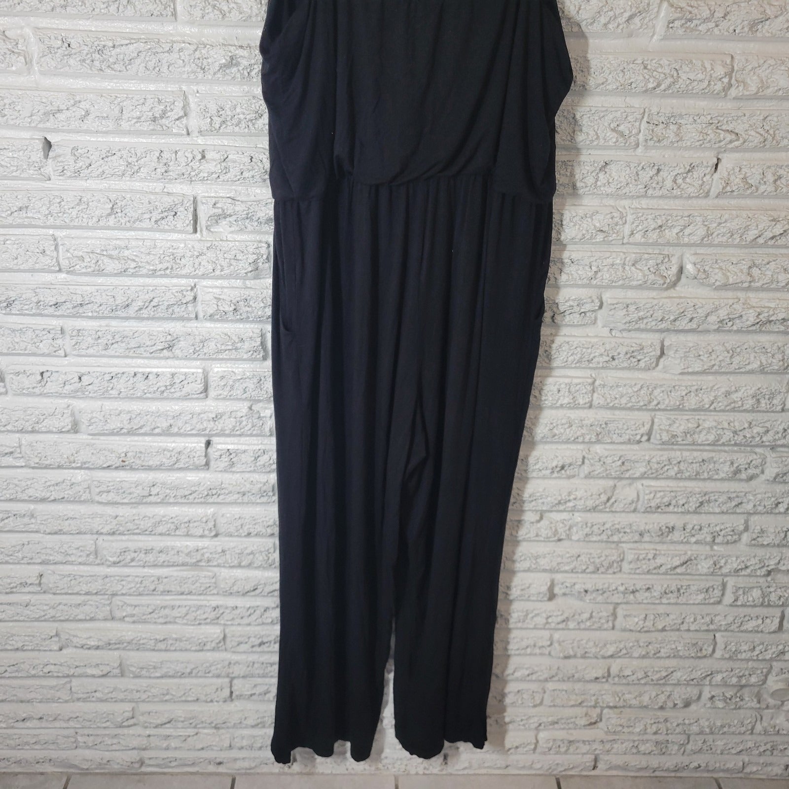 Kaileigh Womens Jumpsuit 2X Plus Sleeveless Spaghetti Black Pockets Casual Comfy