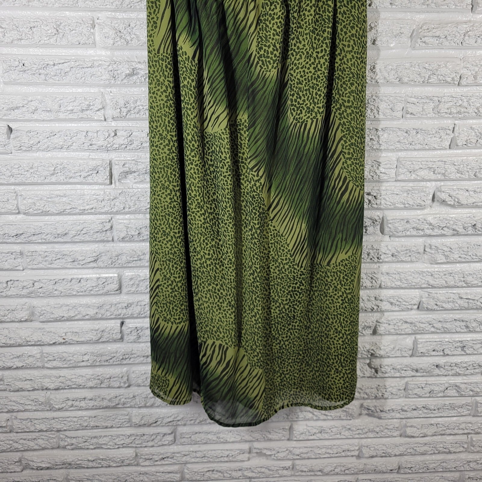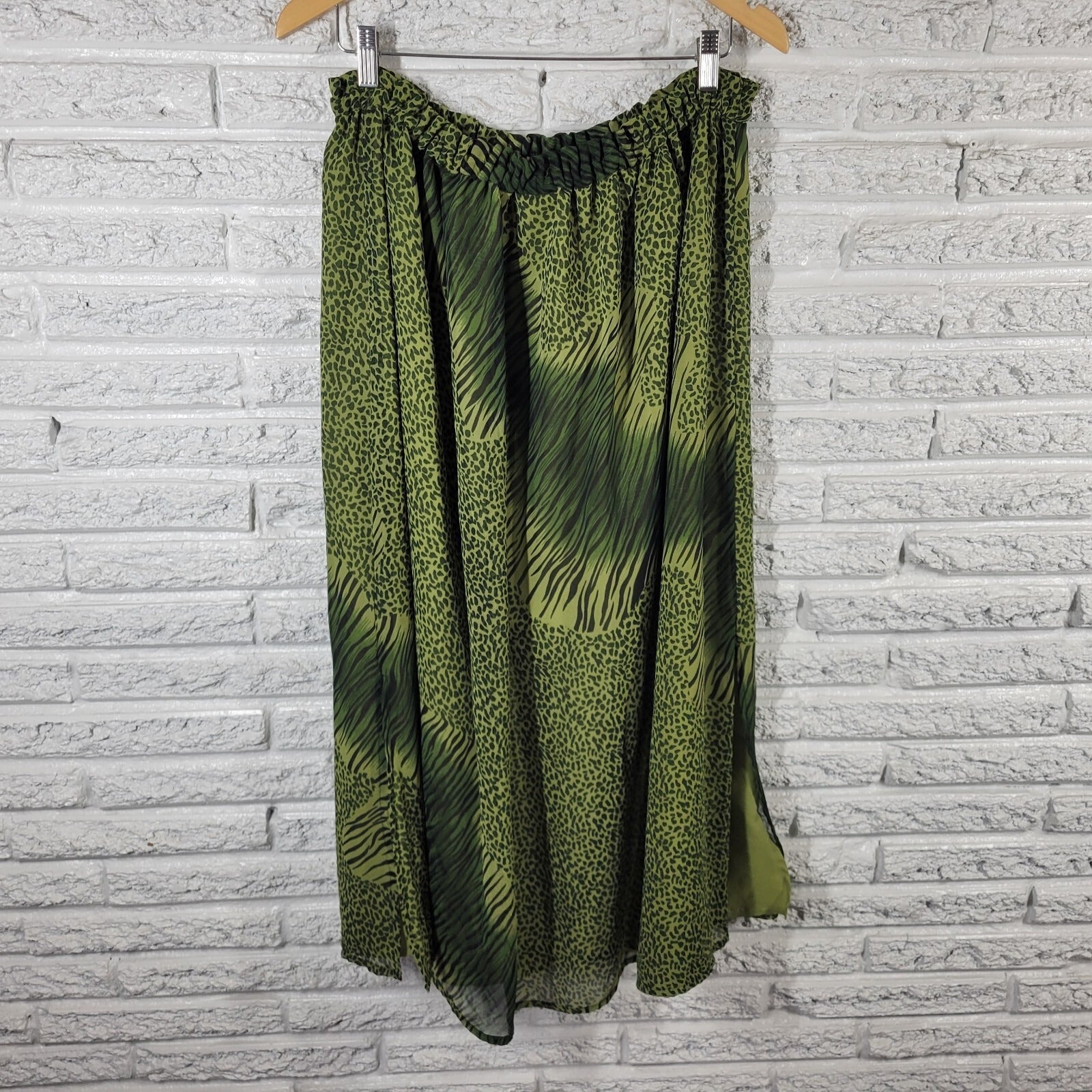 Kaktus Womens Skirt 2X Plus Pull On Green Black Animal Print Lightweight Sheer