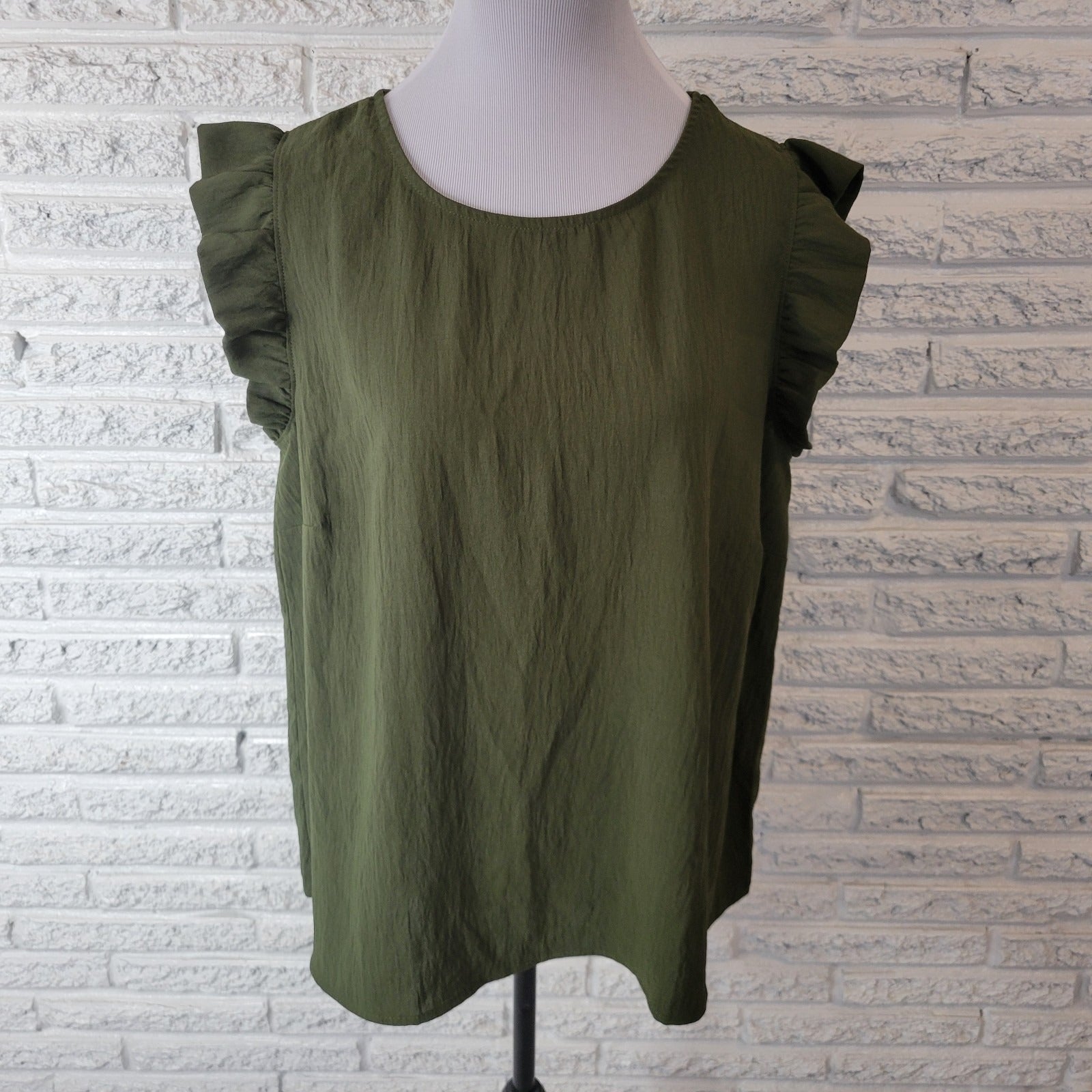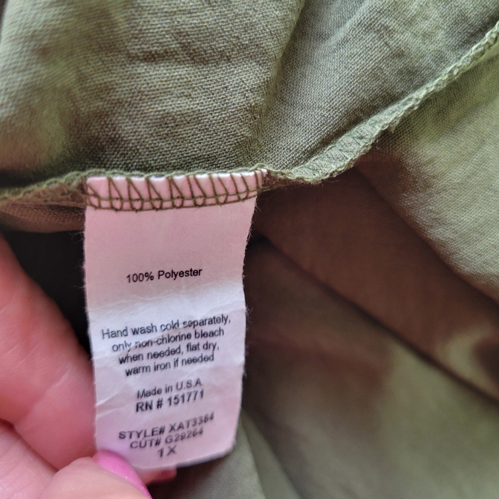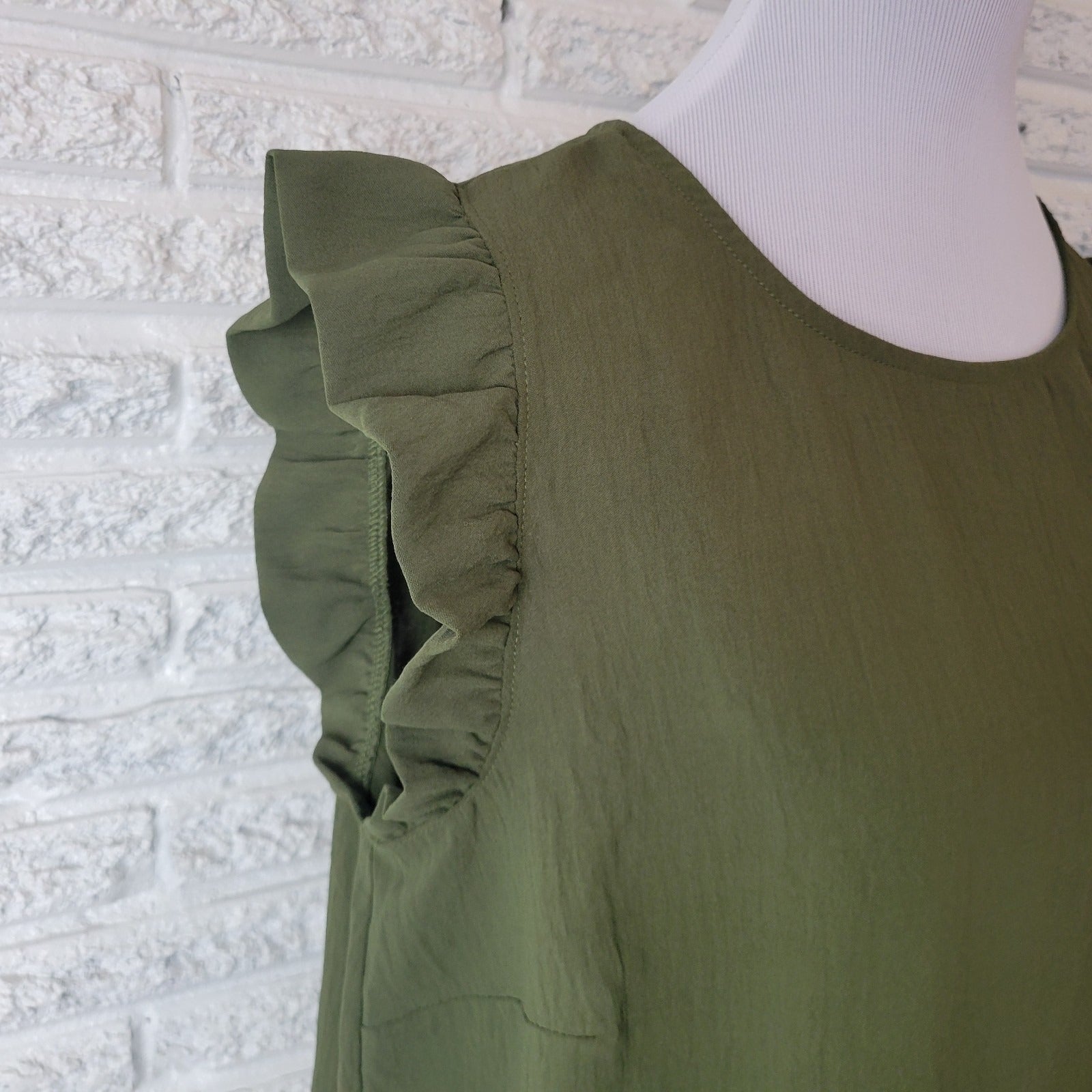 Kaleigh Women Top 1X Plus Ruffle Sleeve Green Lightweight Polyester Casual Comfy