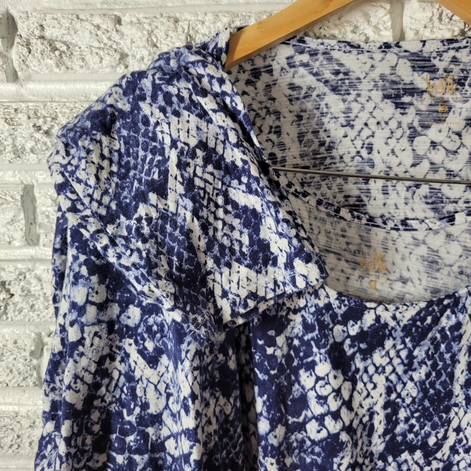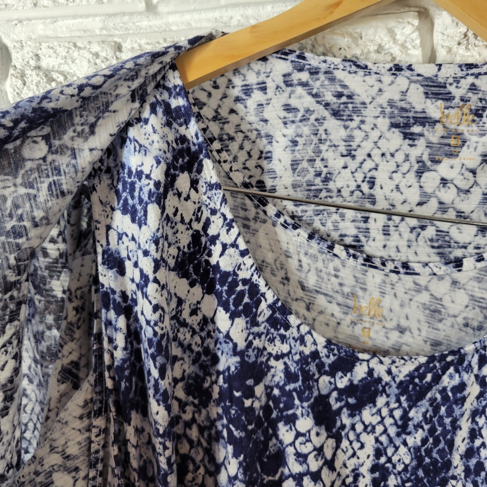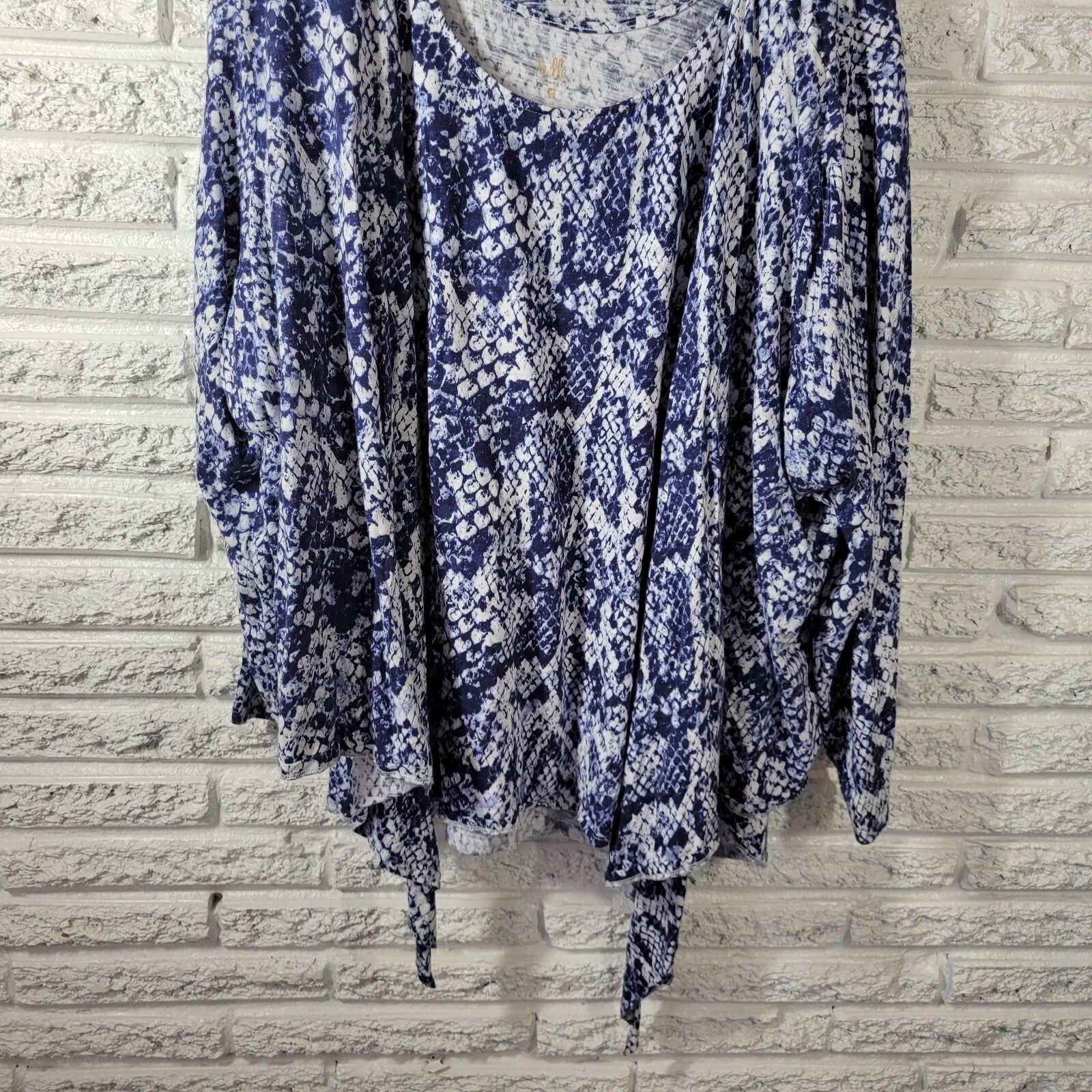 Add a touch of wild to your wardrobe with this stunning Kim Gravel Belle QVC blouse. The blue/white animal print adds a bold and playful touch to the lightweight cotton blend material, making it perfect for all seasons. The long sleeves and casual sleeve type provide comfort and versatility, while the tie closure adds a unique touch to the blouse. This blouse is perfect for both casual and travel occasions, and its machine washable garment care makes it easy to maintain. The blouse is designed for plus size women and fits regular size. Don't miss out on this stylish and comfortable blouse that will make you stand out from the crowd.