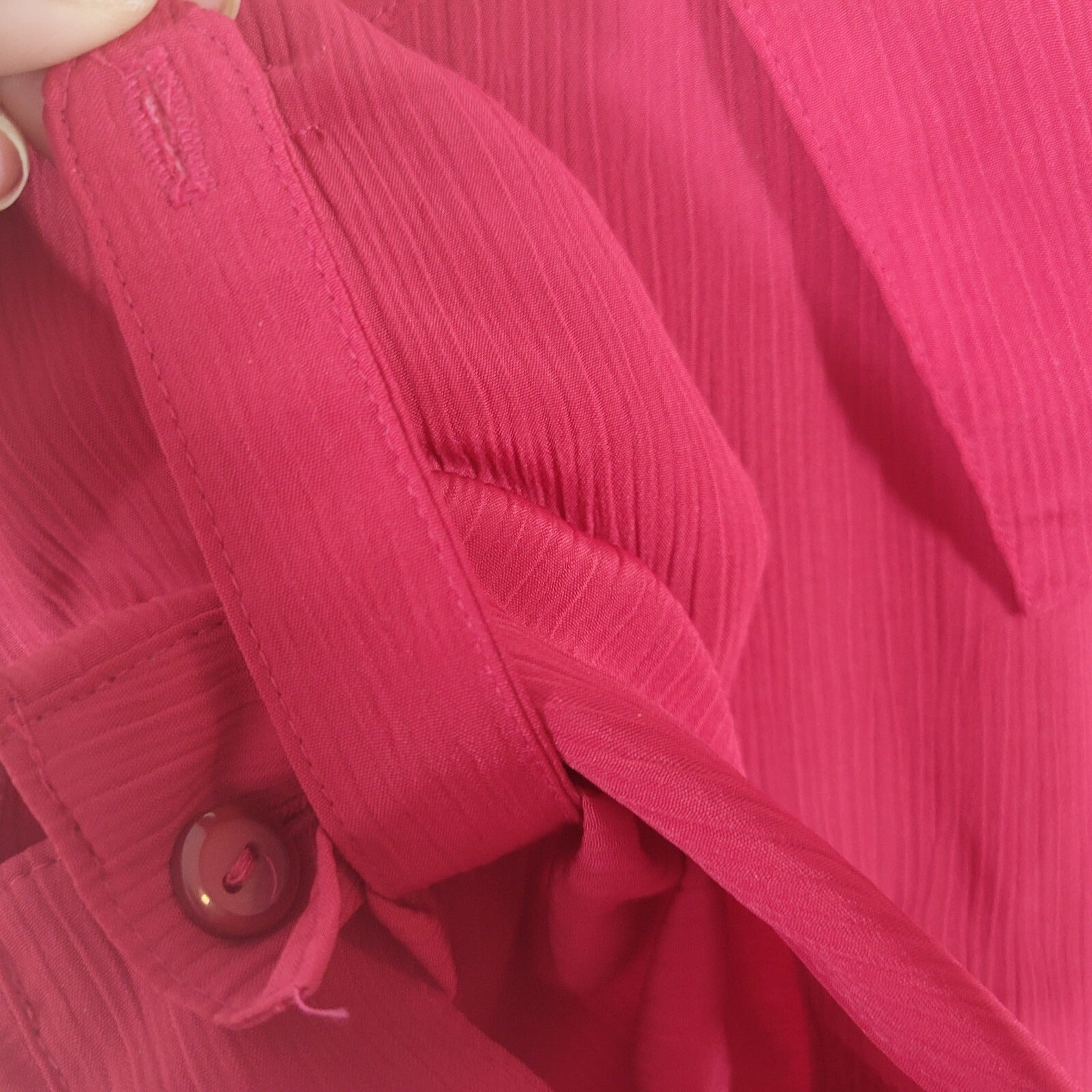 Kim Rogers Women Top 3X Plus Roll Tab Sleeve Red Pockets Lightweight Polyester