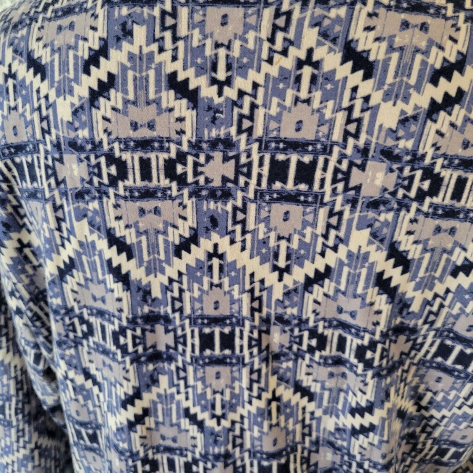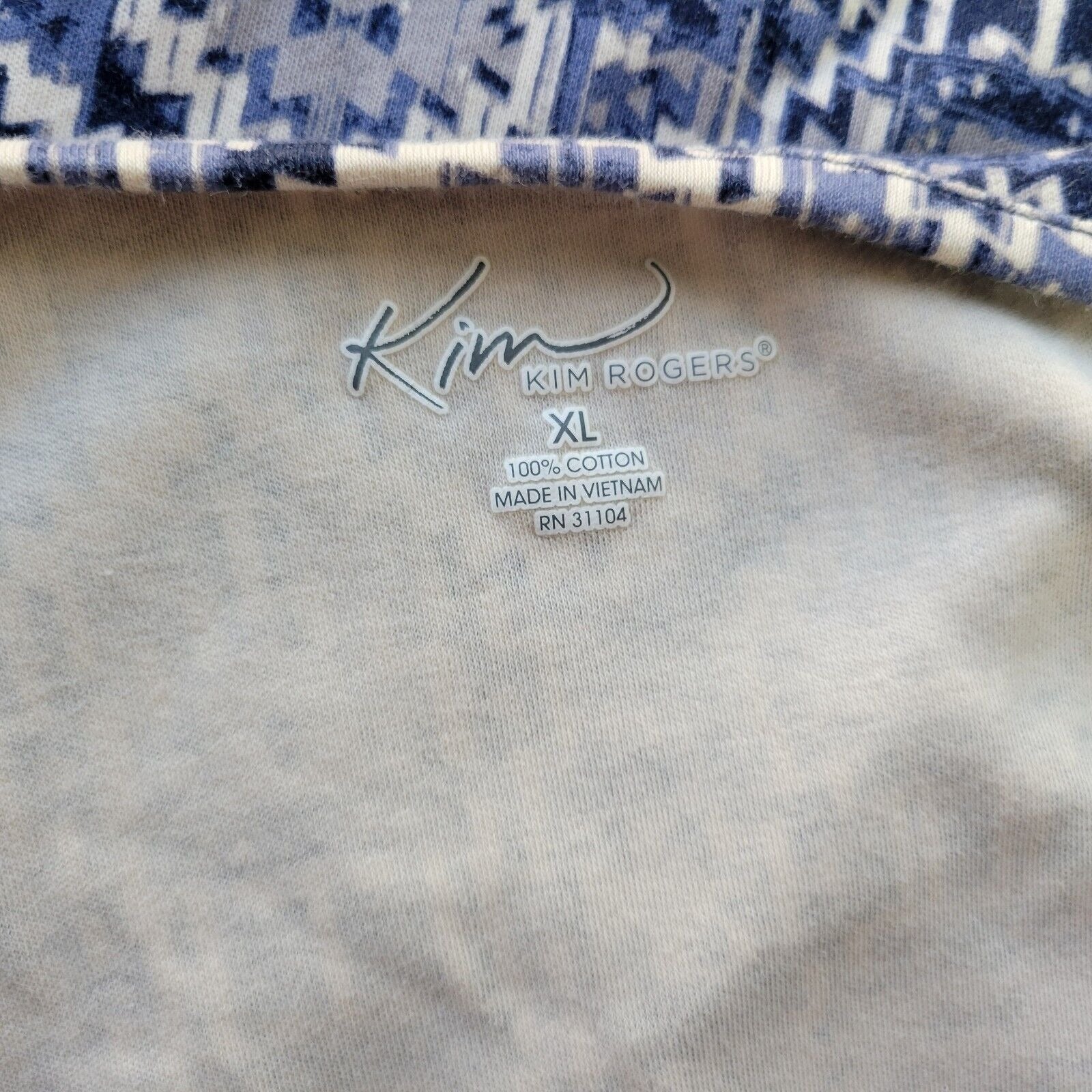 Kim Rogers Women Top Extra Large XL 3/4 Sleeve Blue Gray Geometric Cotton Casual