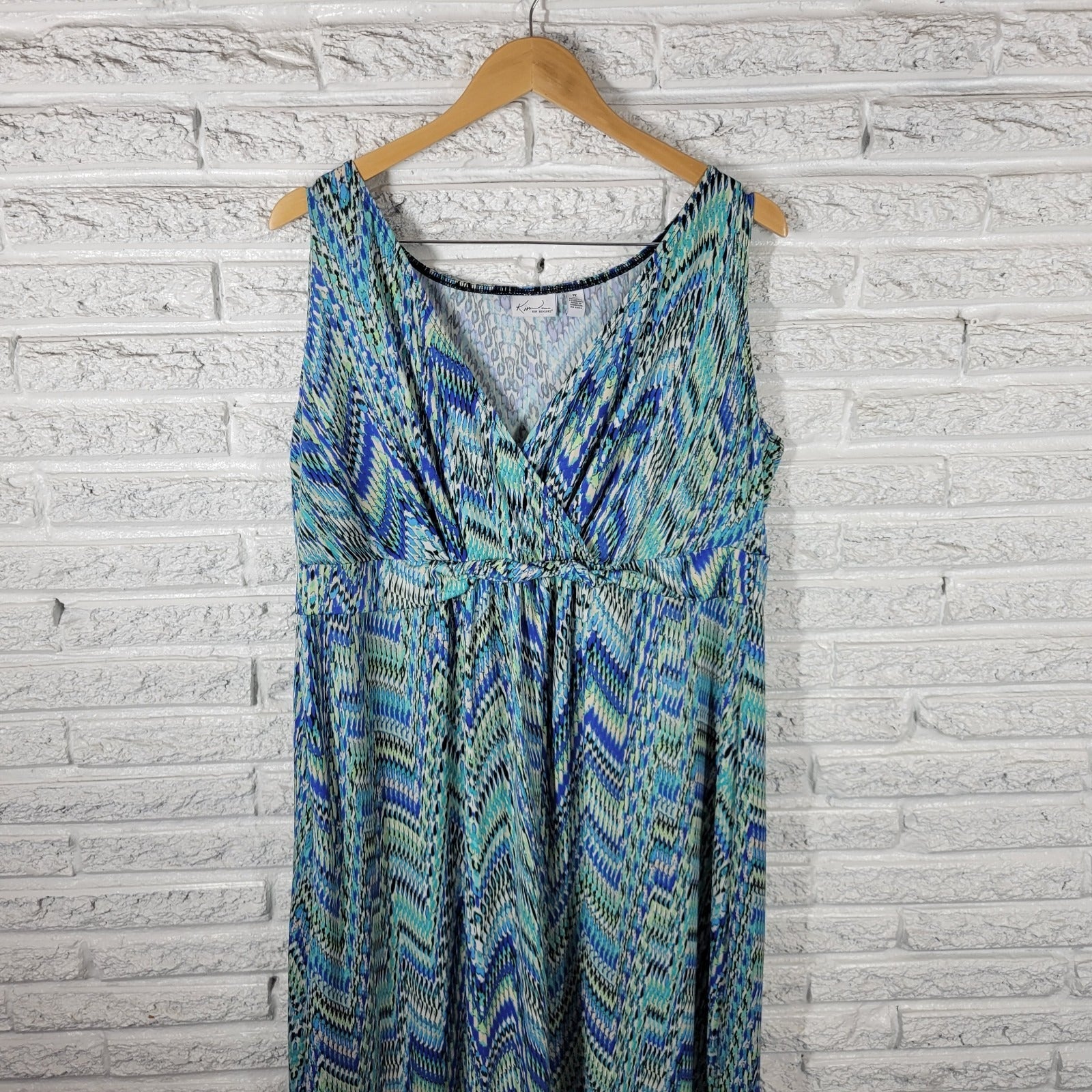Kim Rogers Womens Dress 1X Plus Sheath Sleeveless Blue Watercolor Poly Blend