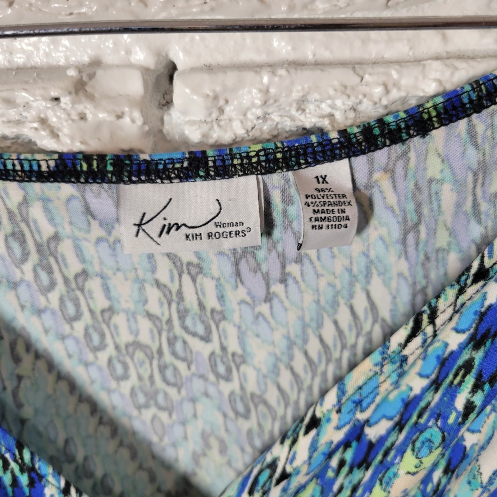 The Kim Rogers Women's Dress in size 1X Plus is a stylish sheath dress perfect for casual or travel occasions. Made from a poly blend in a beautiful blue watercolor design, this sleeveless dress features a V-neckline and pullover closure for easy wear. The knee-length dress is machine washable and offers stretch for added comfort. Suitable for all seasons, this dress is a versatile addition to any woman's wardrobe.
