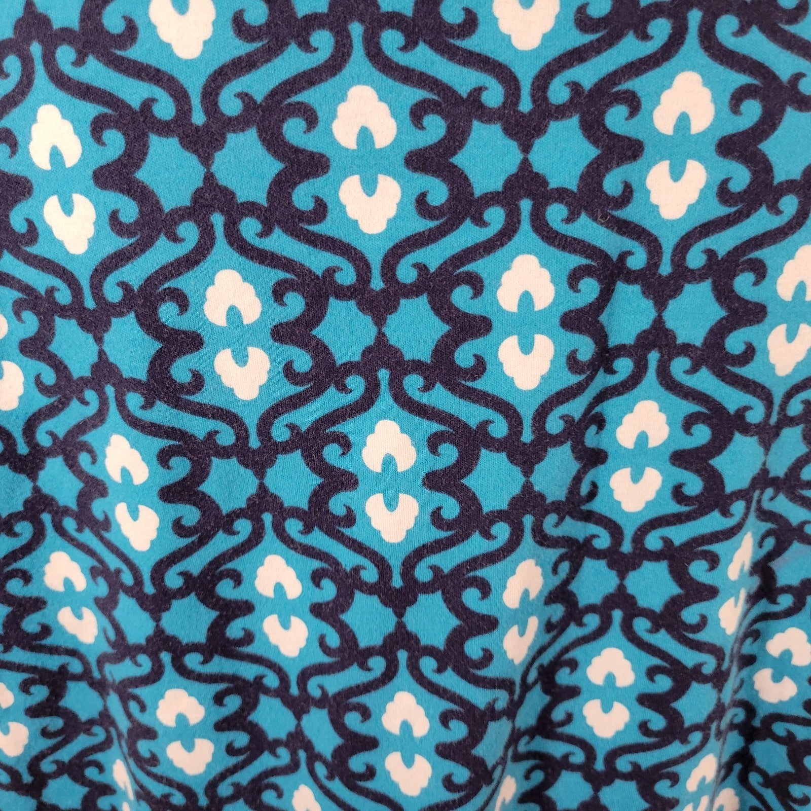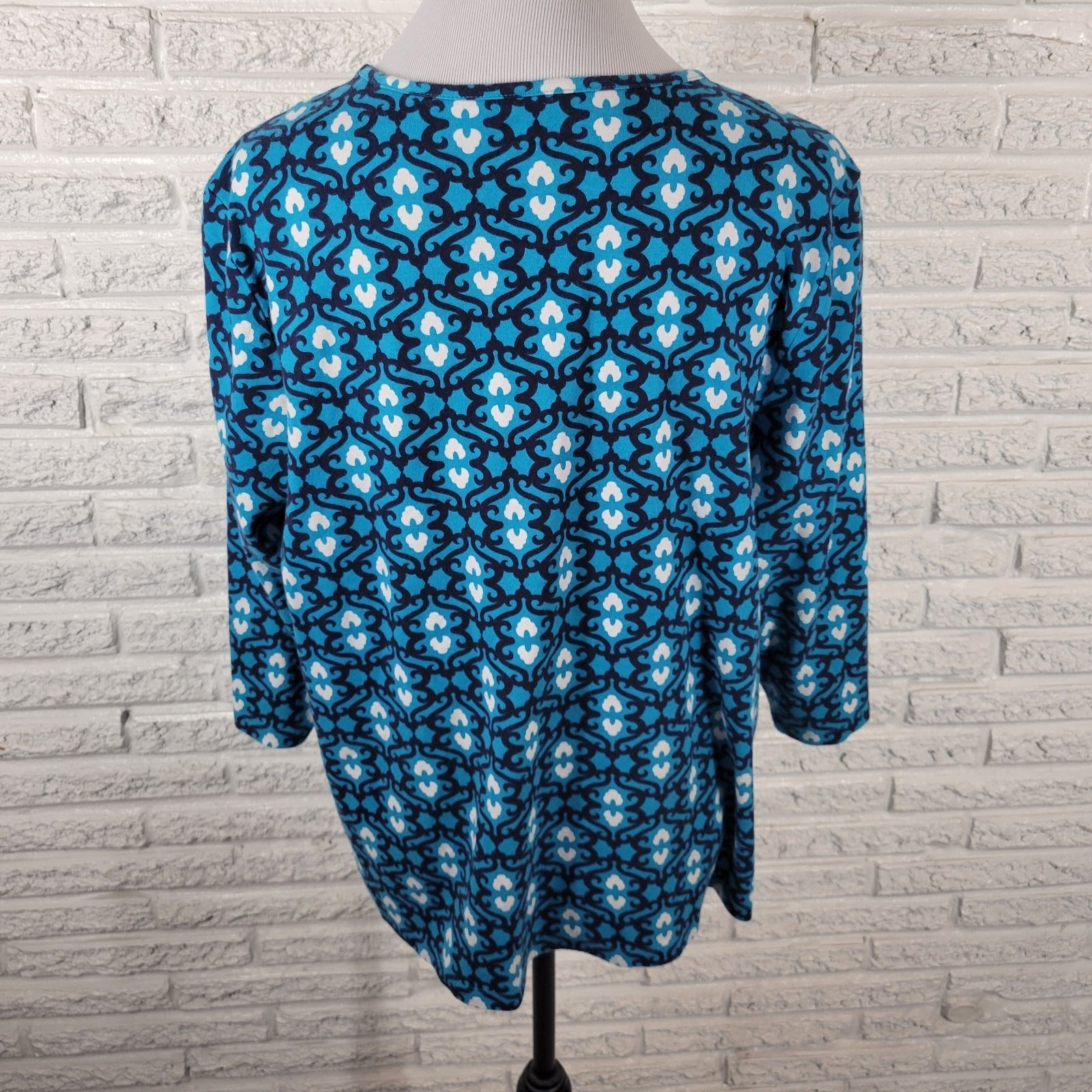 Kim Rogers Womens Top 2X Plus 3/4 Sleeve Blue Geometric Knit Cotton Casual Comfy
