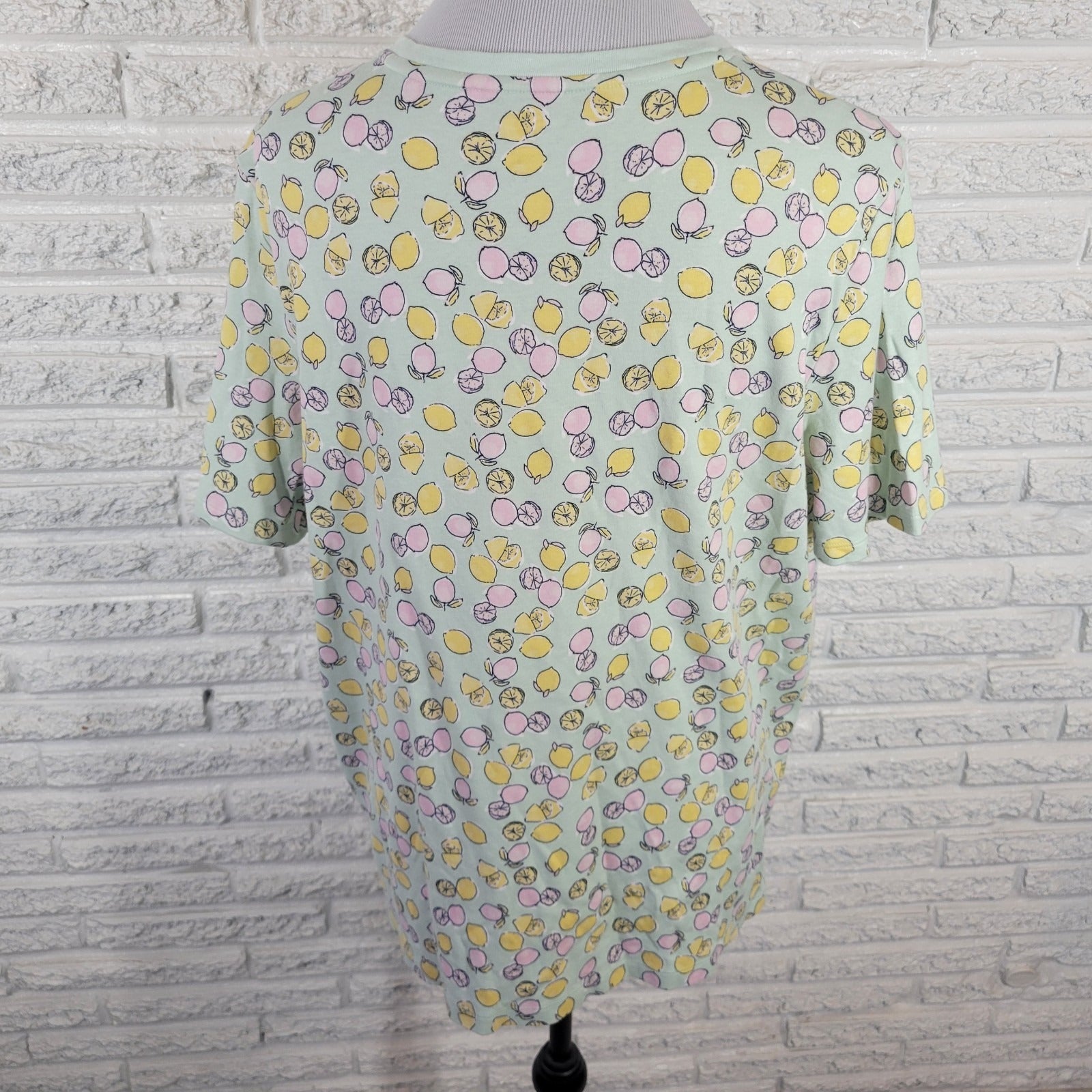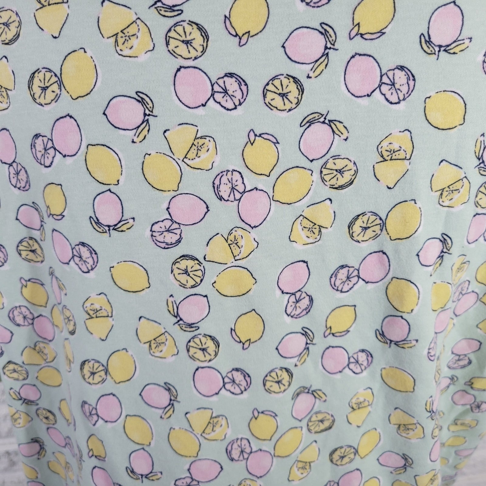 Kim Rogers Womens Top Extra Large Tee Short Sleeve Green Lemons All Over Cotton